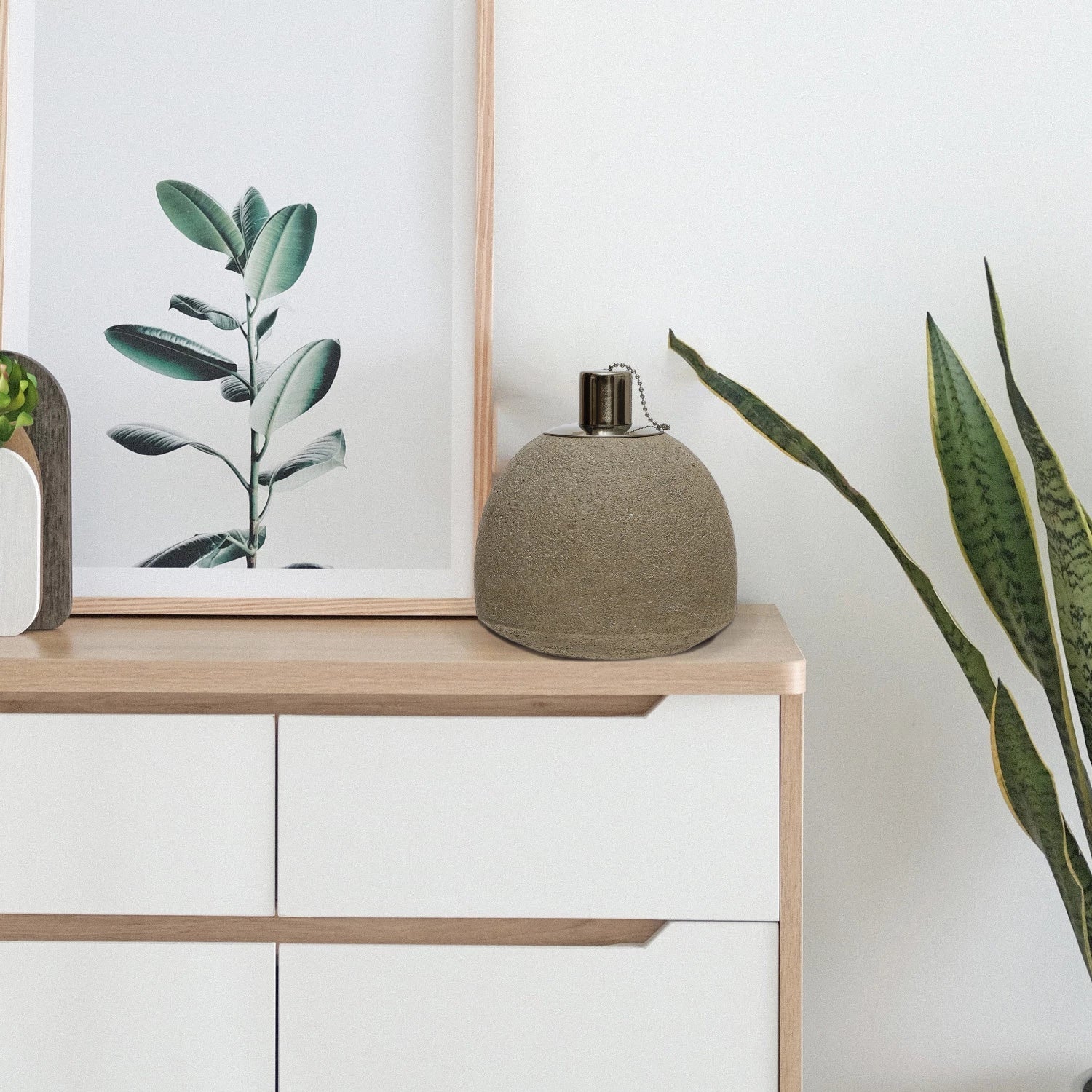Introduce some natural beauty into your space with our Sandstone Oil Lamp. Its organic cement construction, complemented by a unique metal accent, adds a rustic yet modern touch. Perfect for boho, eclectic, or farmhouse interiors. Enjoy the warm glow and the ambiance it brings to your bedroom or living space.