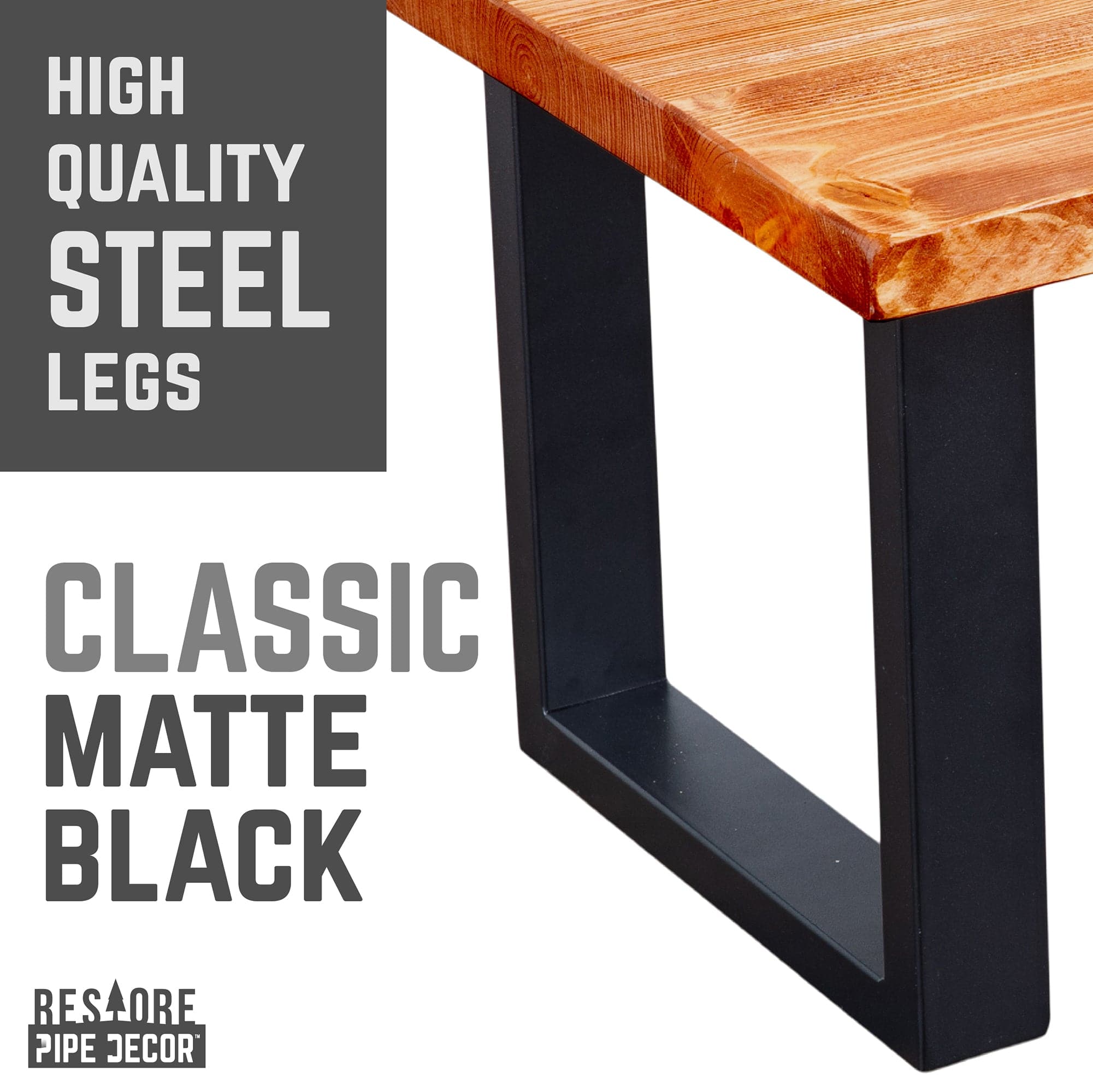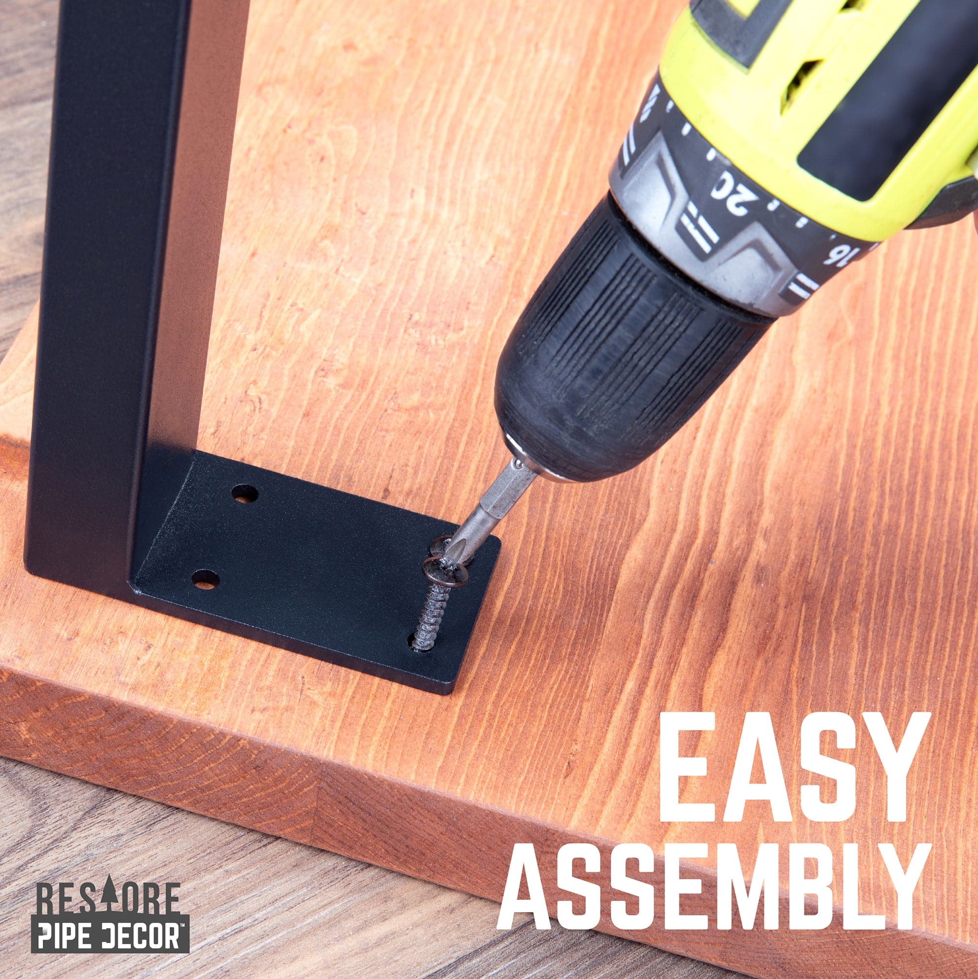 - Kit comes with two black square metal legs and wood tabletop measuring 36 inches L x 16 inches W x 1 ¼ inches H