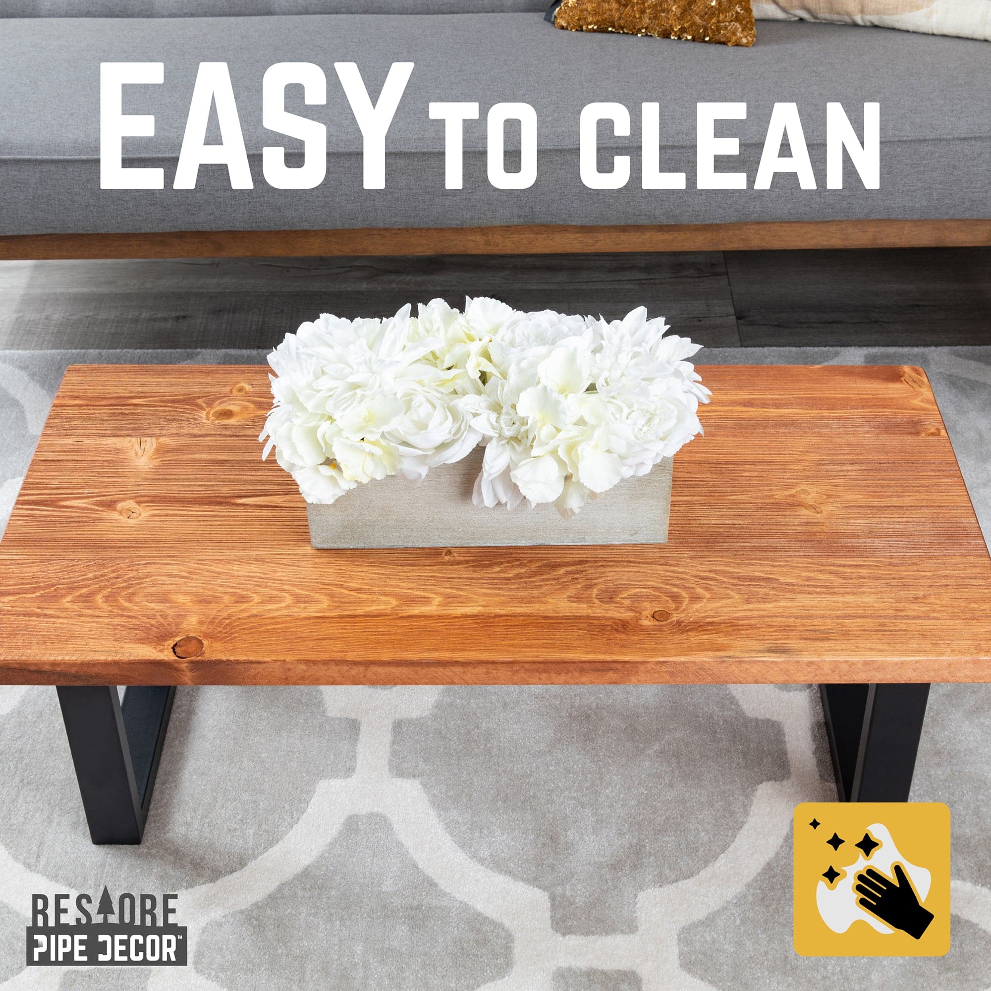 Our wood coffee table with square metal legs has a modern vibe that adds style to any room. This coffee table is the ideal centerpiece for the experiences that make your house a home. Whether you’re entertaining guests or having your book club over for tea, this piece is meant to be enjoyed with a healthy dose of love and laughter. Make clean up a snap with durable materials and finishes. Simply wipe the tabletop and legs with a dry or damp cloth to whisk away dust and spills. Furniture can be both sophisticated and sustainable. We have taken extra care in assembling this set and want you to know that you are getting a high-quality product made with real industrial steel and genuine North American lumber. All of our tabletops are kiln-dried. Kiln-dried wood helps prevent warping, splitting, cracking, and mildew. The wood is then hand-finished using our exclusive multi-step process to create an exceptional depth of color in the resulting stain.