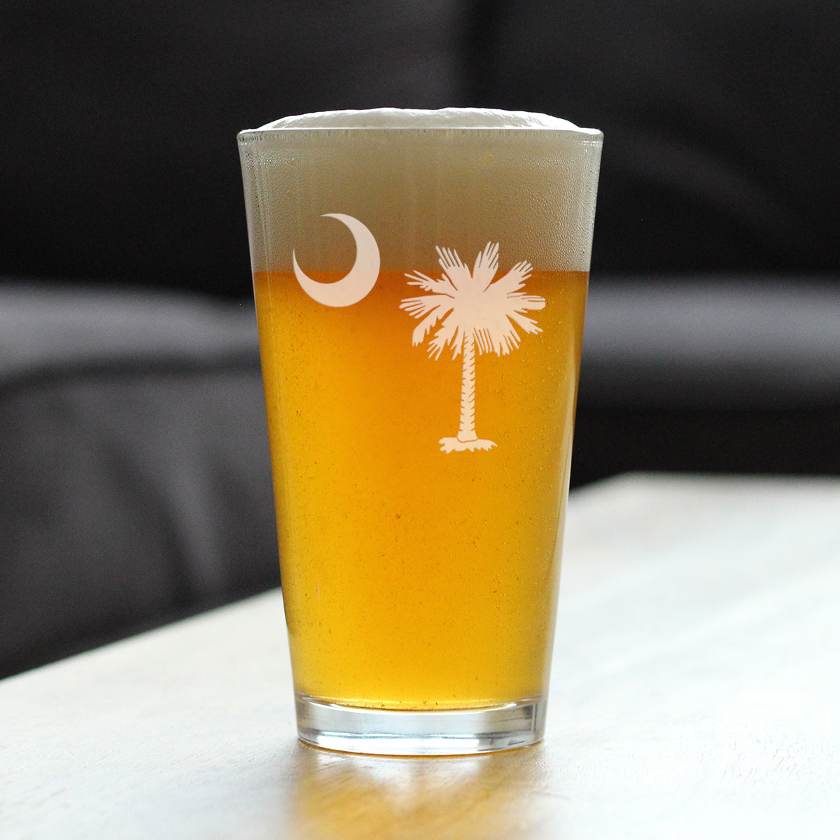 South Carolina Flag Pint Glass for Beer - State Themed Drinking Decor and Gifts for South Carolinian Women & Men - 16 Oz Glasses