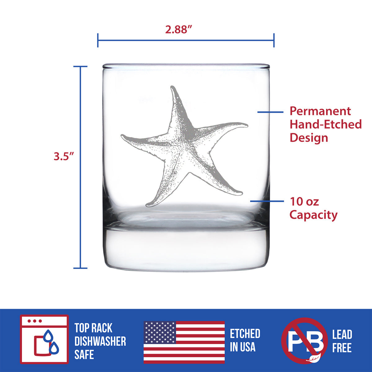 Starfish Rocks Glass - Beach Themed Decor and Decorative Ocean Glassware Gifts for Women and Men - 10.25 Oz Glasses