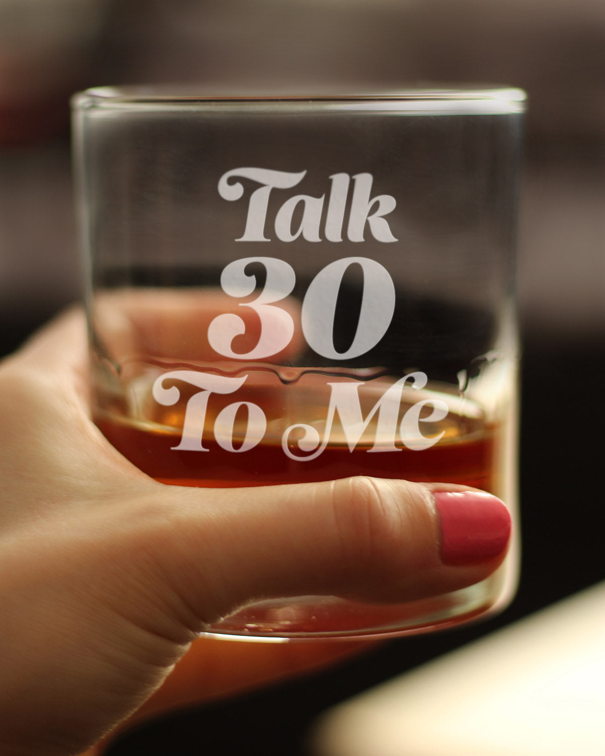 Talk 30 To Me - Funny 30th Birthday Whiskey Rocks Glass Gifts for Men & Women Turning 30 - Fun Whisky Drinking Tumbler