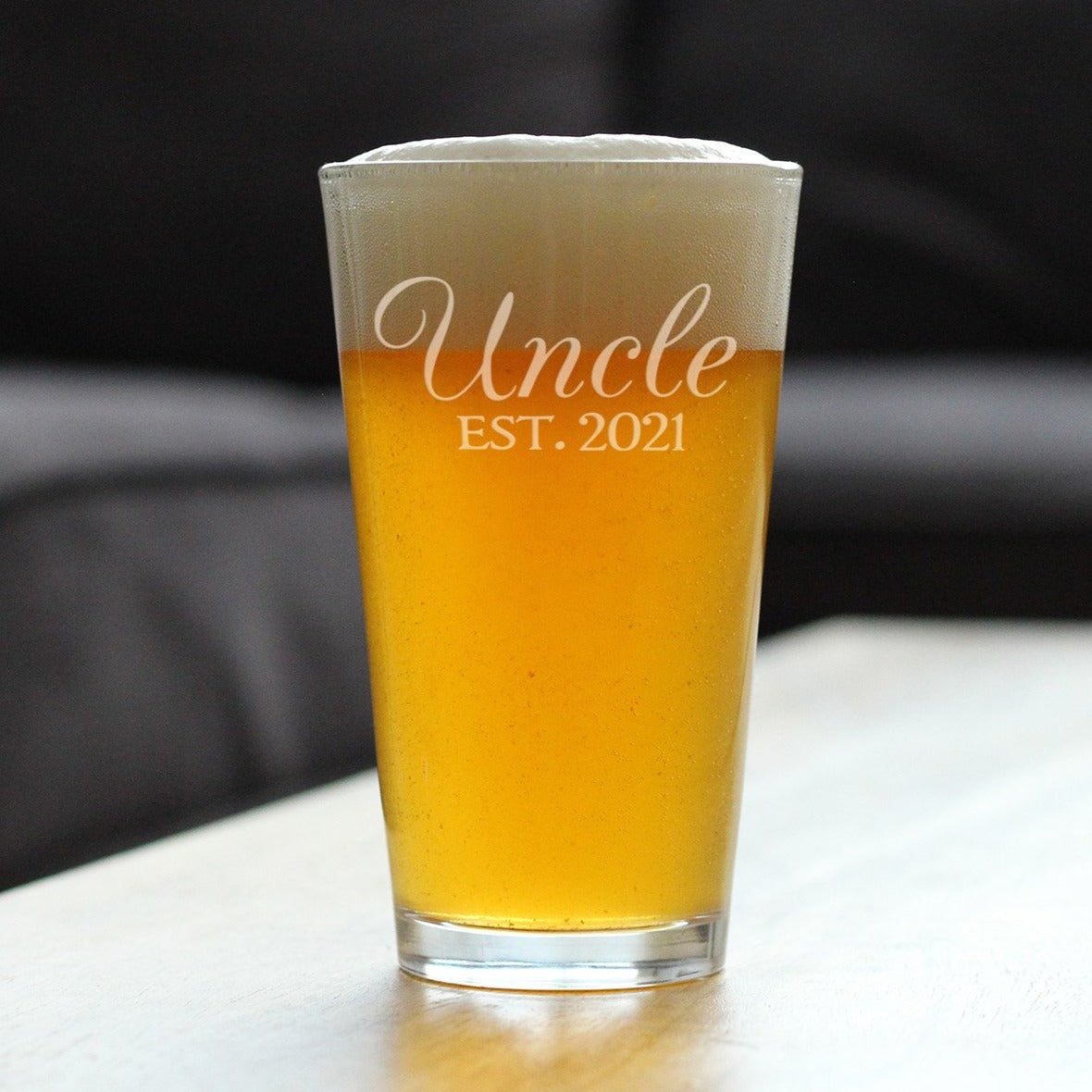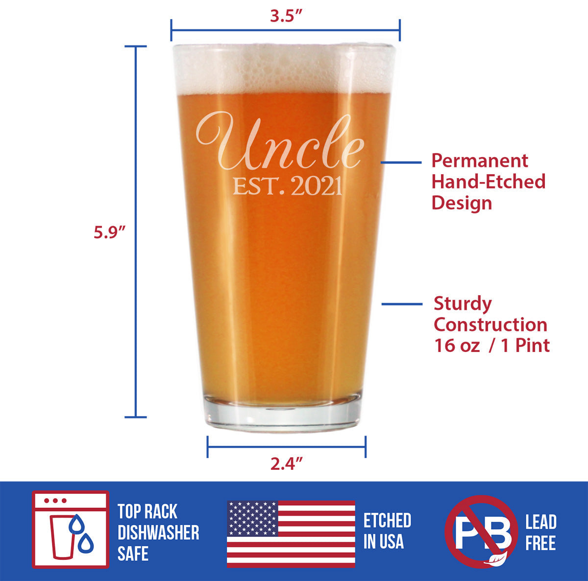 Uncle Est 2021 - Pint Glass Gift for First Time Uncles - Decorative 16 Oz Glasses
