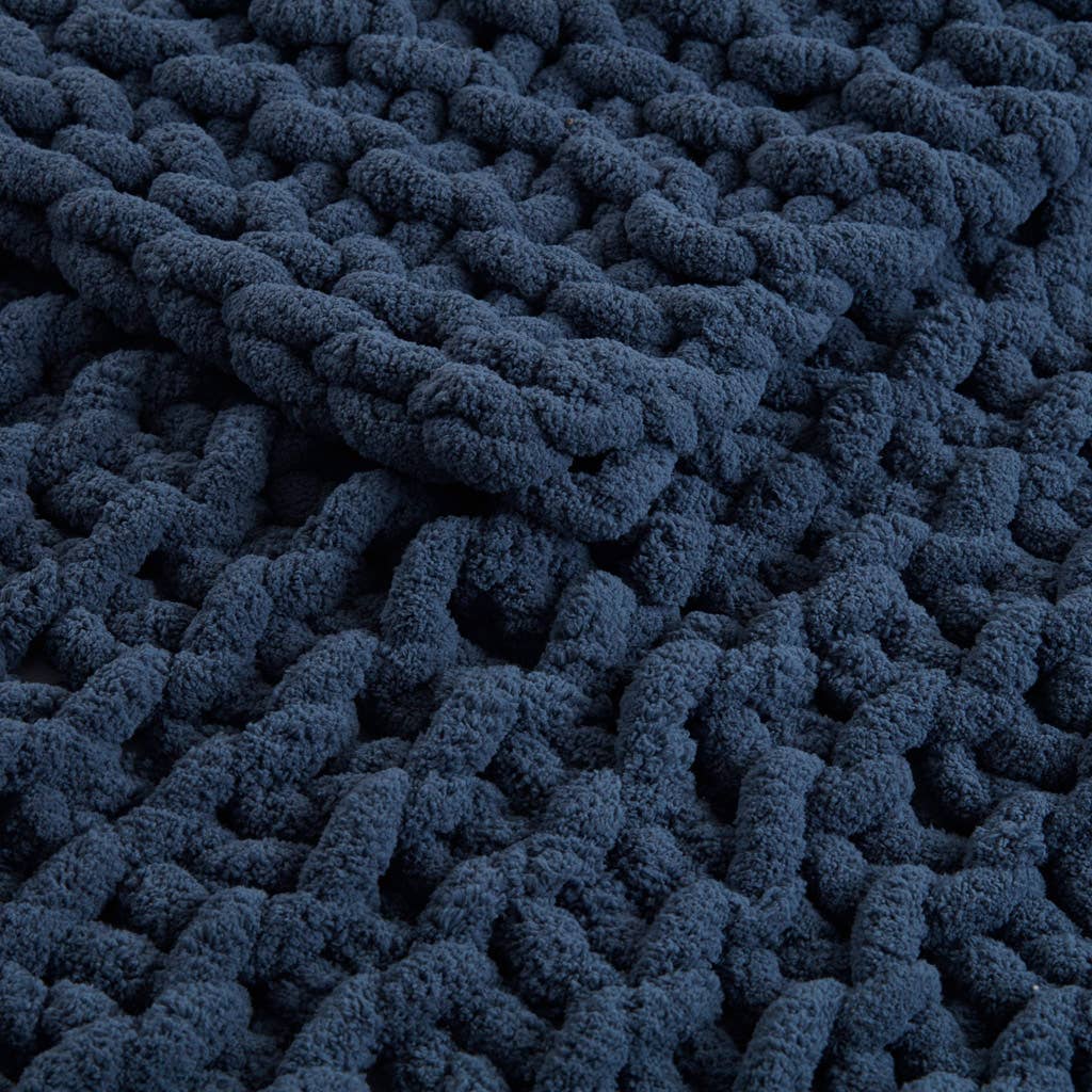 Chenille Chunky Knit Throw Navy Blue