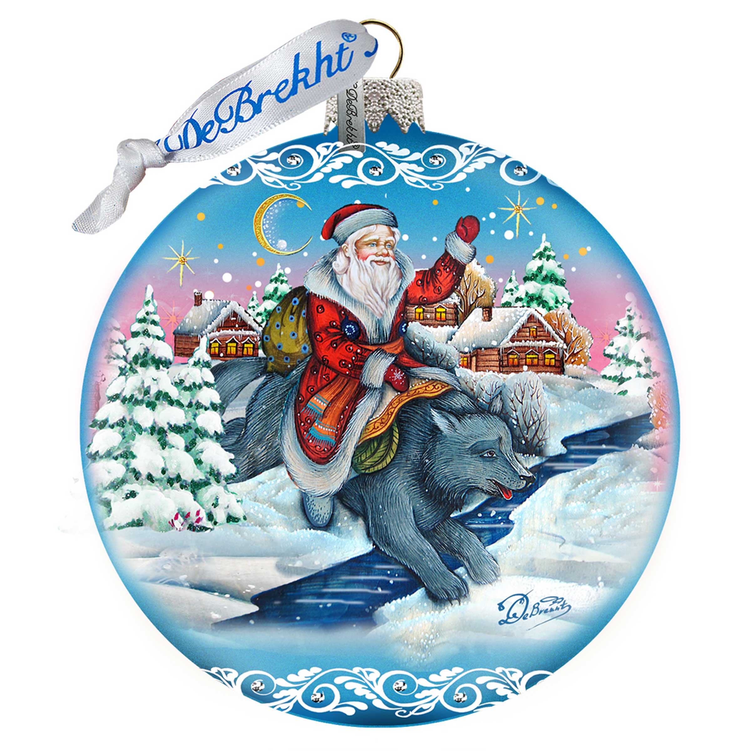 Celebrate the holidays with G. Debrekht. Discover holiday Decor that brings in the festive spirit. Adorn your Christmas tree with handcrafted Glass Christmas Tree Ornaments handmade in the USA. Santa with Wolf Ornament is a part of Limited Edition glass ornaments. Follow the link to explore our collection.