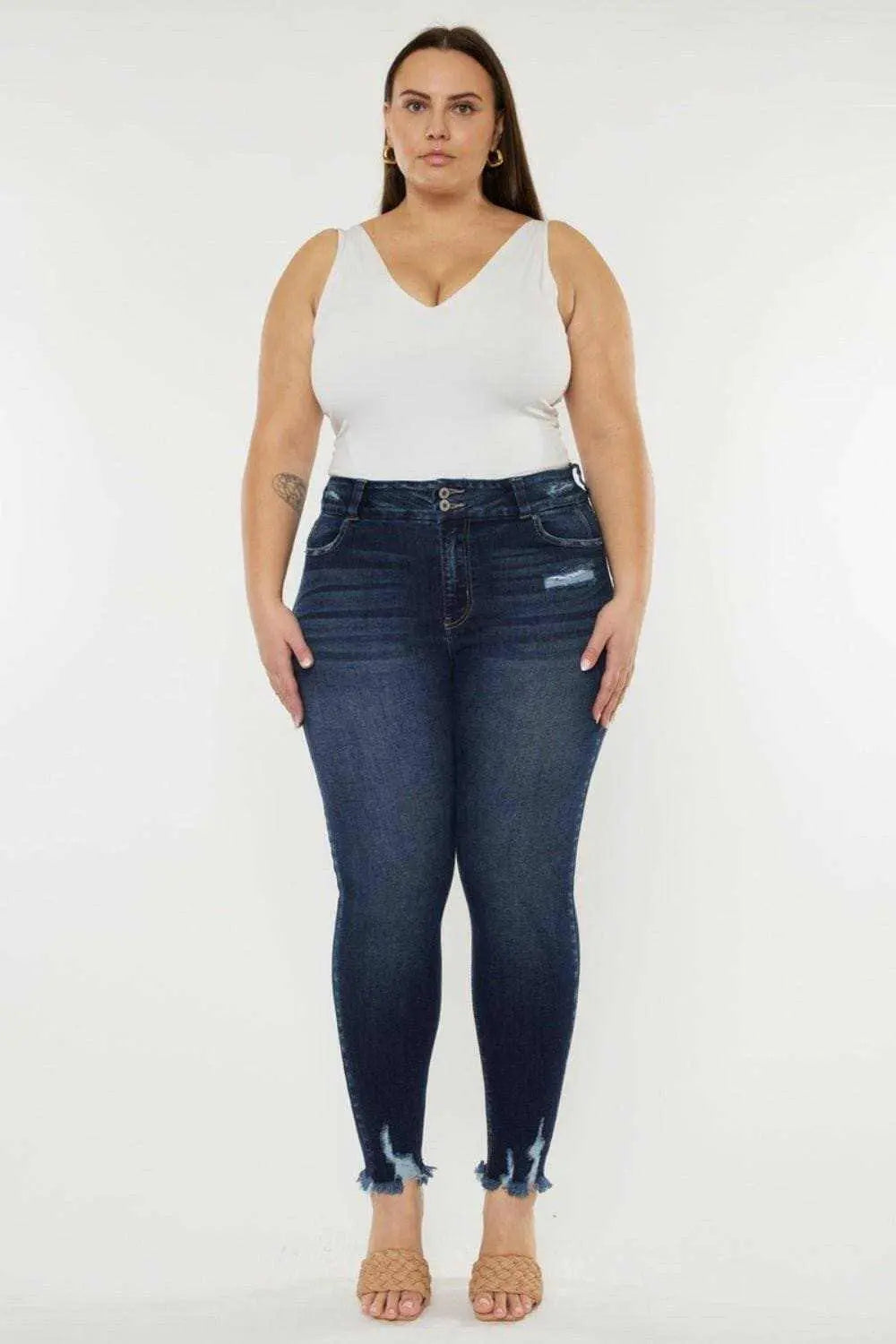Discover Vintage Charm with a Modern Twist Elevate your wardrobe with the Vintage Charm Cat's Whiskers Raw Hem High Waist Jeans by Kancan. These jeans effortlessly blend old-school charm with contemporary style, making them a must-have addition to any fashion-forward closet. Key Features Style: Basic with a twist, perfect for versatile looks Stretch: Highly stretchy for all-day comfort Material: Crafted from 95% cotton, 3.5% polyester, and 1.5% spandex for a premium feel Care: Easy maintenance - machine wash cold, tumble dry low Unique DesignEmbrace the edgy raw hem detailing that adds a unique touch to the classic high waist silhouette. Easily dress them up or down for any occasion. Redefine Your Fashion StatementExperience comfort without compromising style when you choose the Vintage Charm Cat's Whiskers Raw Hem High Waist Jeans. Step into a pair and redefine your fashion statement today!