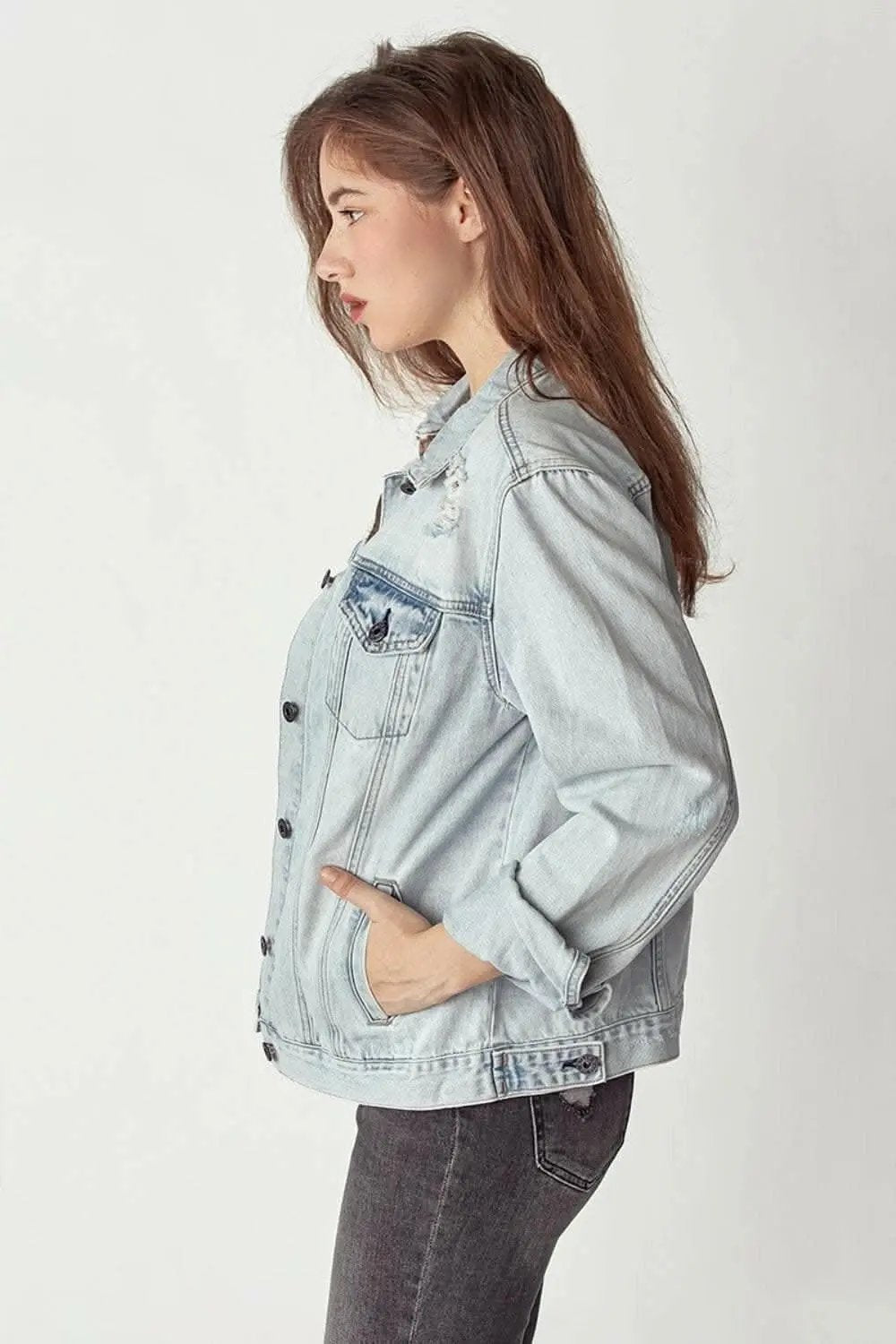 Trendsi Jeans & Denim RISEN Distressed Button Up Jacket ‐ Light / S