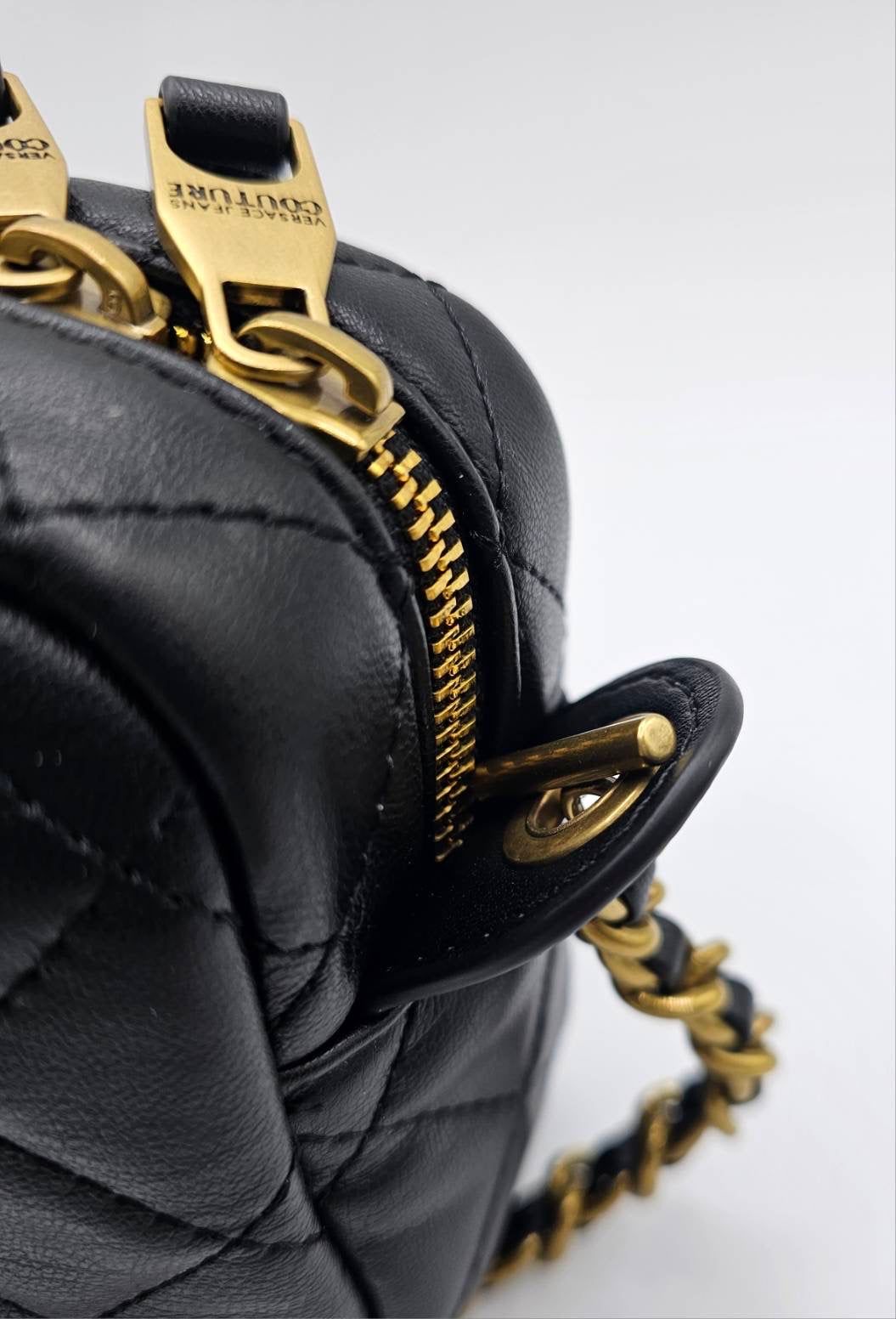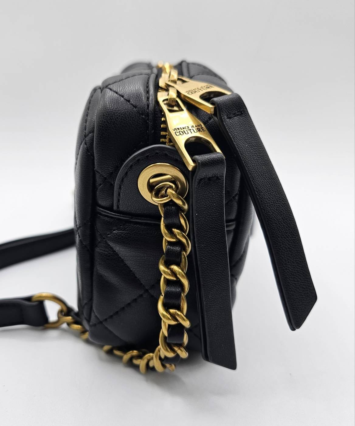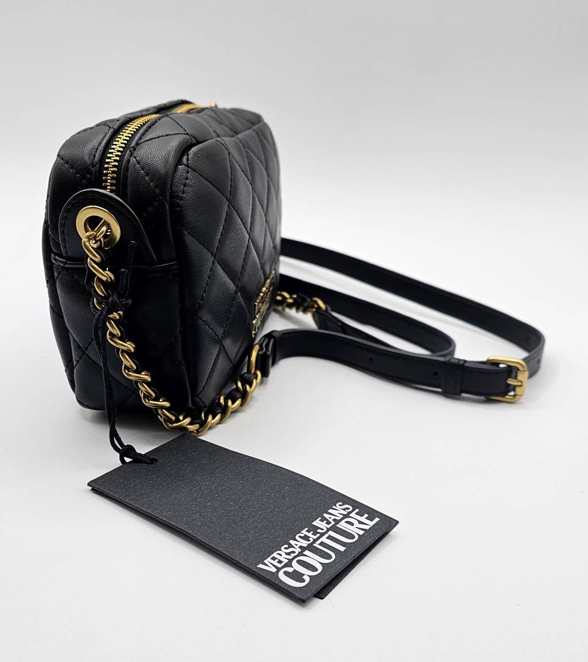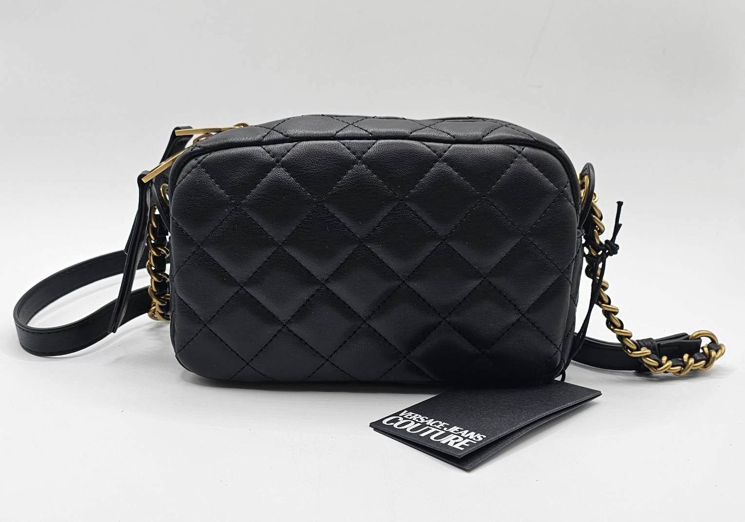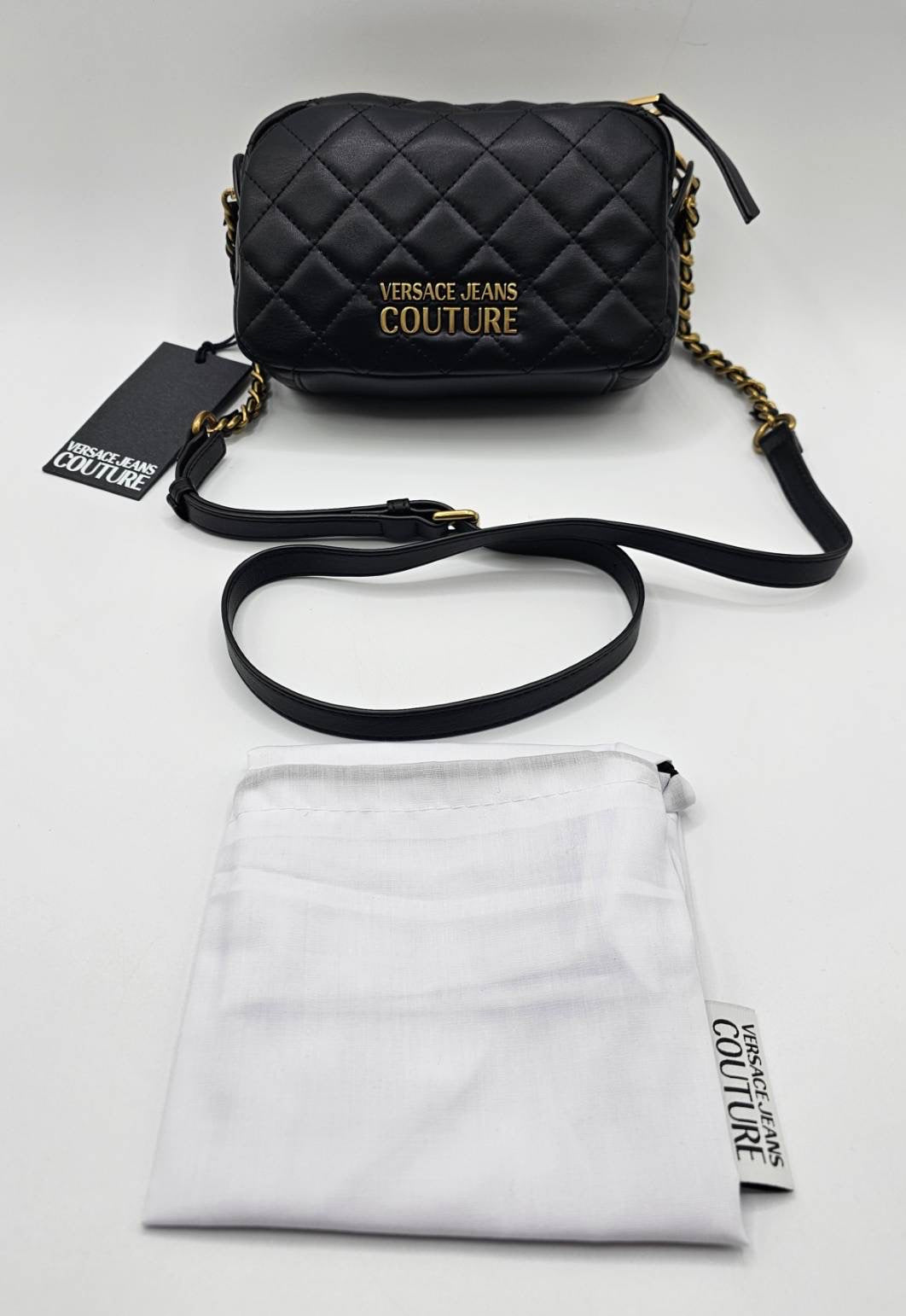 Versace Jeans Couture Logo Black Quilted Crossbody Bag