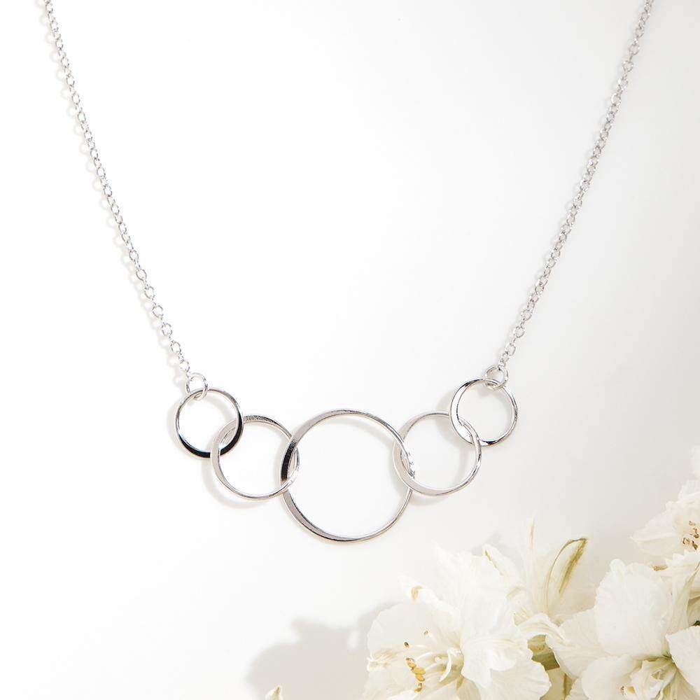 - PENDANT SIZE: 5 circles: 10, 12, 18, 12, and 10mm