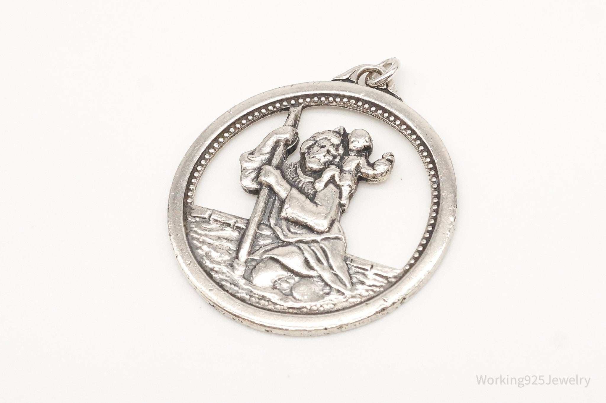 Antique Saint Christopher Protect Us Sterling Silver Pendant