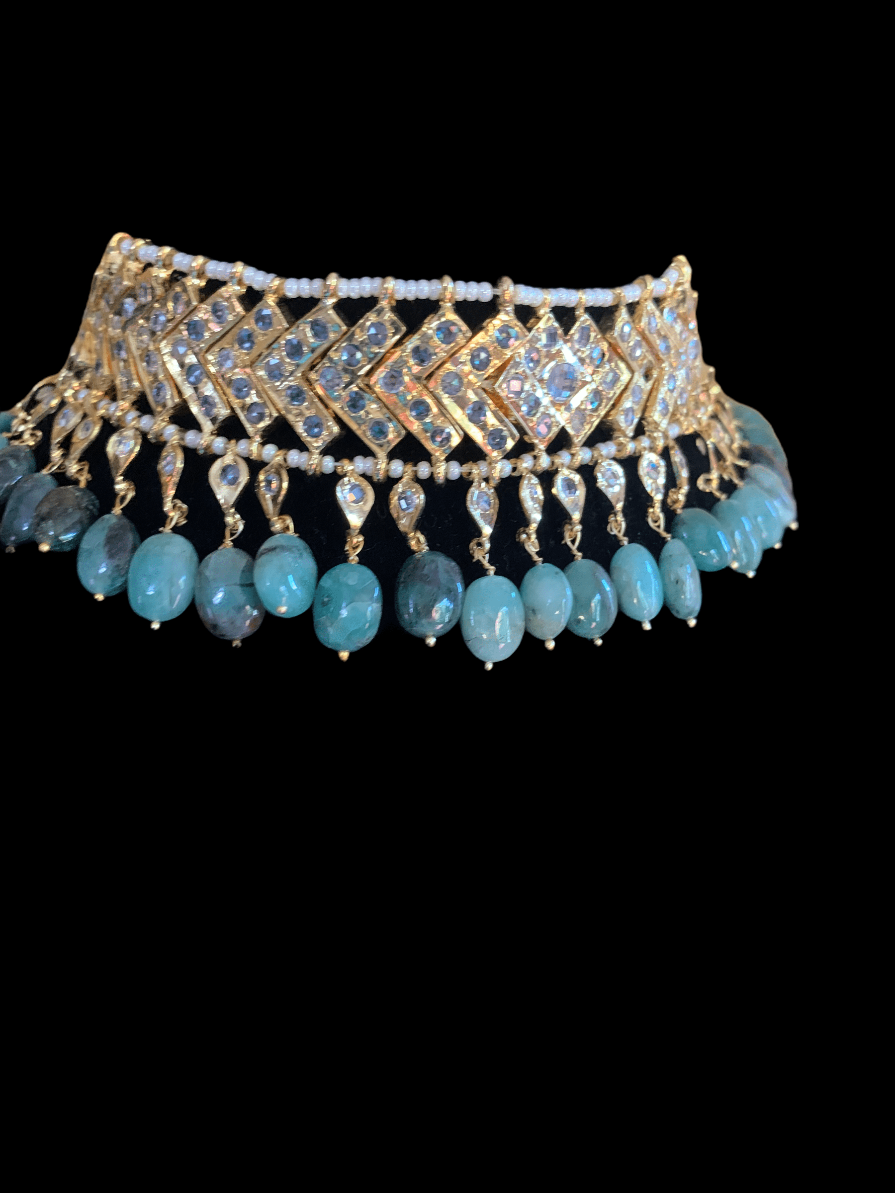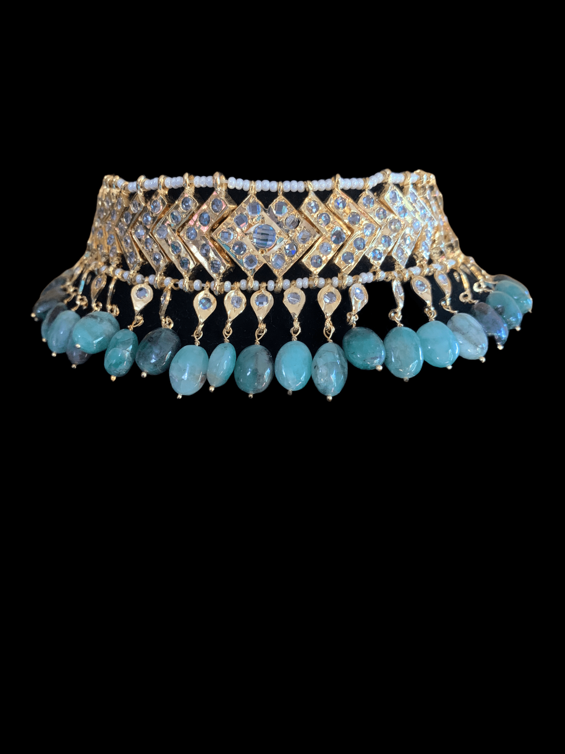 made using cz polki with natural emerald beads