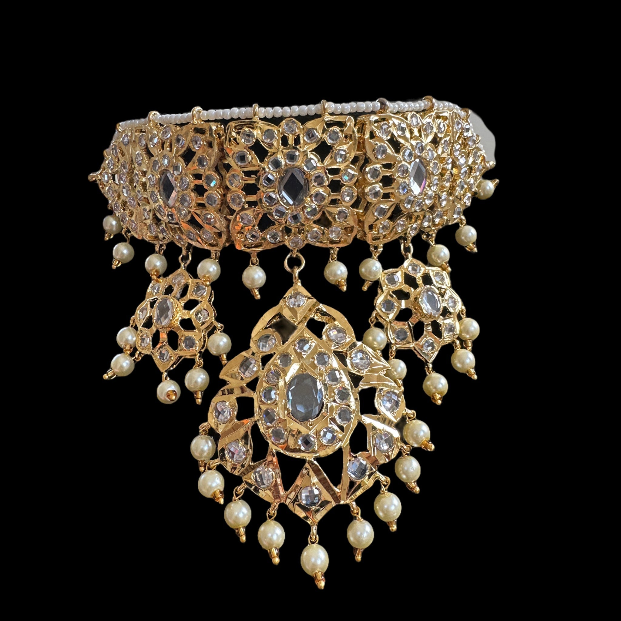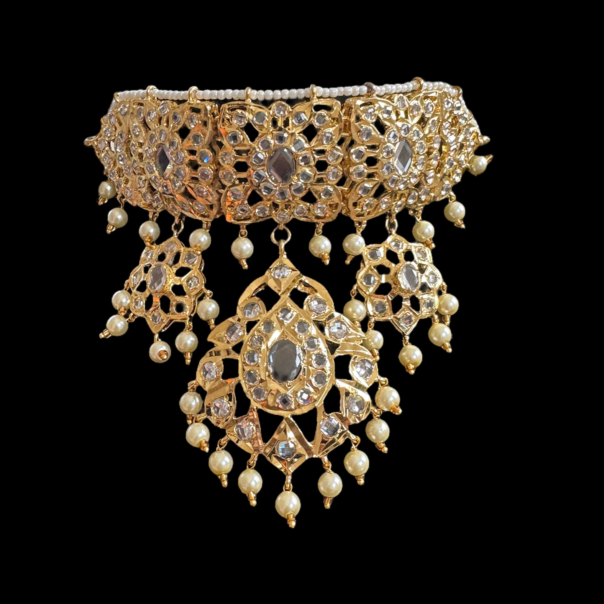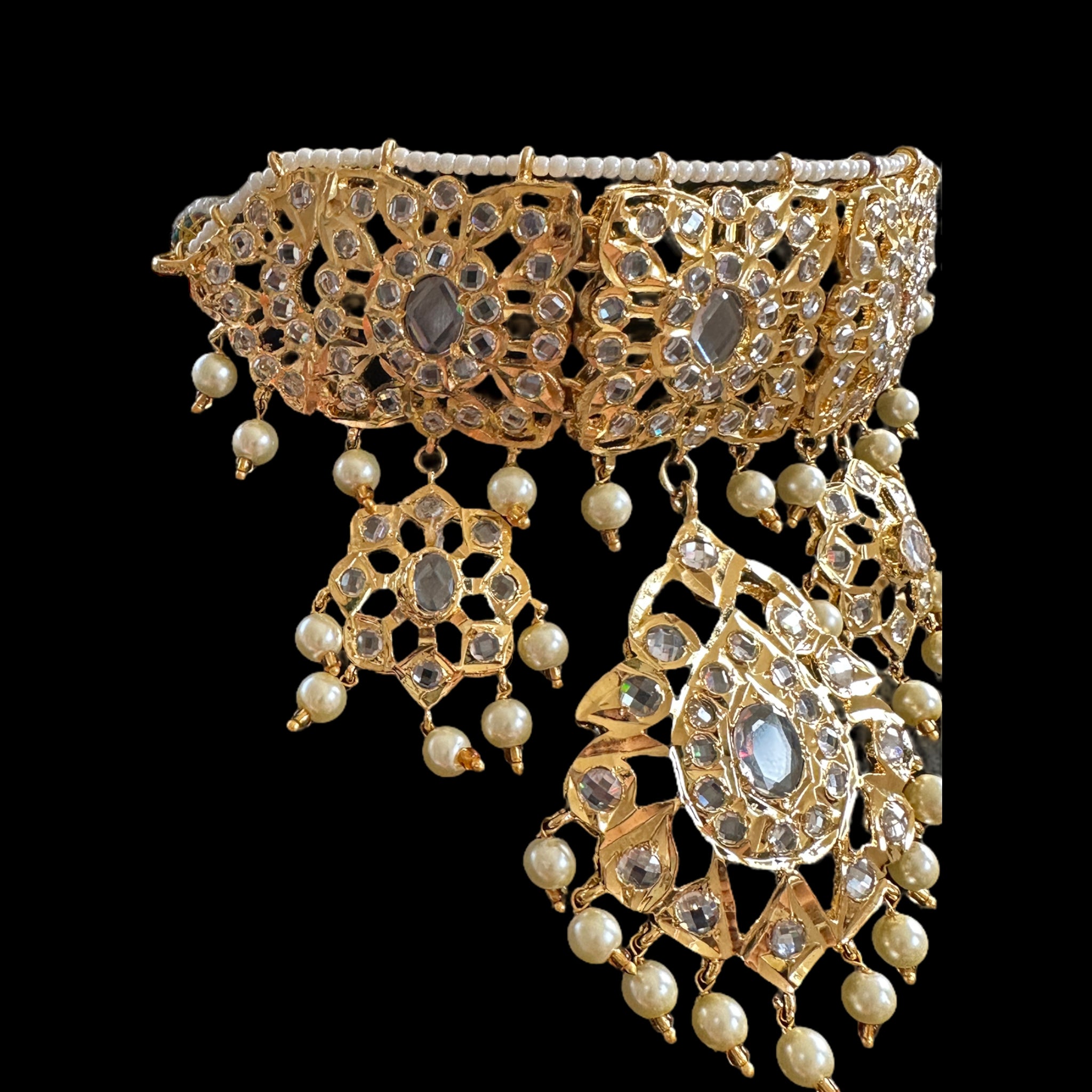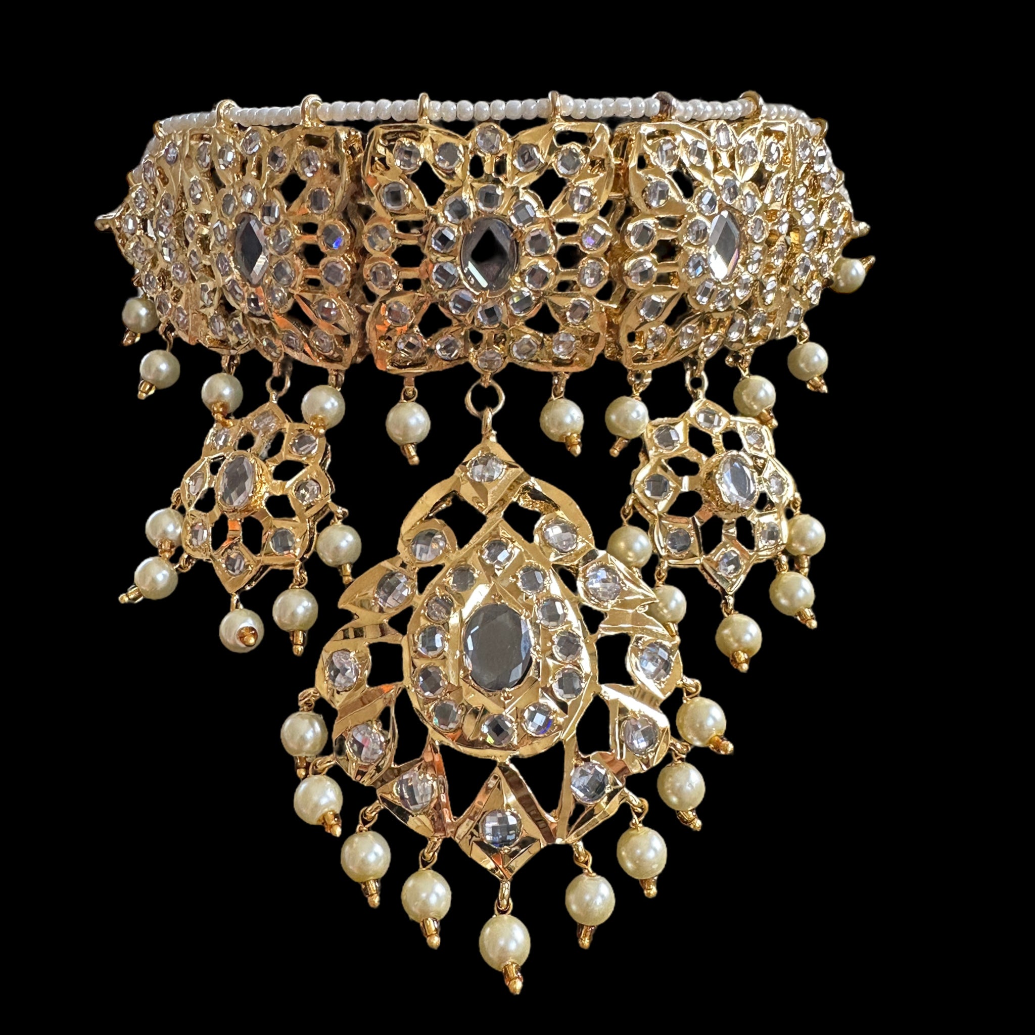 C294 Shahzeen choker set ( golden pearls ) ( SHIPS IN 4 WEEKS )