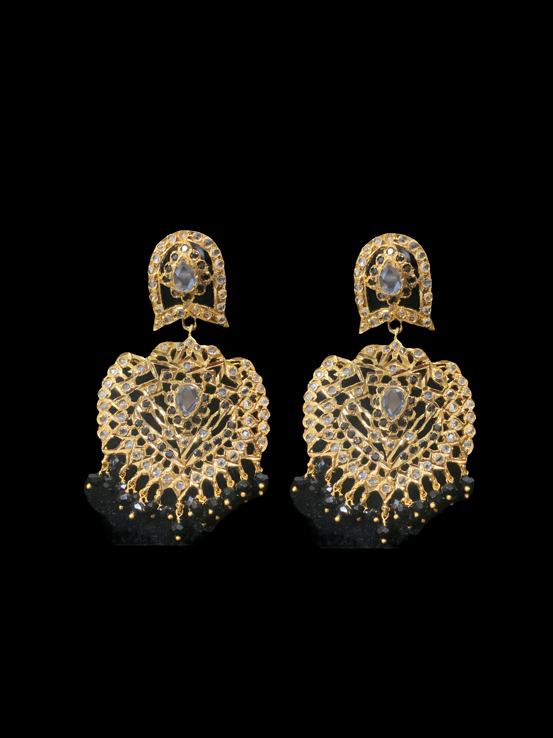 made using onyx beads with cz polki and 22ct gold plating
