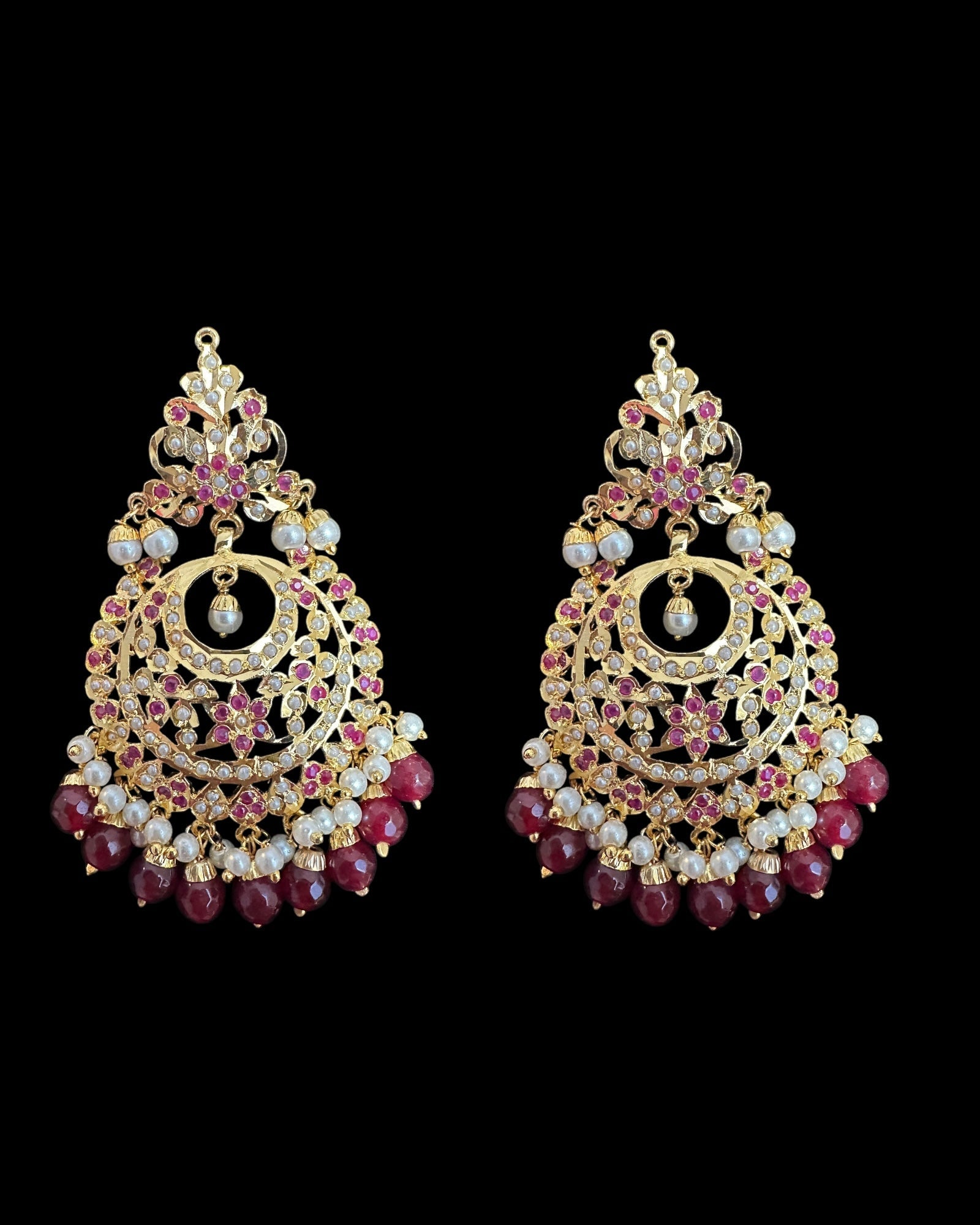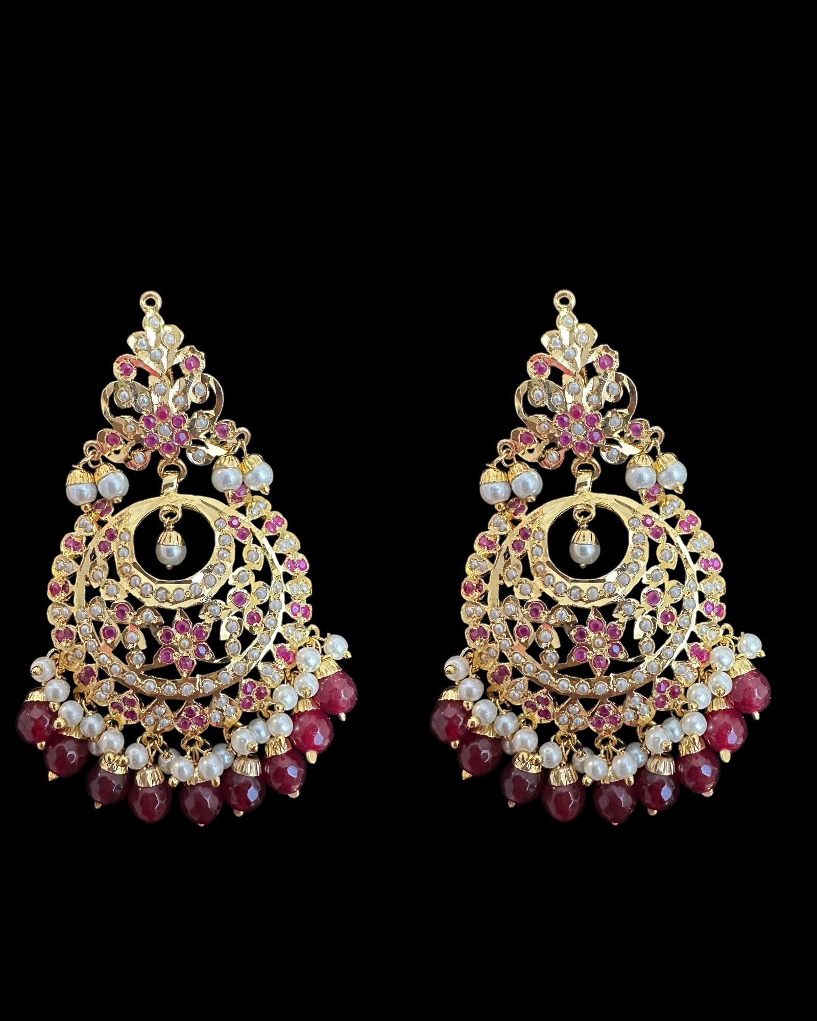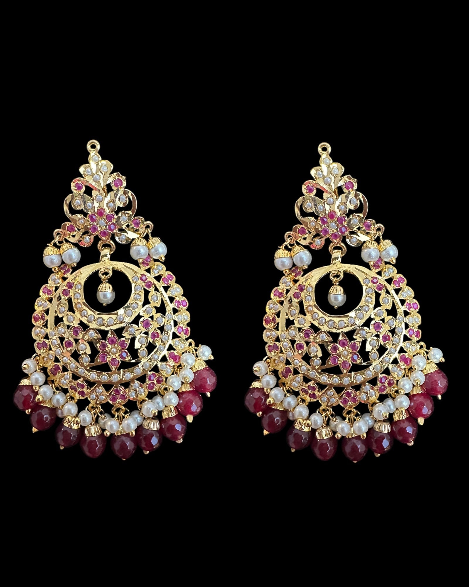 DJET86 Dafiya ruby pearl Chandbali Earrings & Tika Set | Ships in 4 weeks | Deccan Jewelry