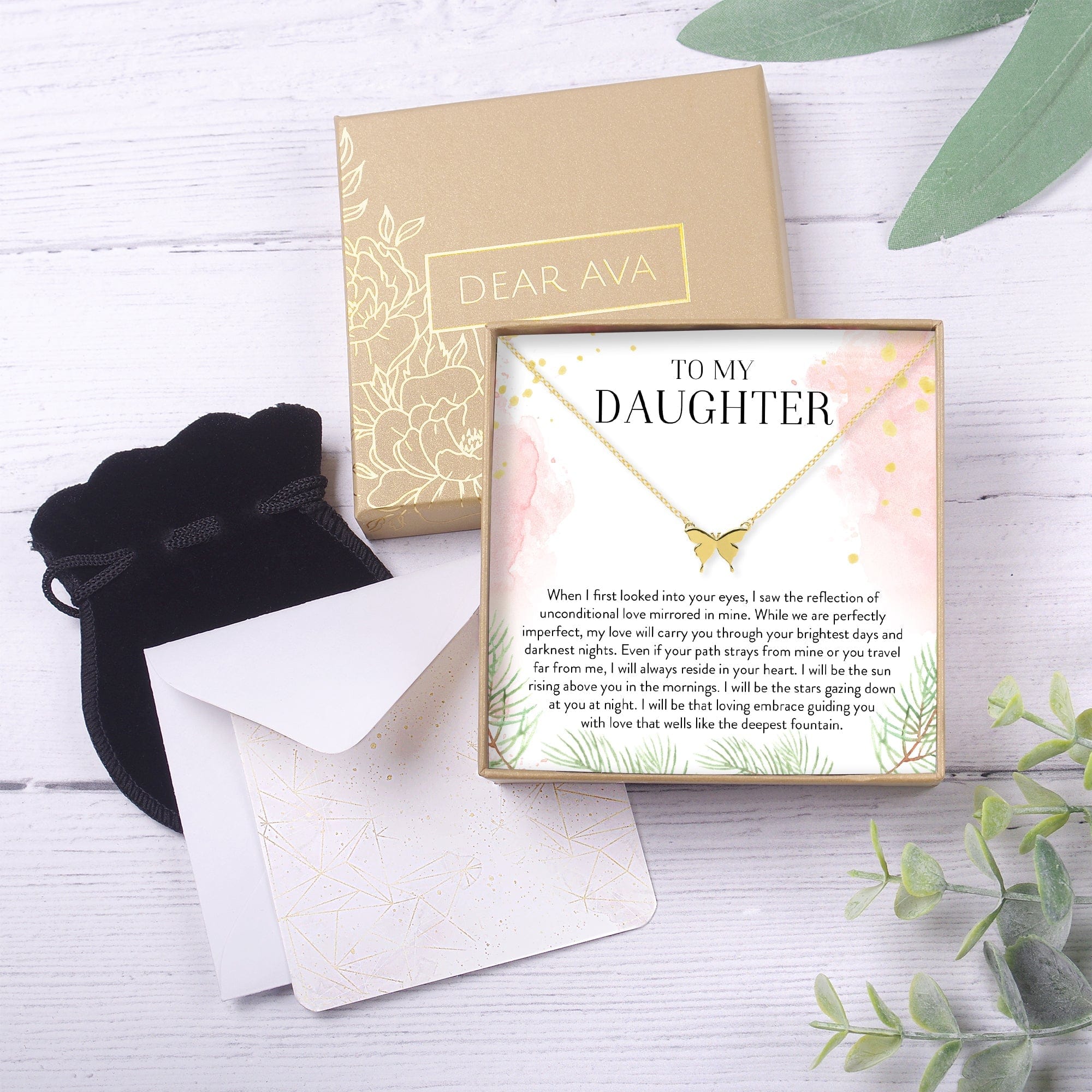 Daughter Butterfly Pendant Necklace ‐ Gold