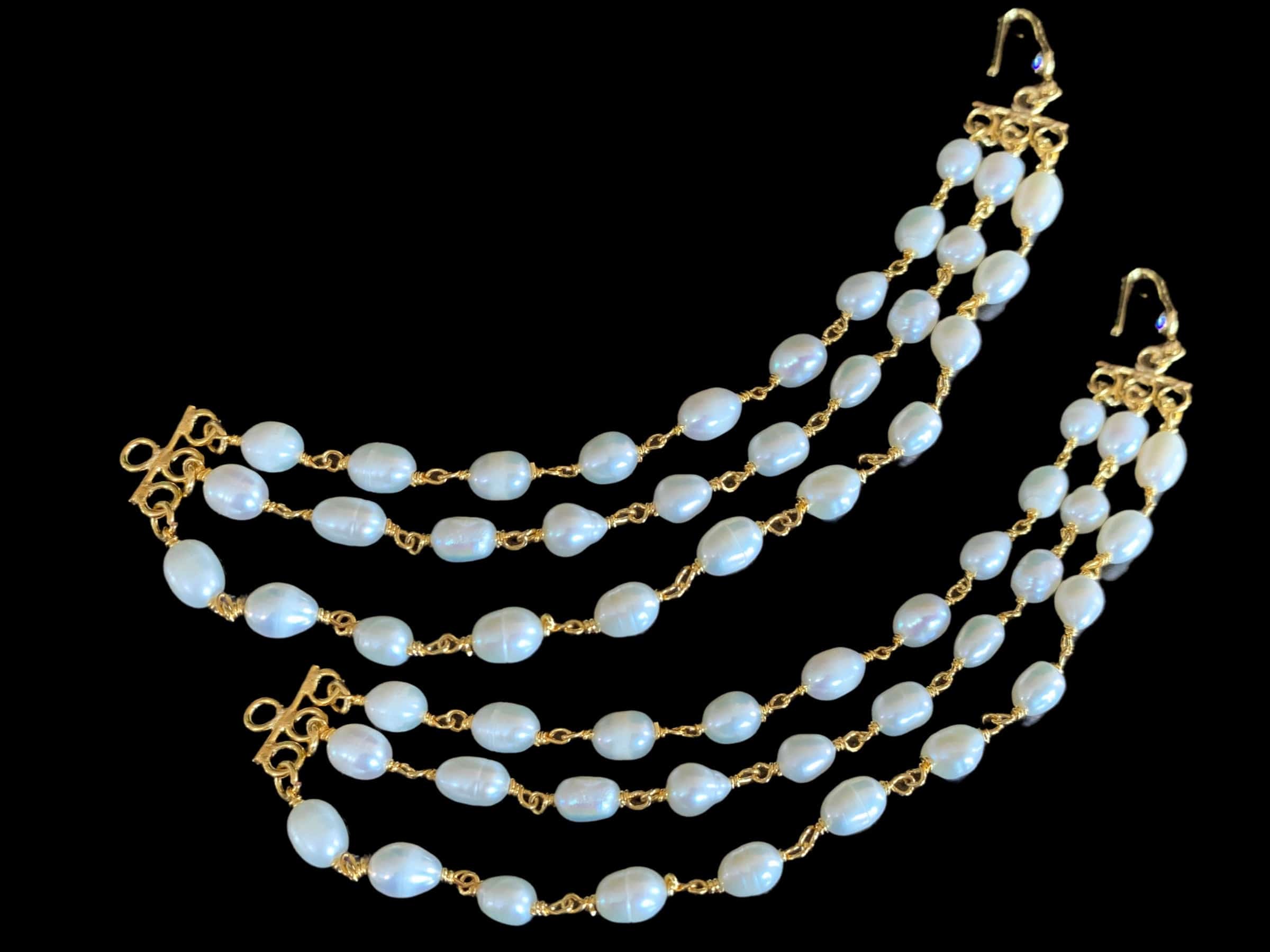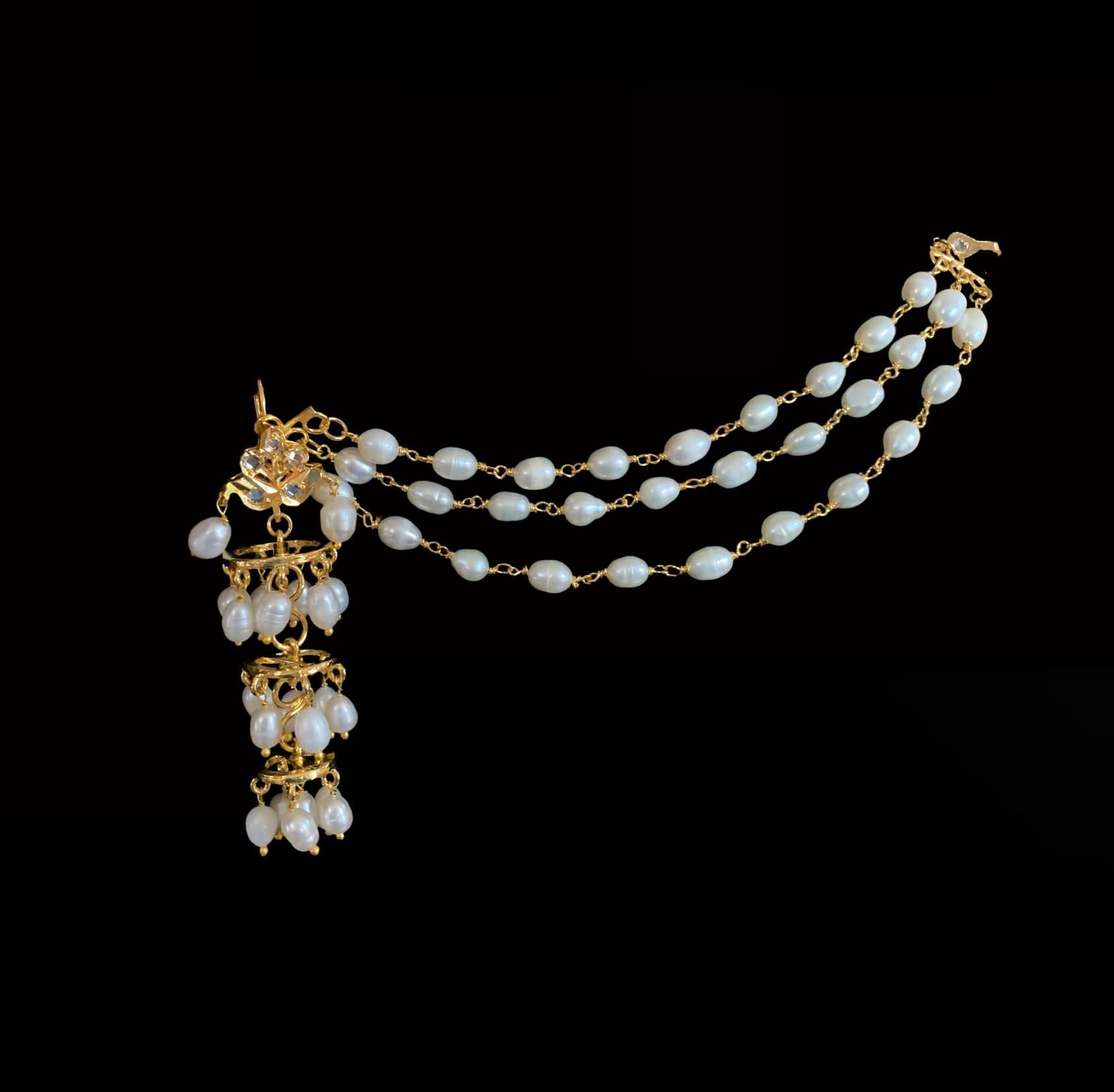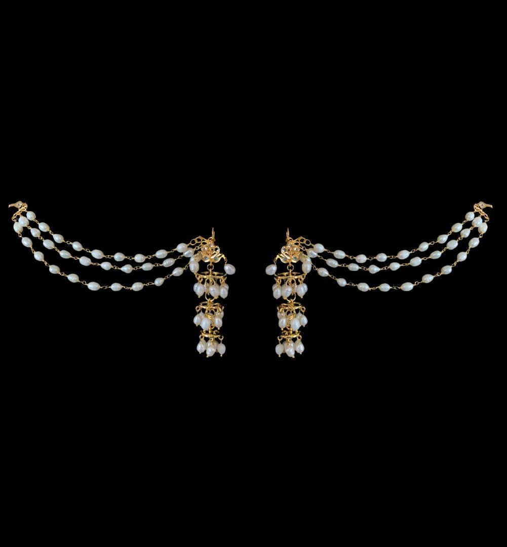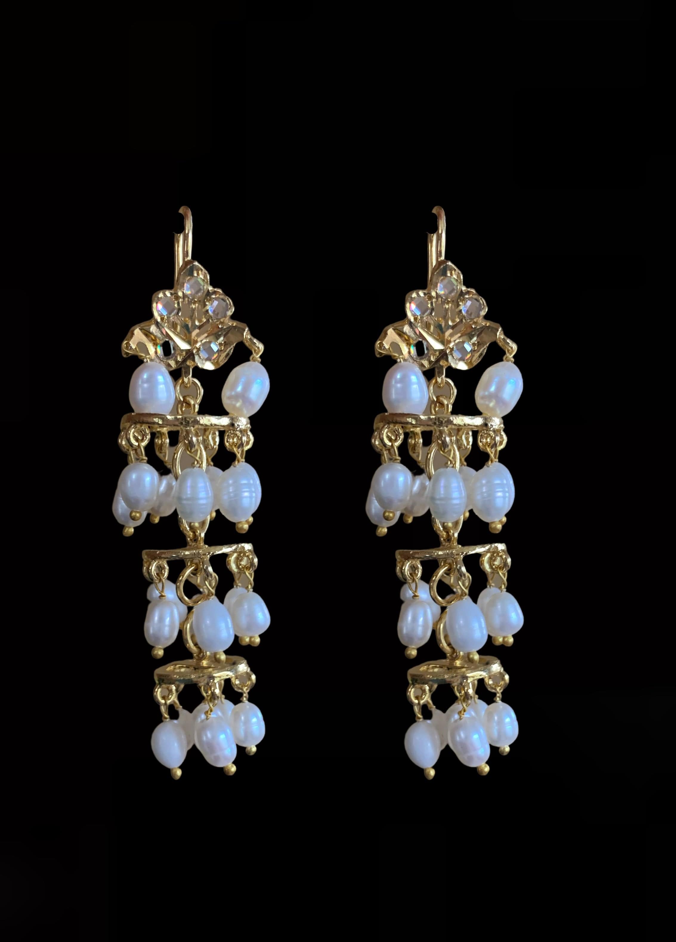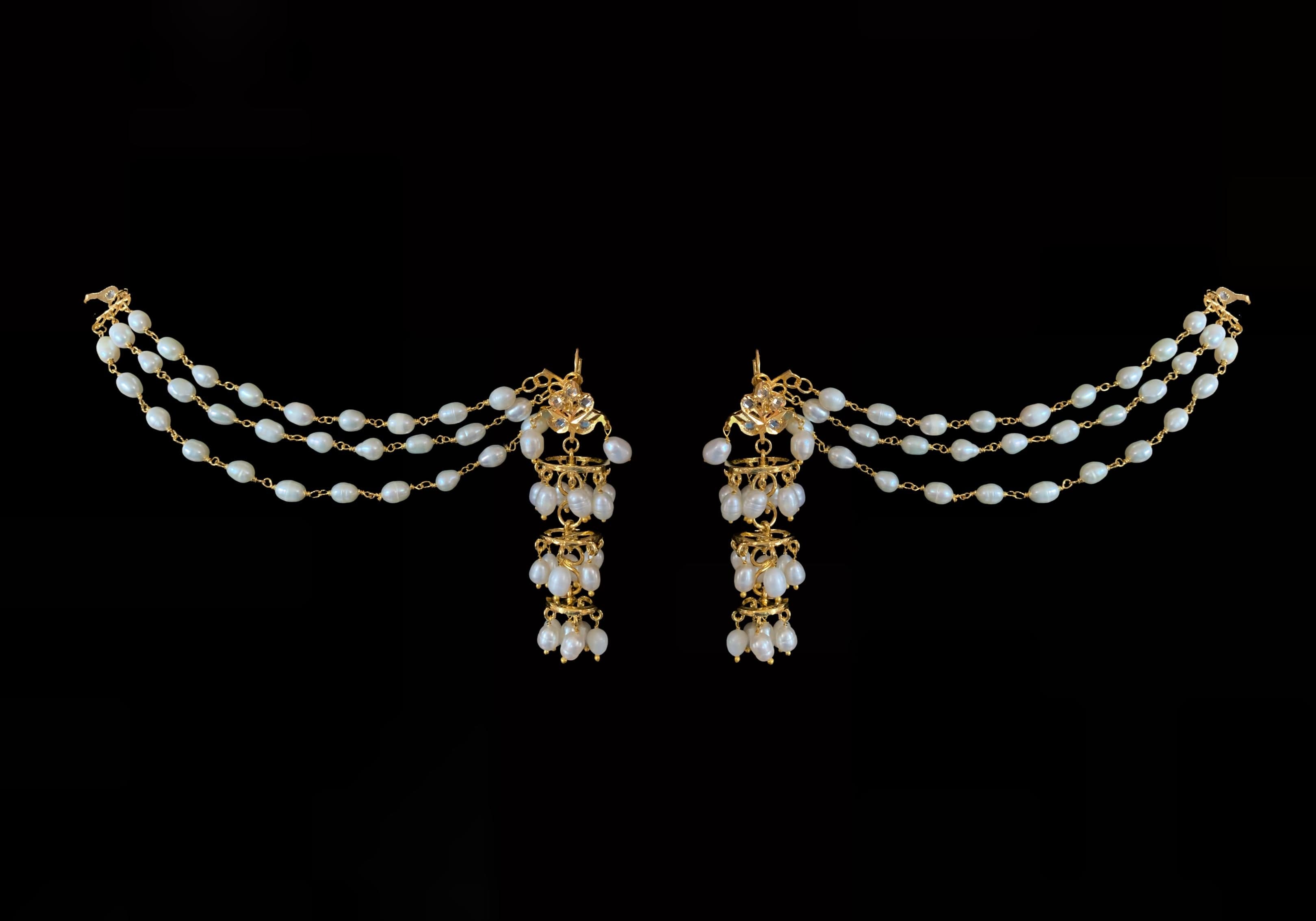 DER212 Insha jhumka in fresh water pearls ( READY TO SHIP ) ‐ Earrings with ear support