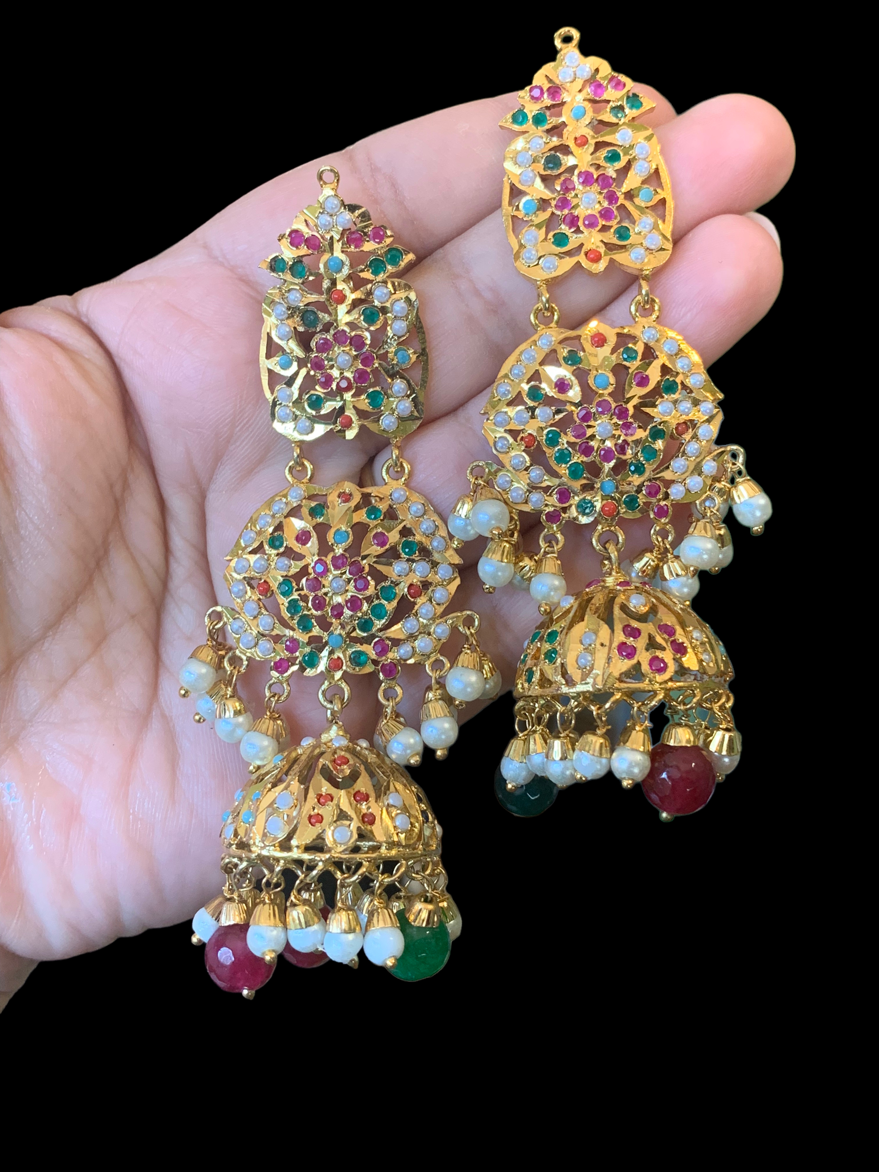 DER359 Vidisha jhumka in navratan ( READY TO SHIP )