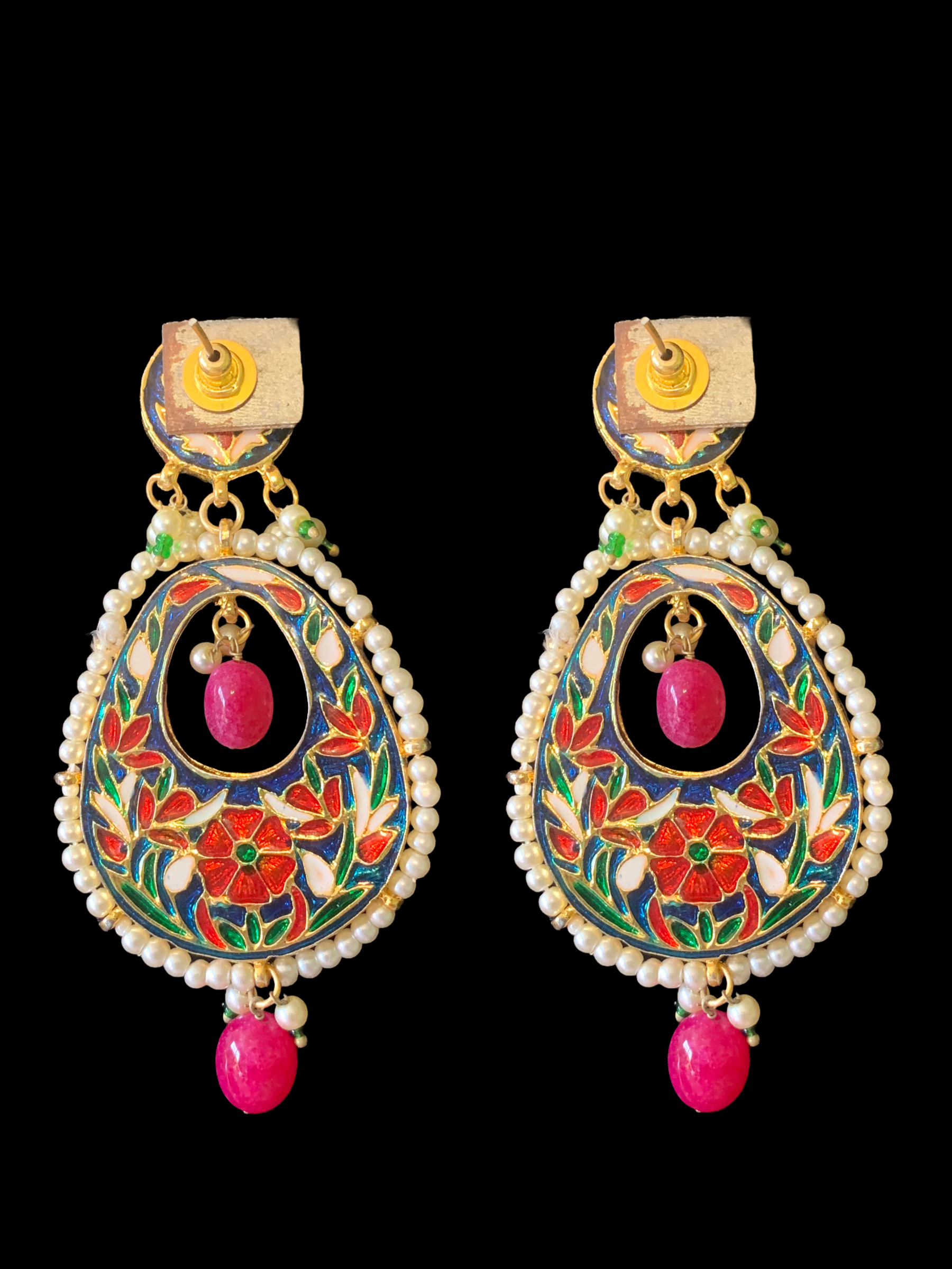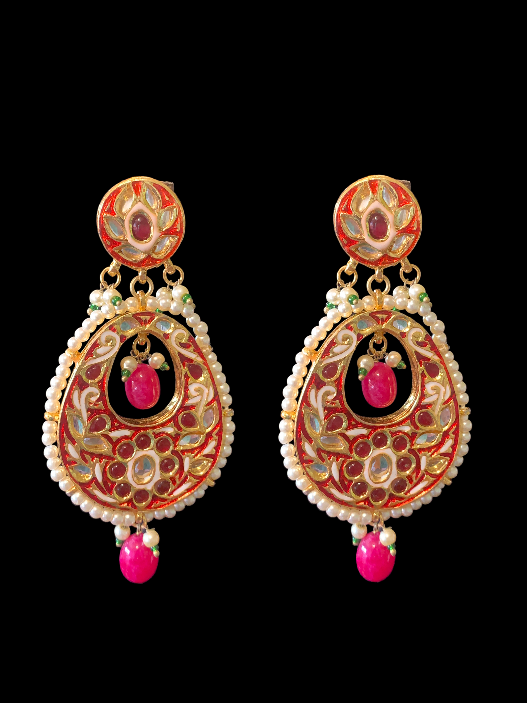 DER374 Hira kundan chandbali in red meenakari (READY TO SHIP)