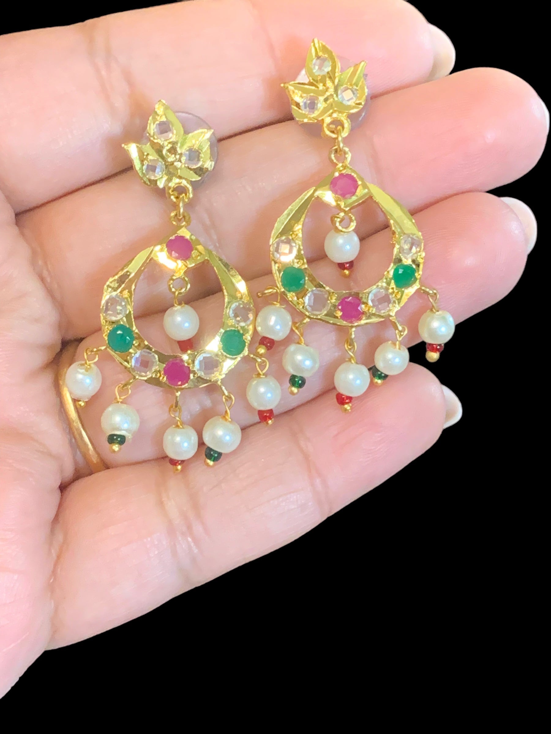 DER400 Neda chandbali in Ruby emerald ( READY TO SHIP)