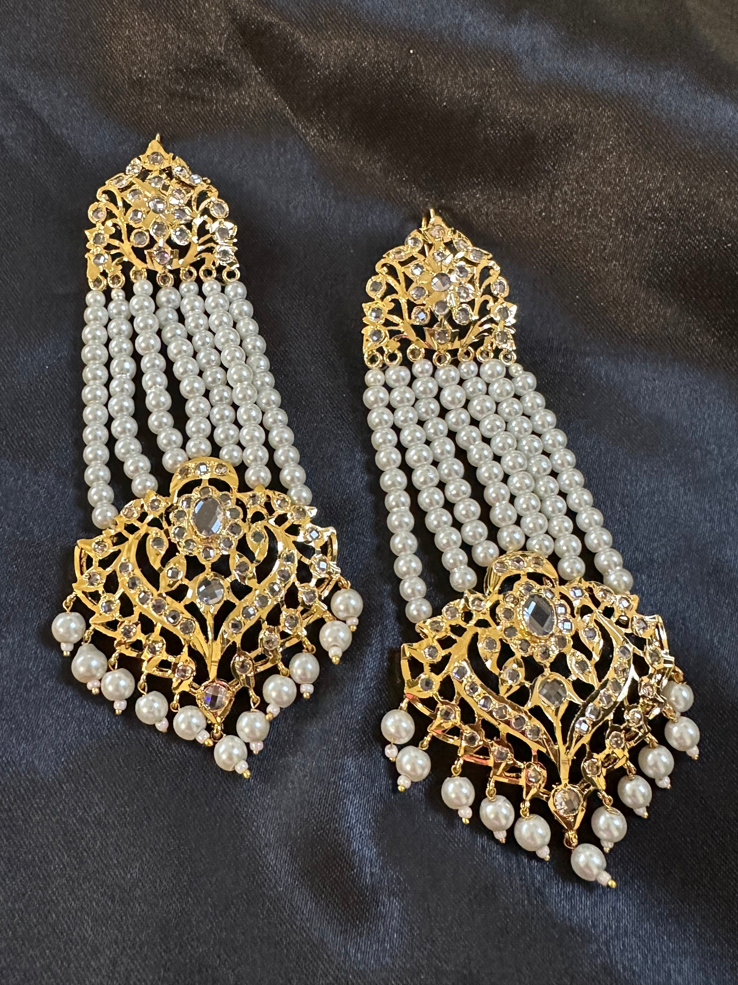 DER529 Ekta Hyderabadi jhoomar earrings - pearls ( SHIPS IN 4 WEEKS )