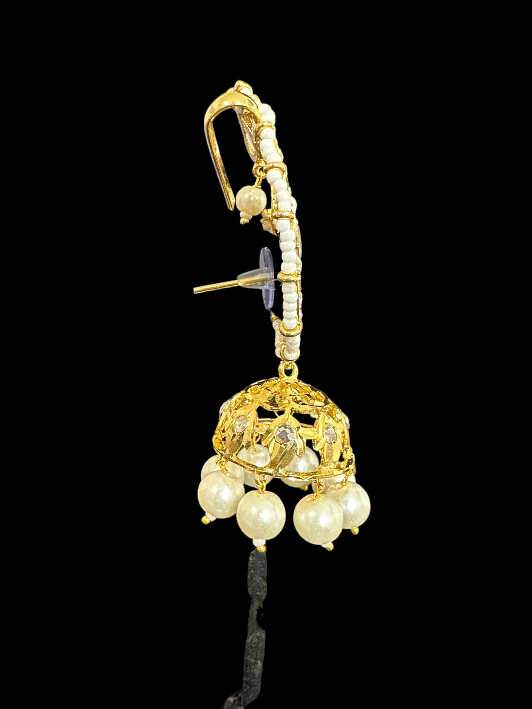 DER533 Kaan phool jhumka earrings in pearls ( SHIPS IN 3 WEEKS )