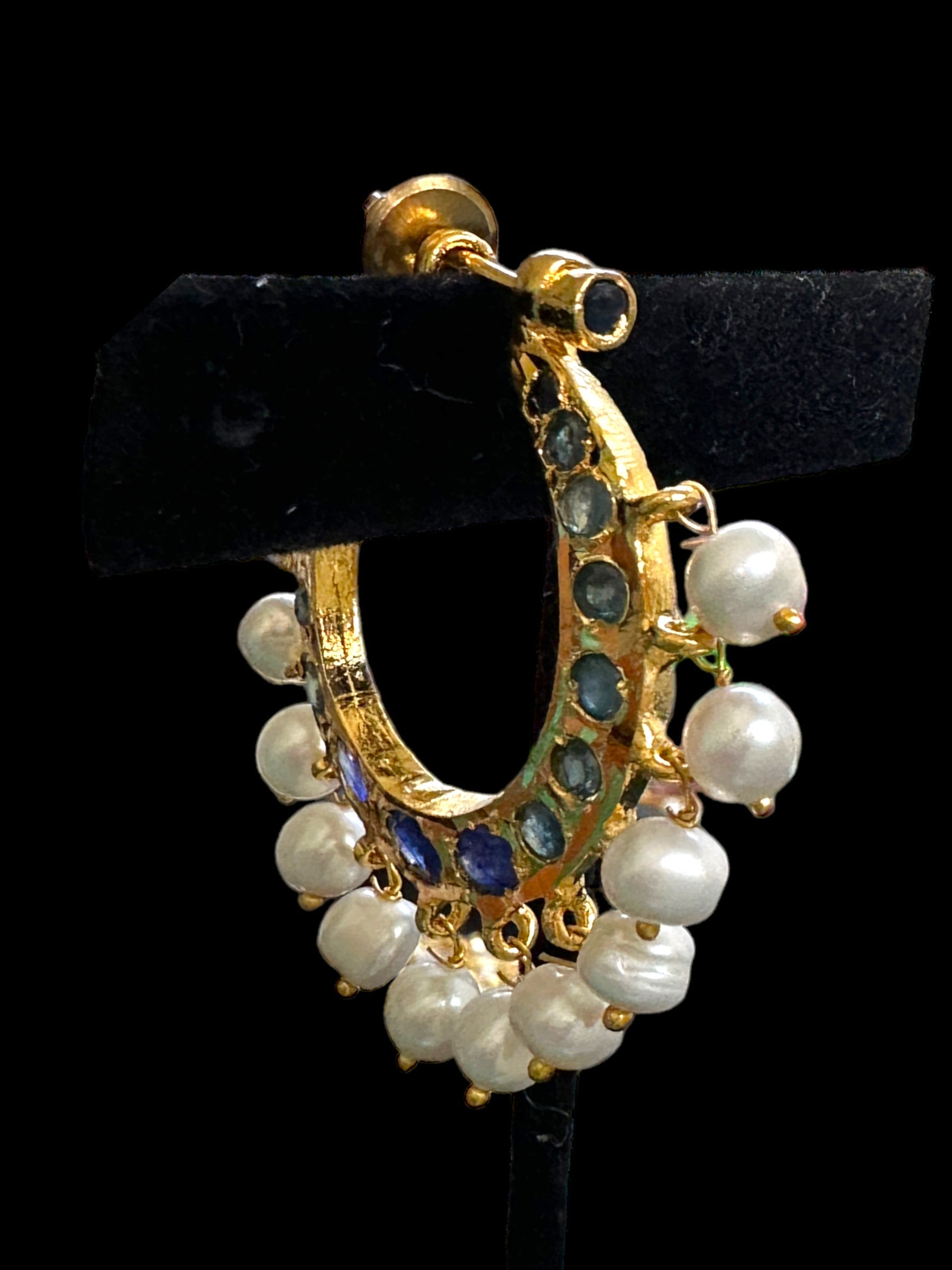 DER557 Chandbali in fresh water pearls and sapphires ( READY TO SHIP )