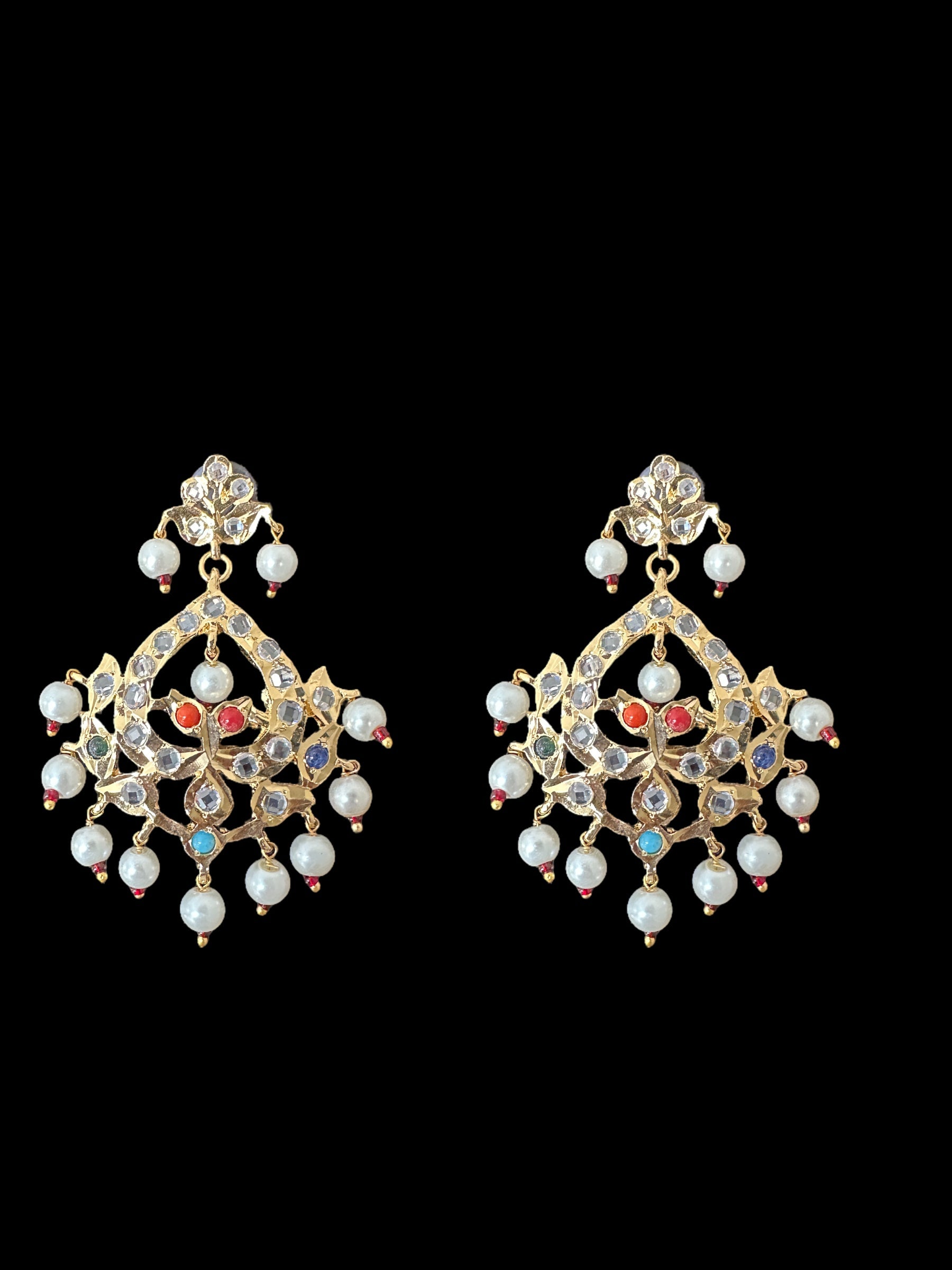 DER599 Dina hyderabadi navratan Chandbali with golden pearls ( READY TO SHIP )
