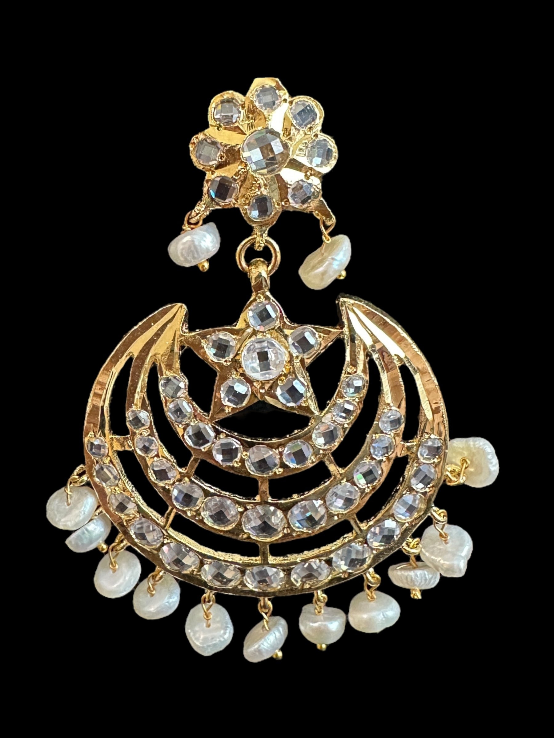 DER625 Komal gold plated chandbali earrings in real pearls ( READY TO SHIP )