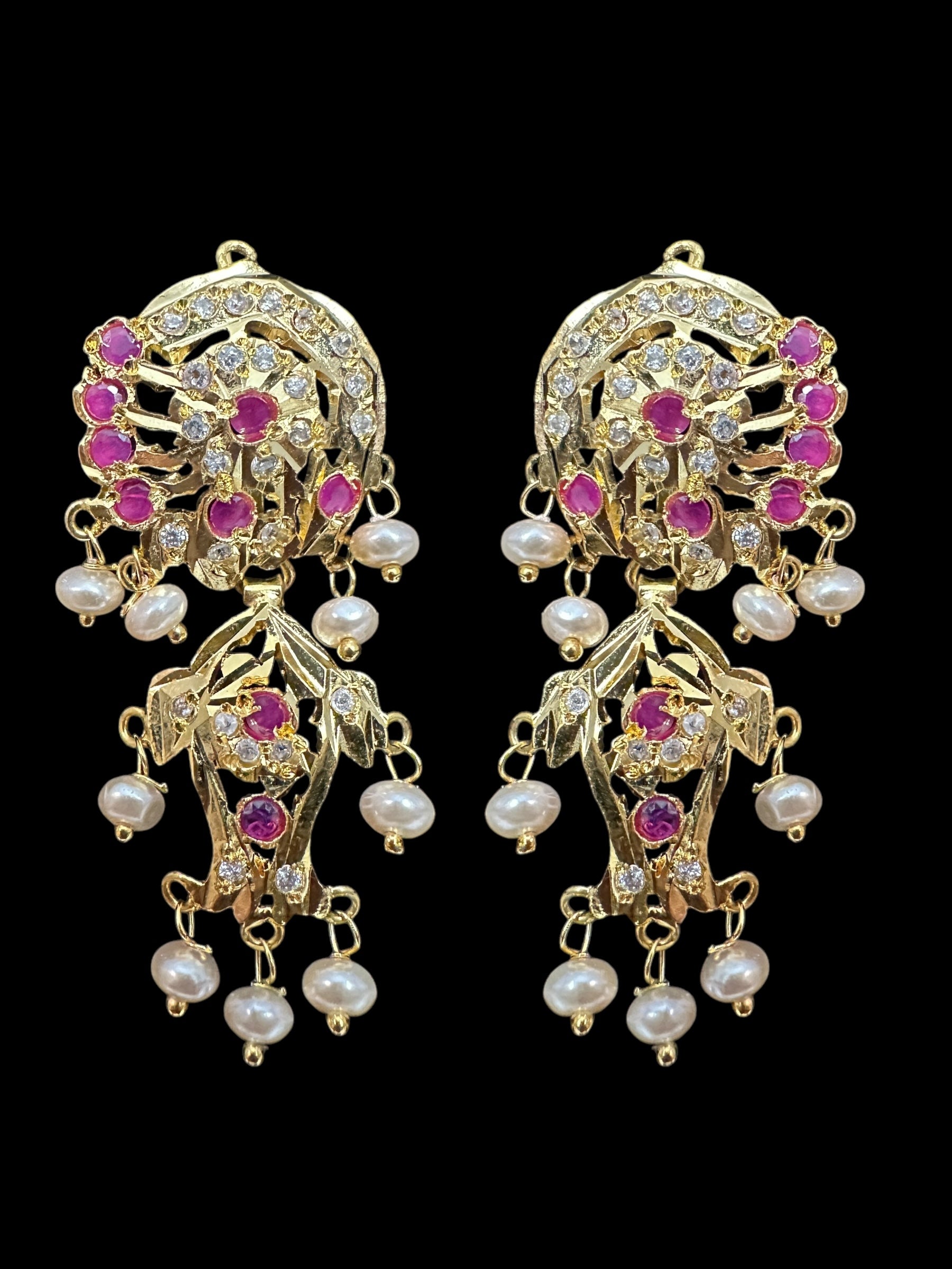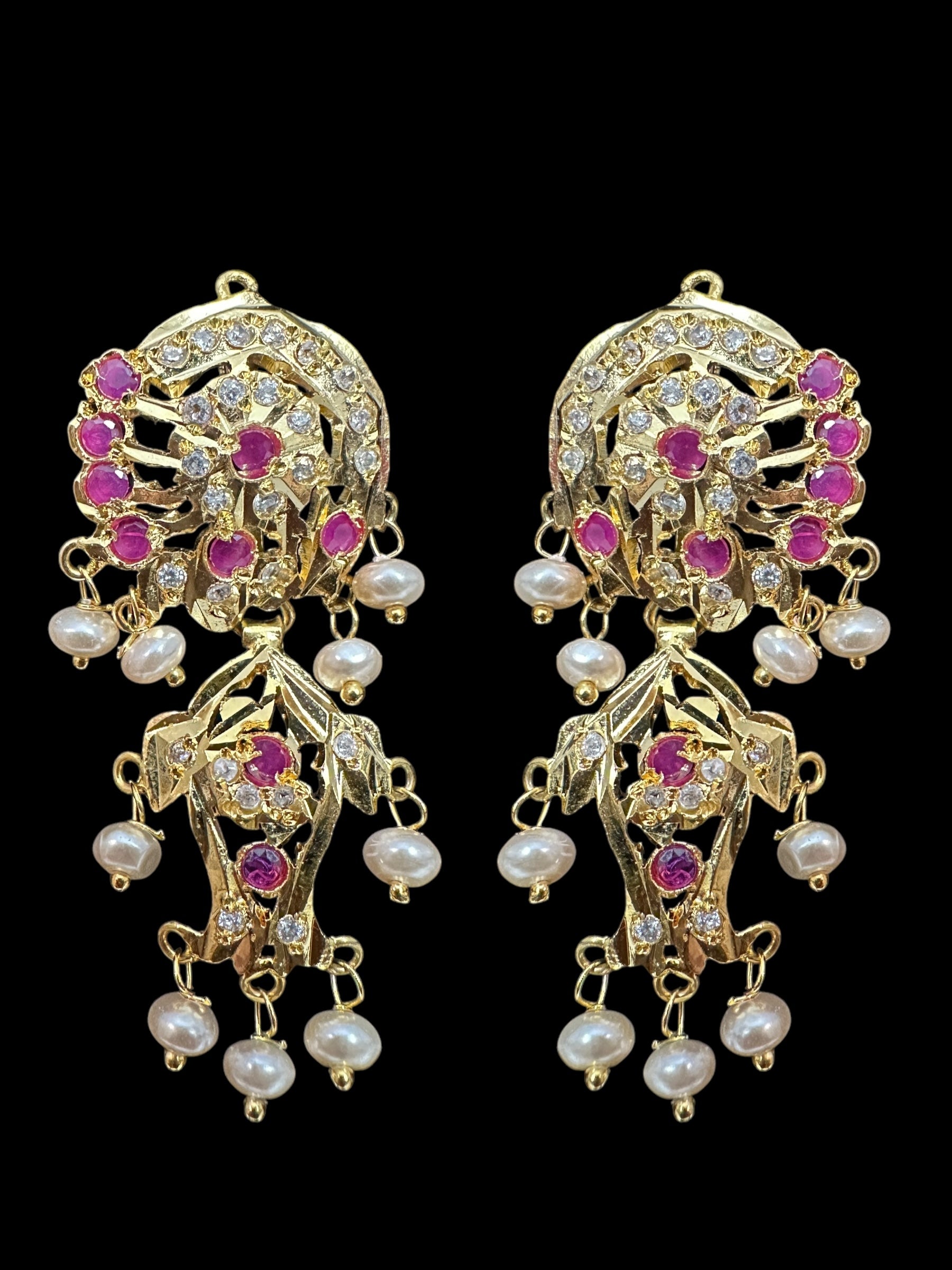 DER633 jadau earrings in fresh water pearls - ruby READY TO SHIP )