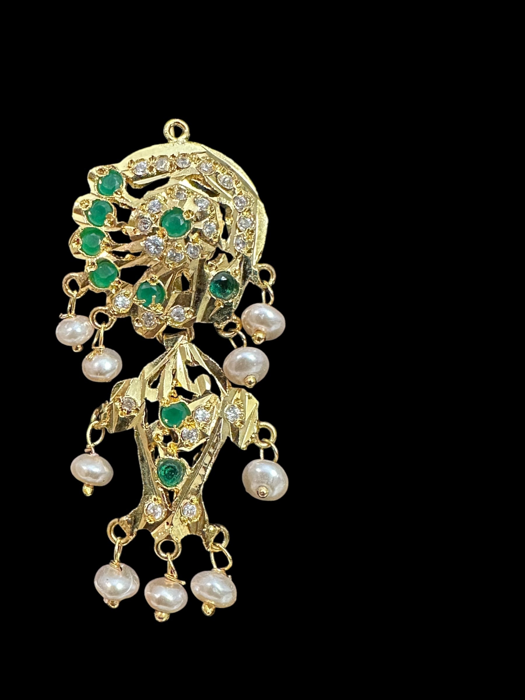 DER634 jadau earrings in fresh water pearls -emerlad ( READY TO SHIP )