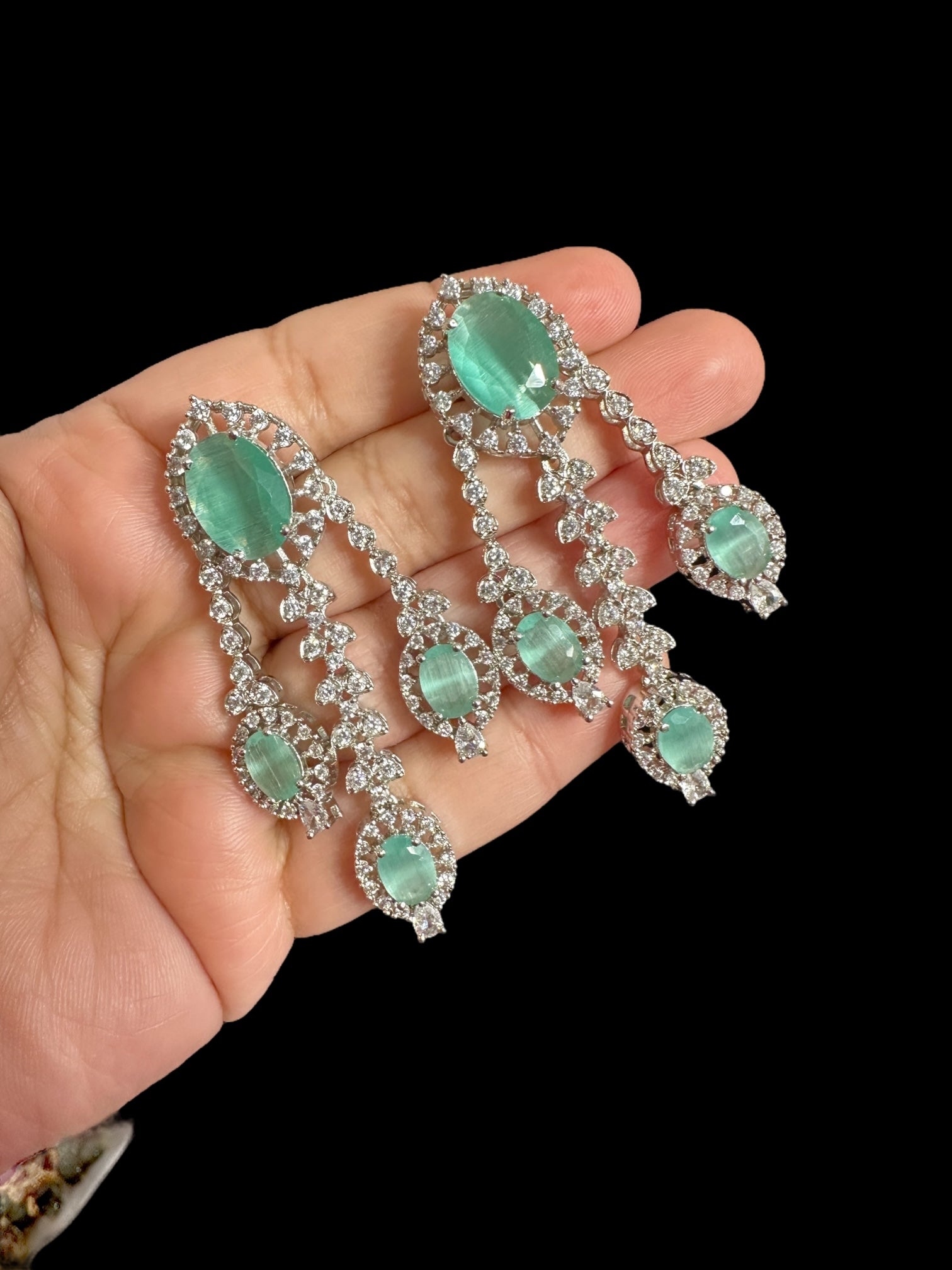 DER750 cz earrings - Mint blue, silver plated ( READY TO SHIP )