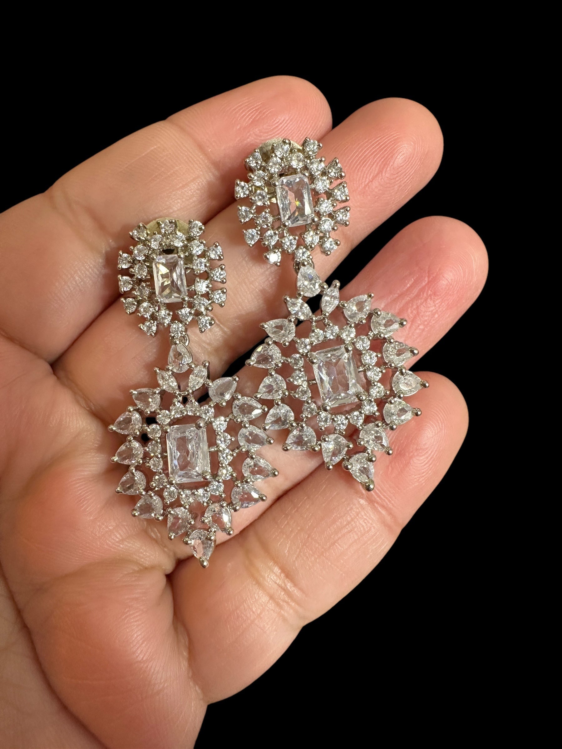 DER776 Sarah Cz earrings - silver plated ( READY TO SHIP )