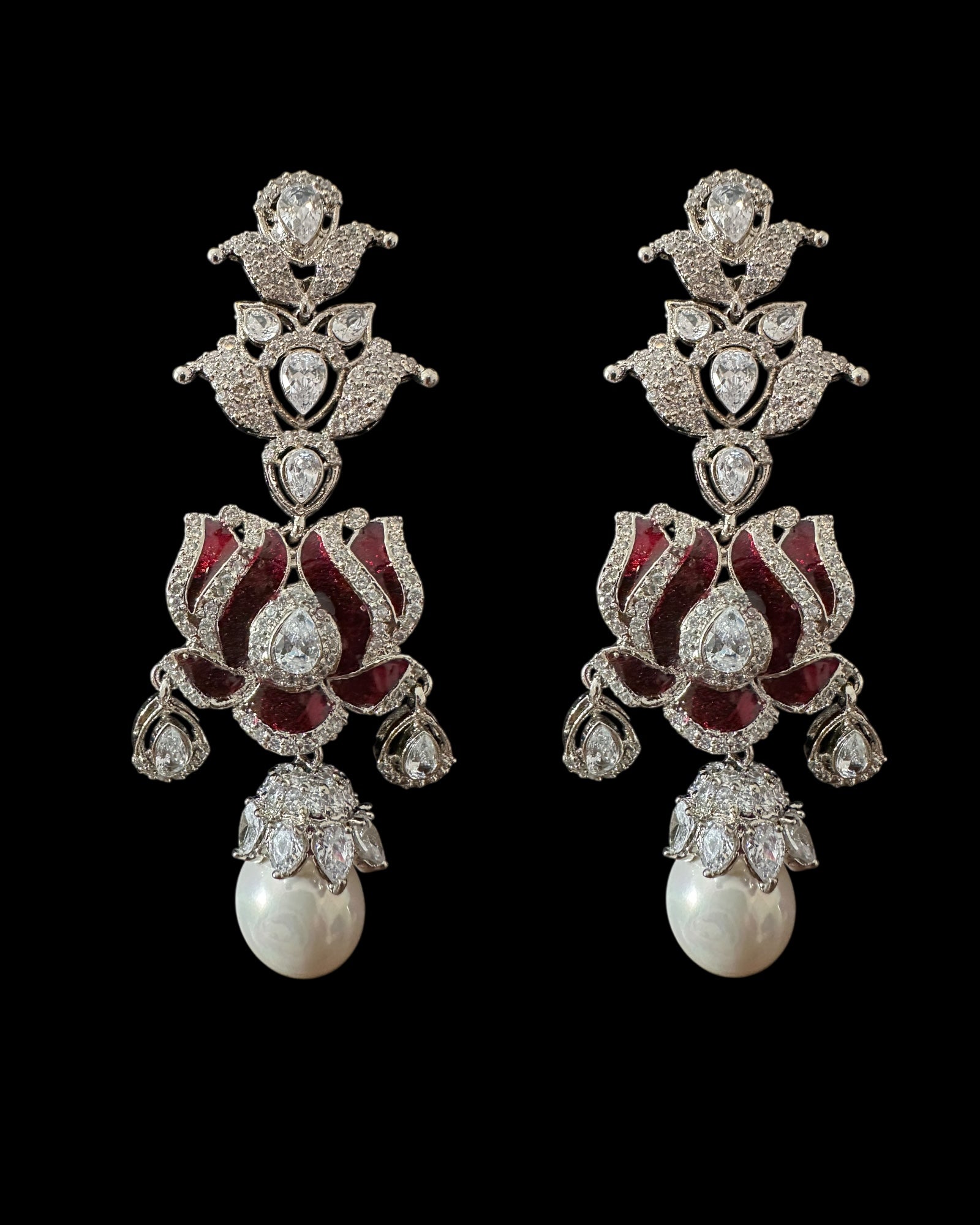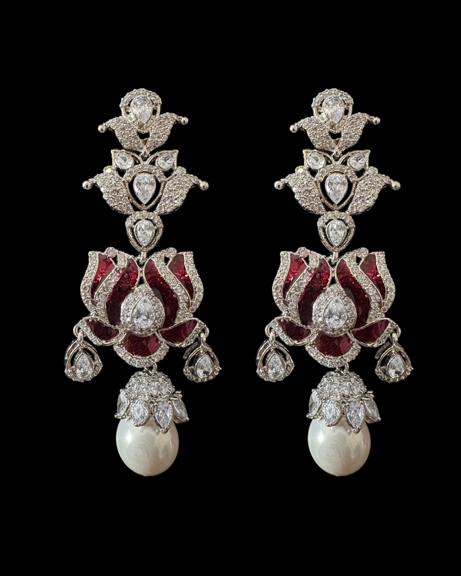 DER809 Lotus Cz earrings -Maroon ( READY TO SHIP )