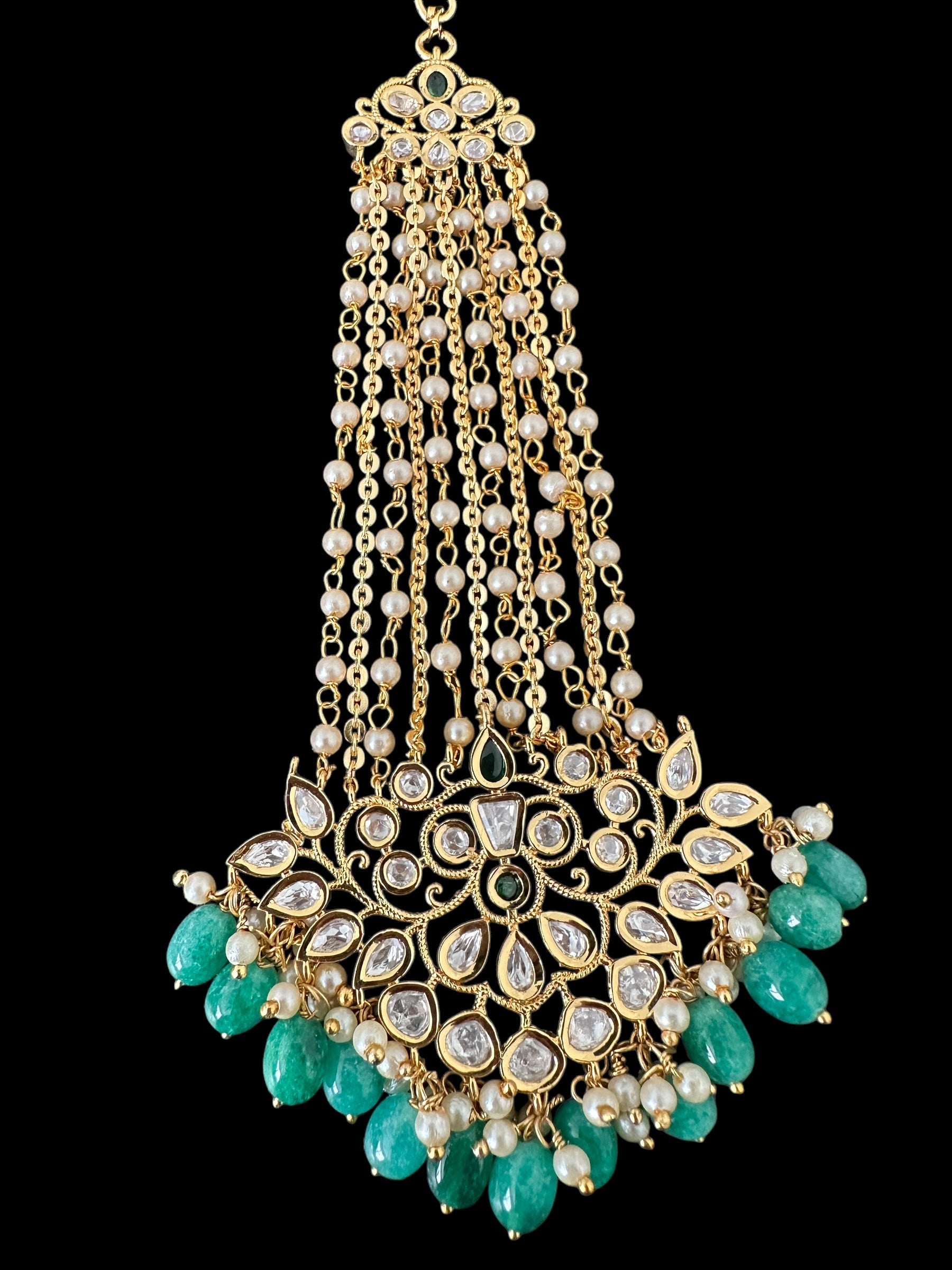 DJHR146 Gold plated high quality Polki jhoomar - Green ( READY TO SHIP )