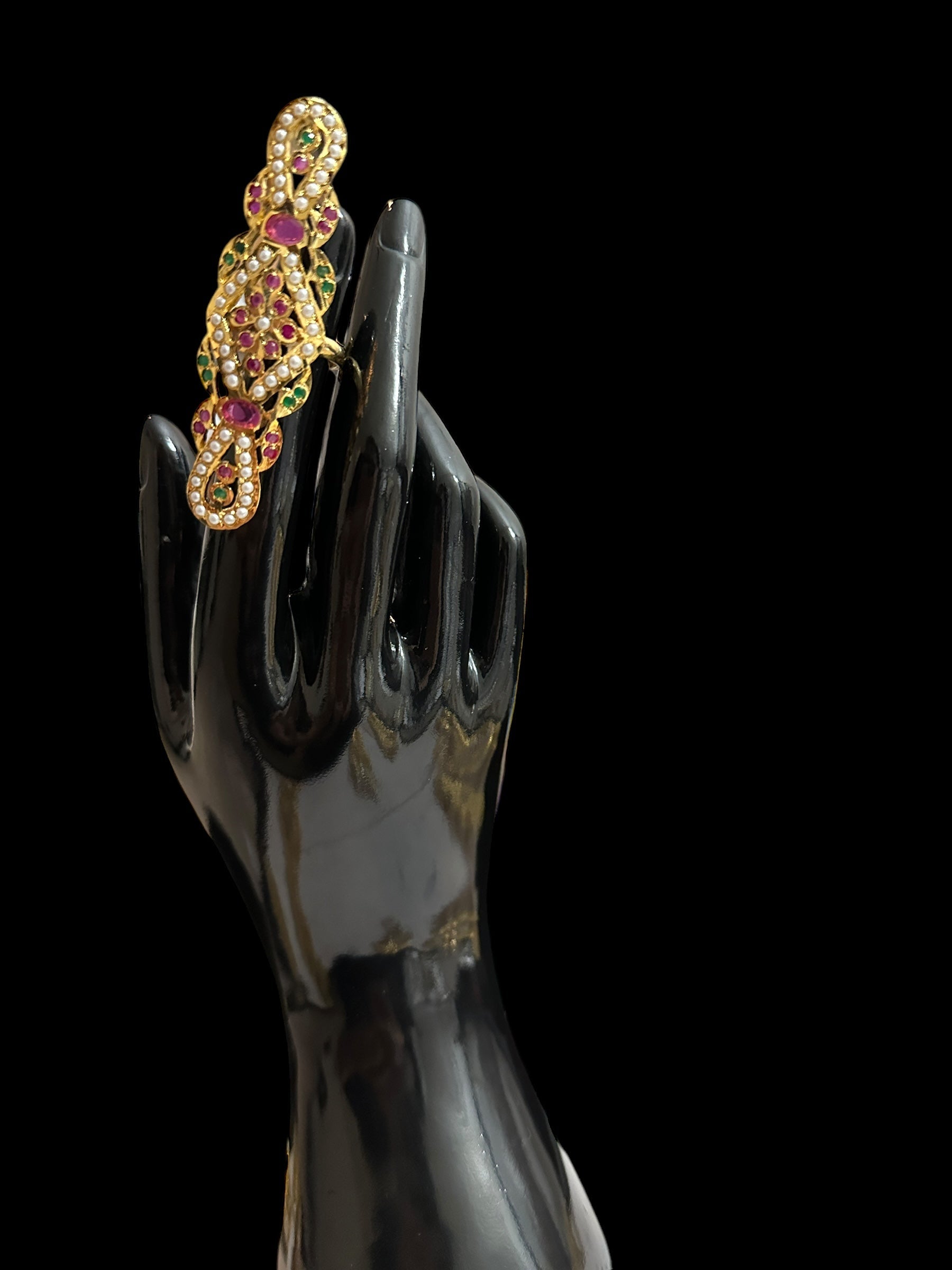 DJR48 Oversized Jadau pearl ring(Ruby emerald pearl ) ( READY TO SHIP )