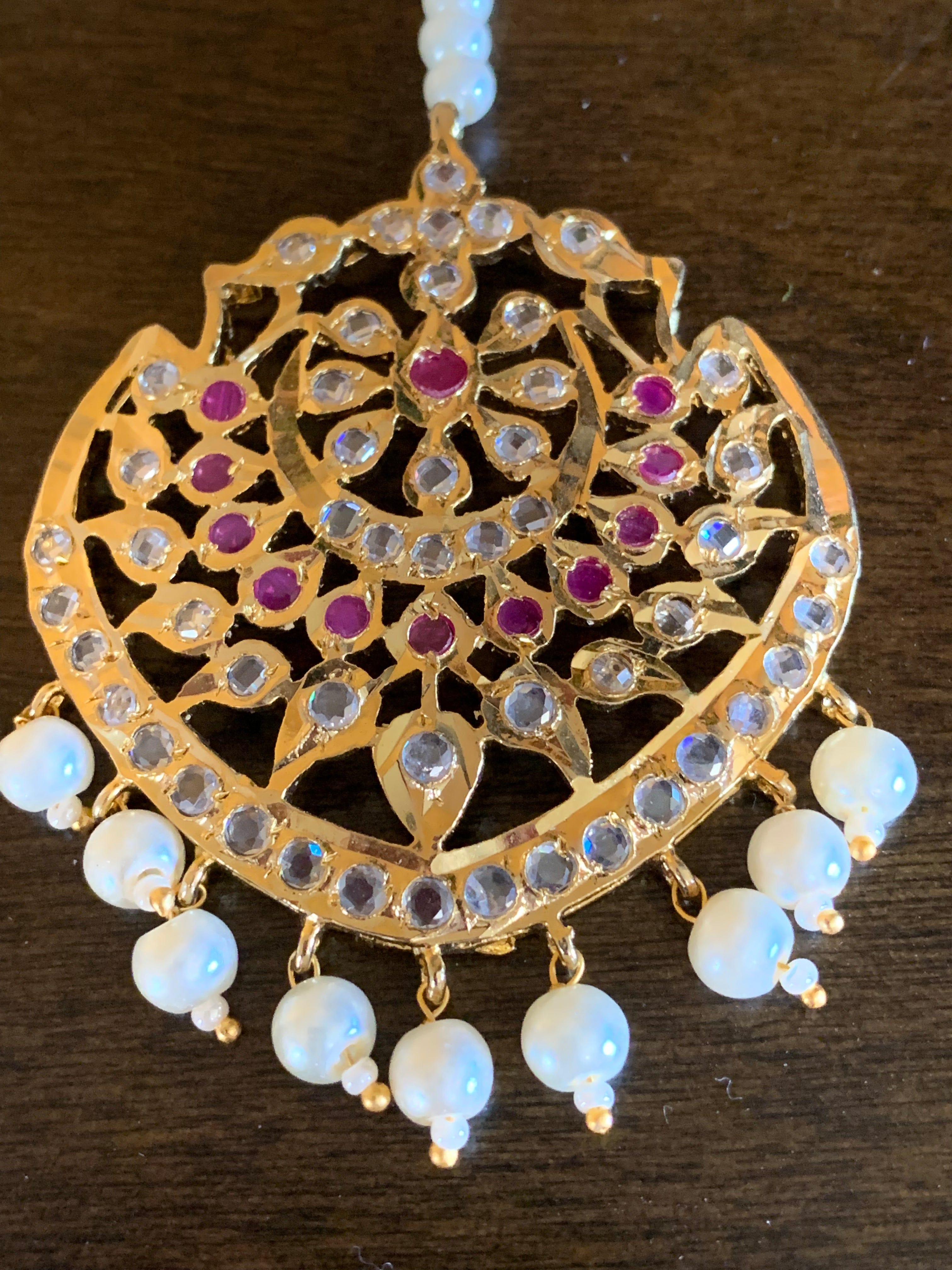 made using shell pearls , polki and ruby beads with 22ct gold plating
