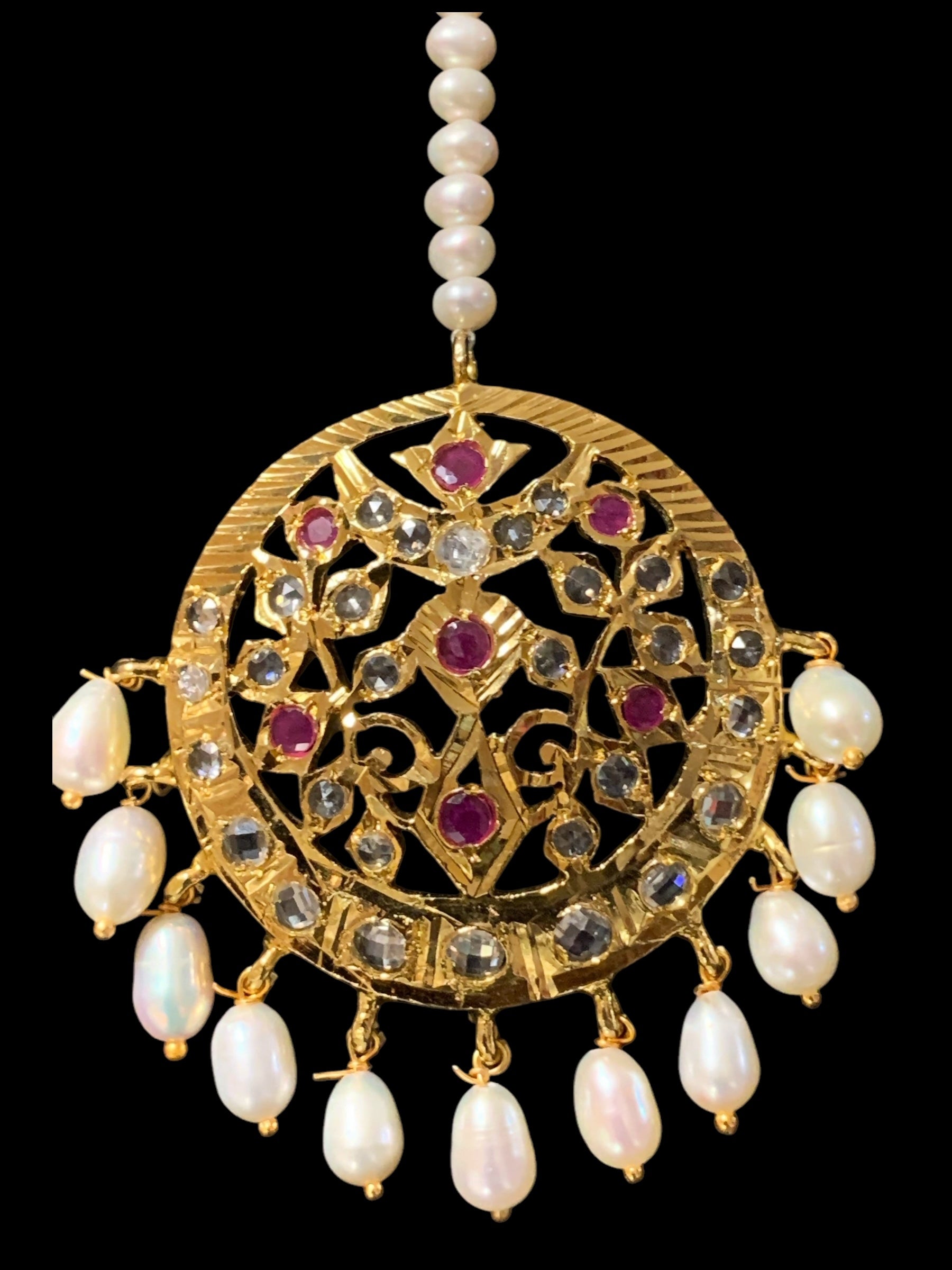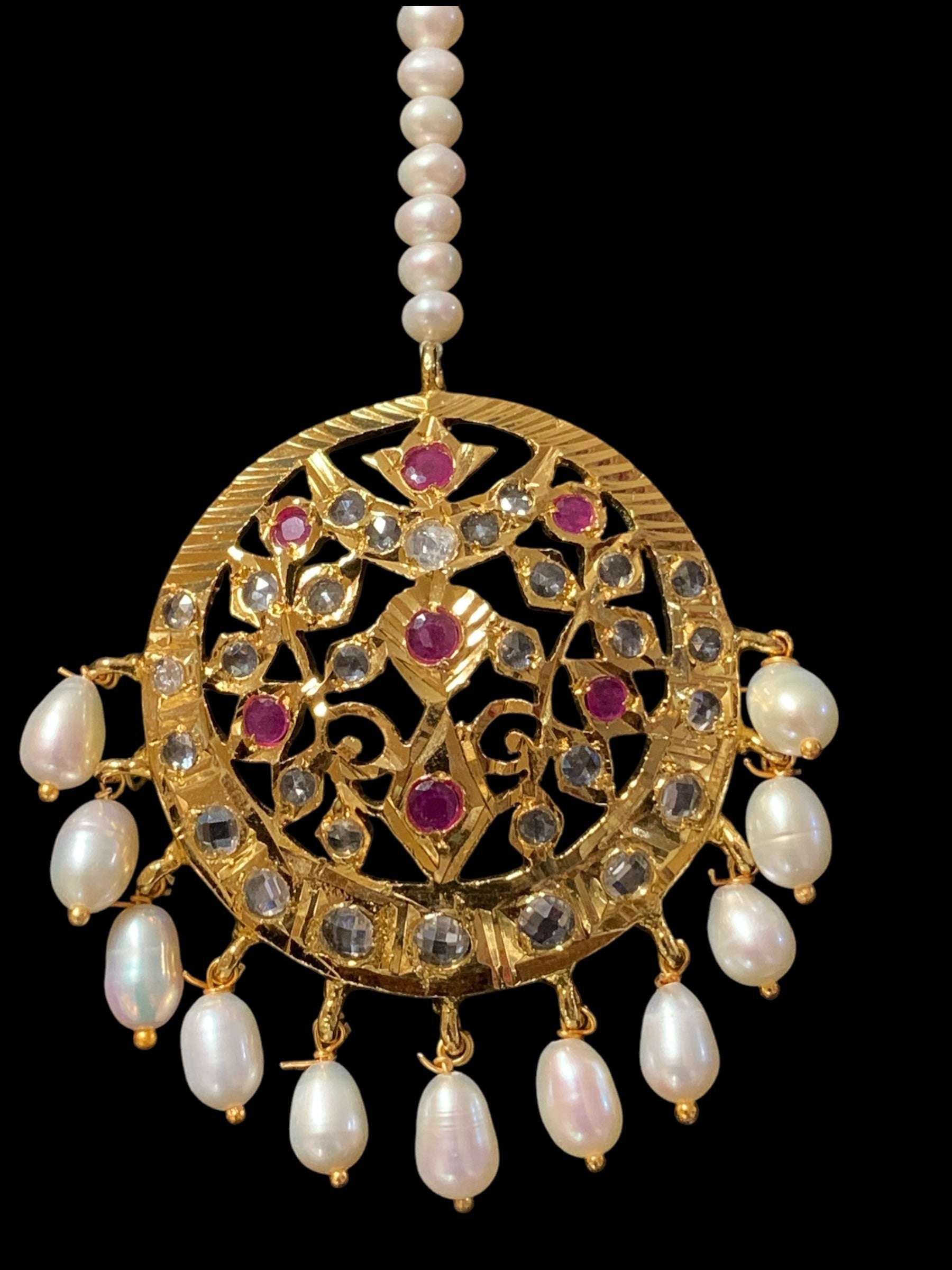 Made using high quality Cz polki with natural ruby stones , fresh water pearls