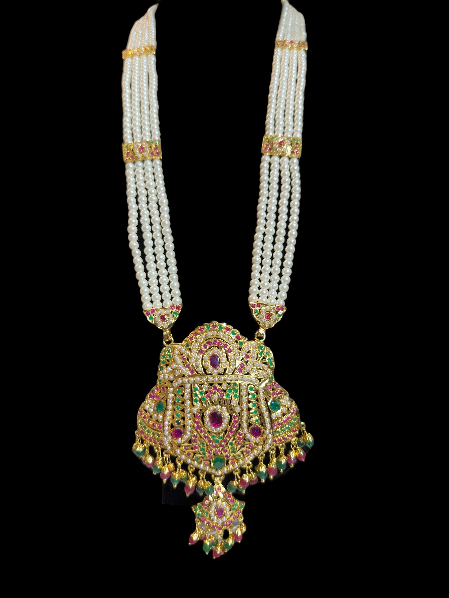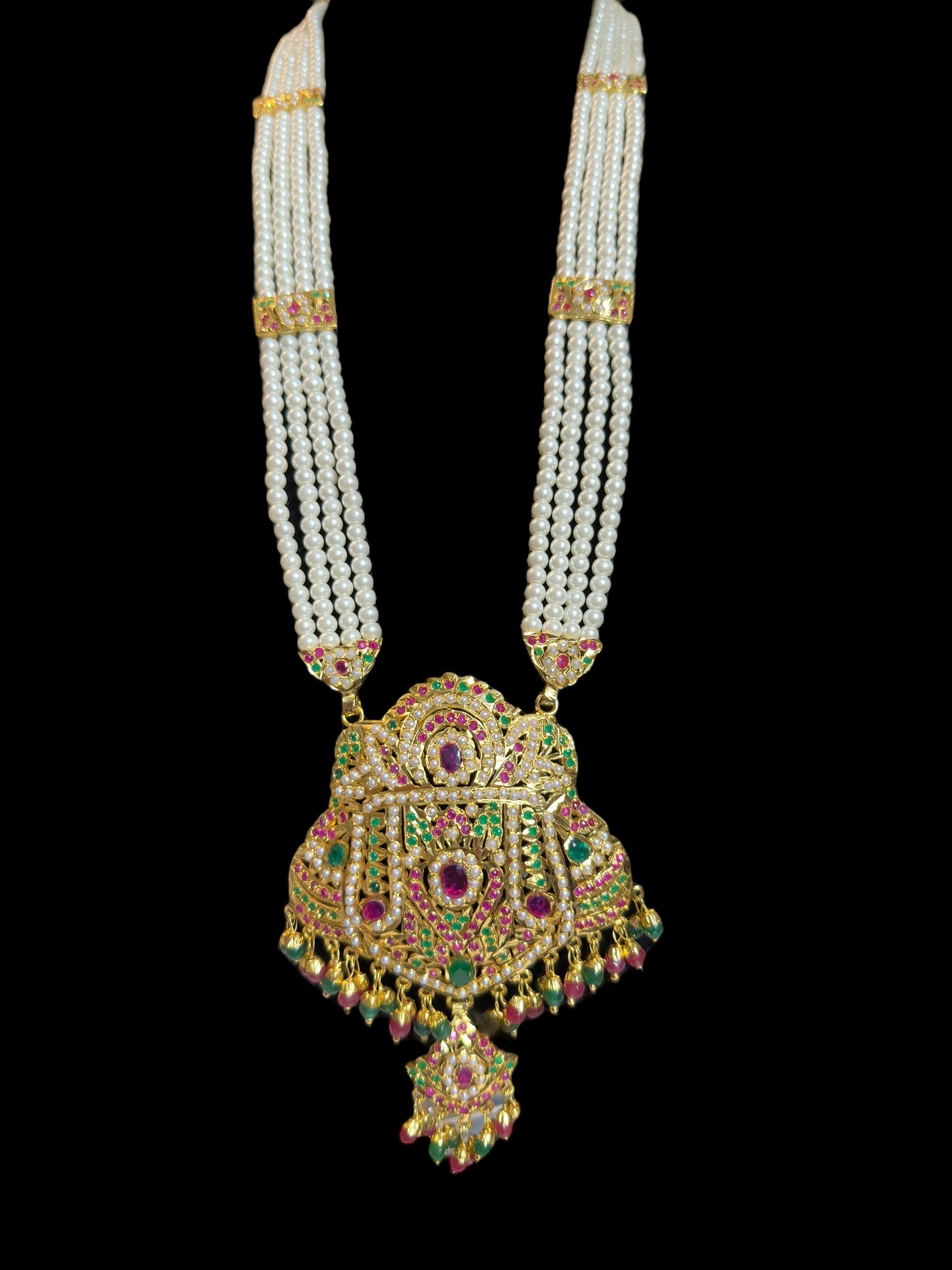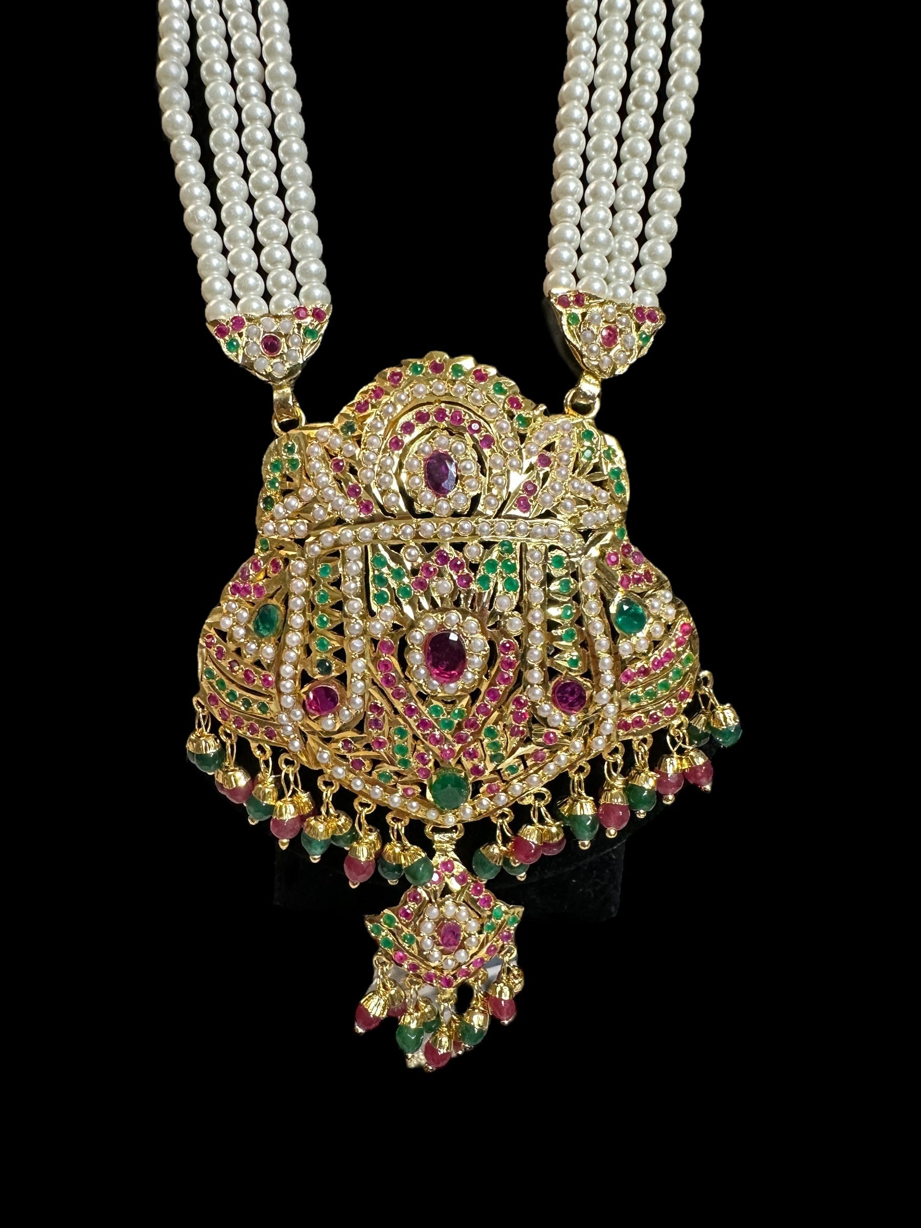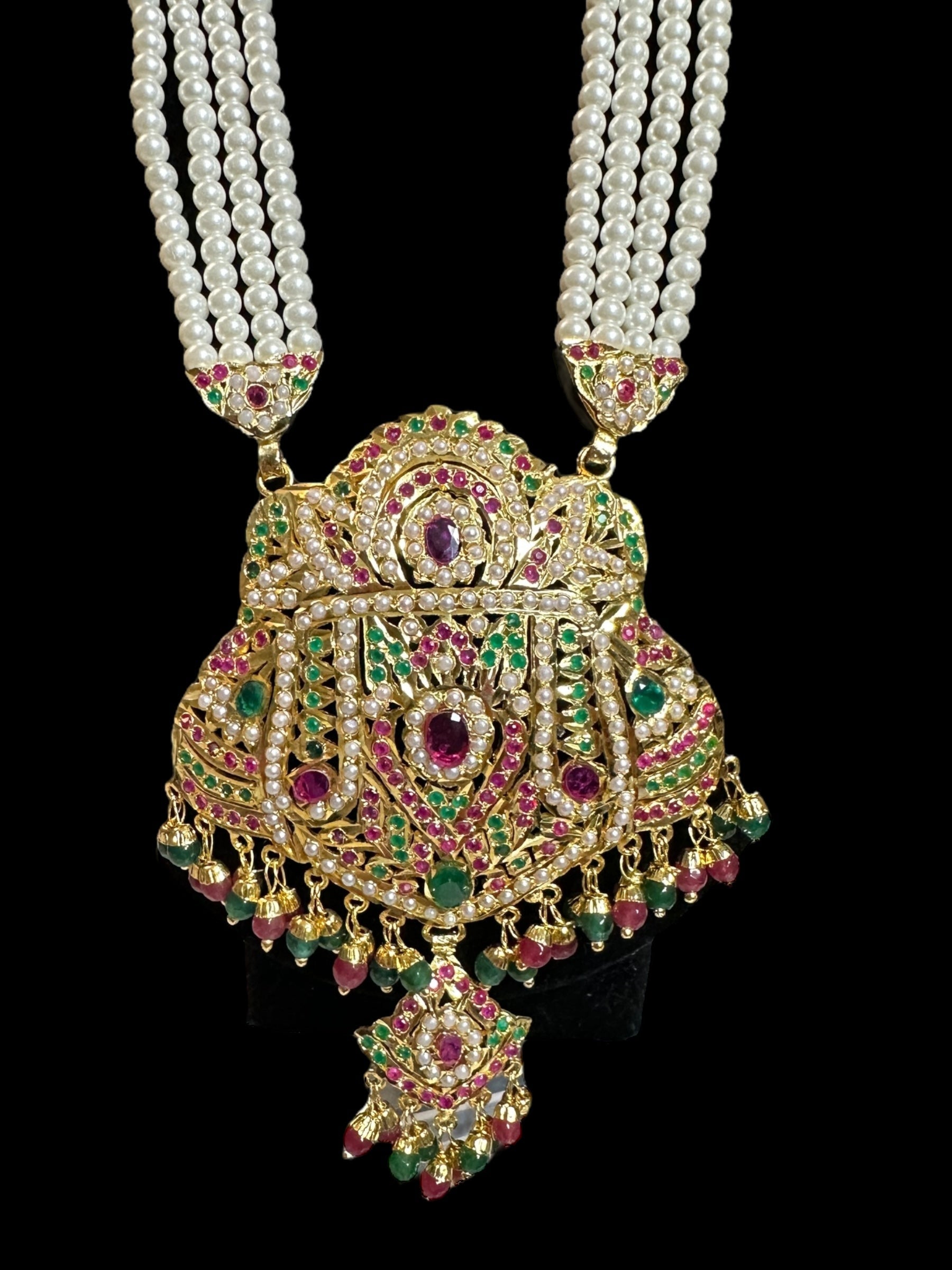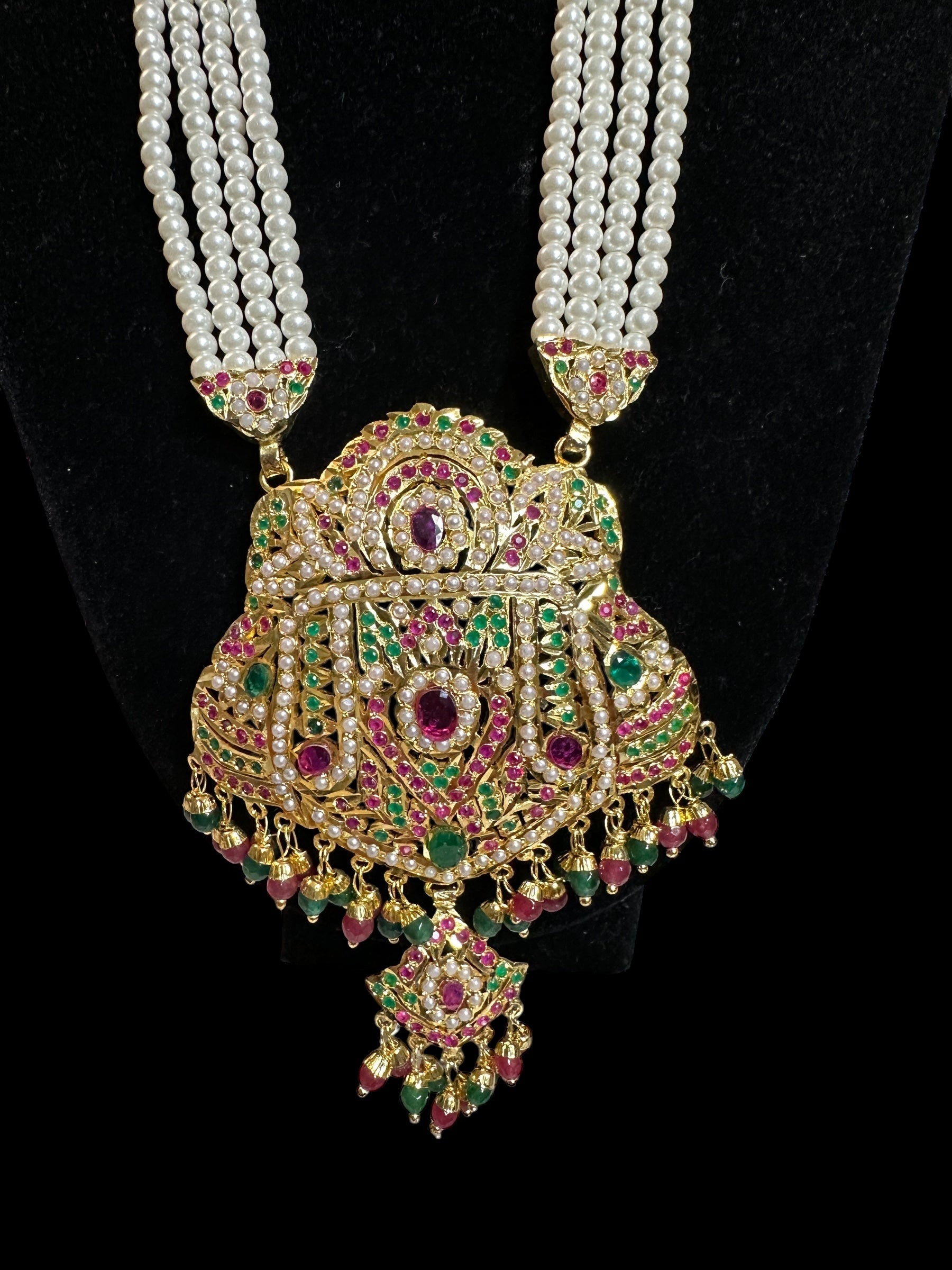 DLN92 jadau rani haar in ruby emerald with pearls ( READY TO SHIP )