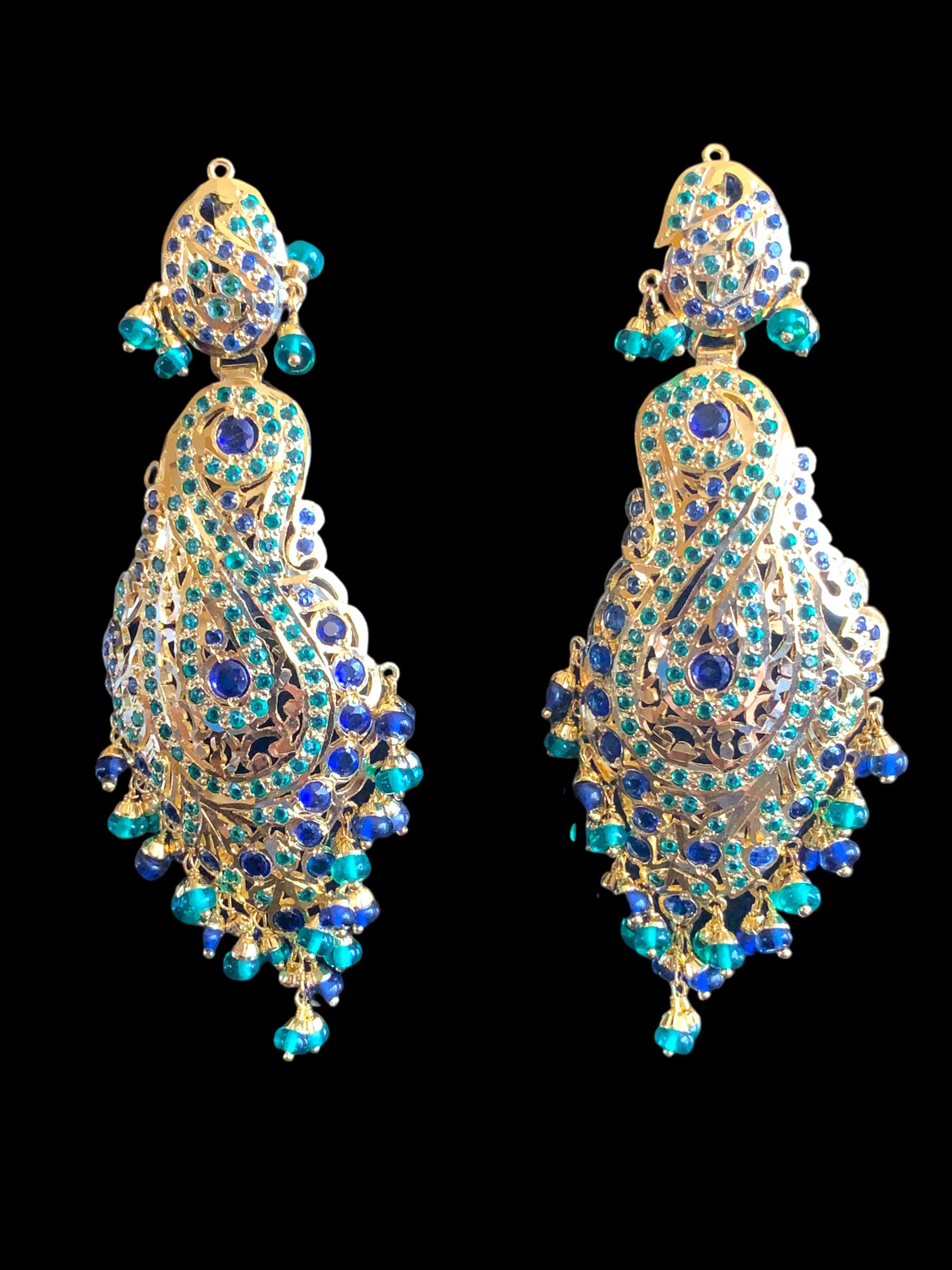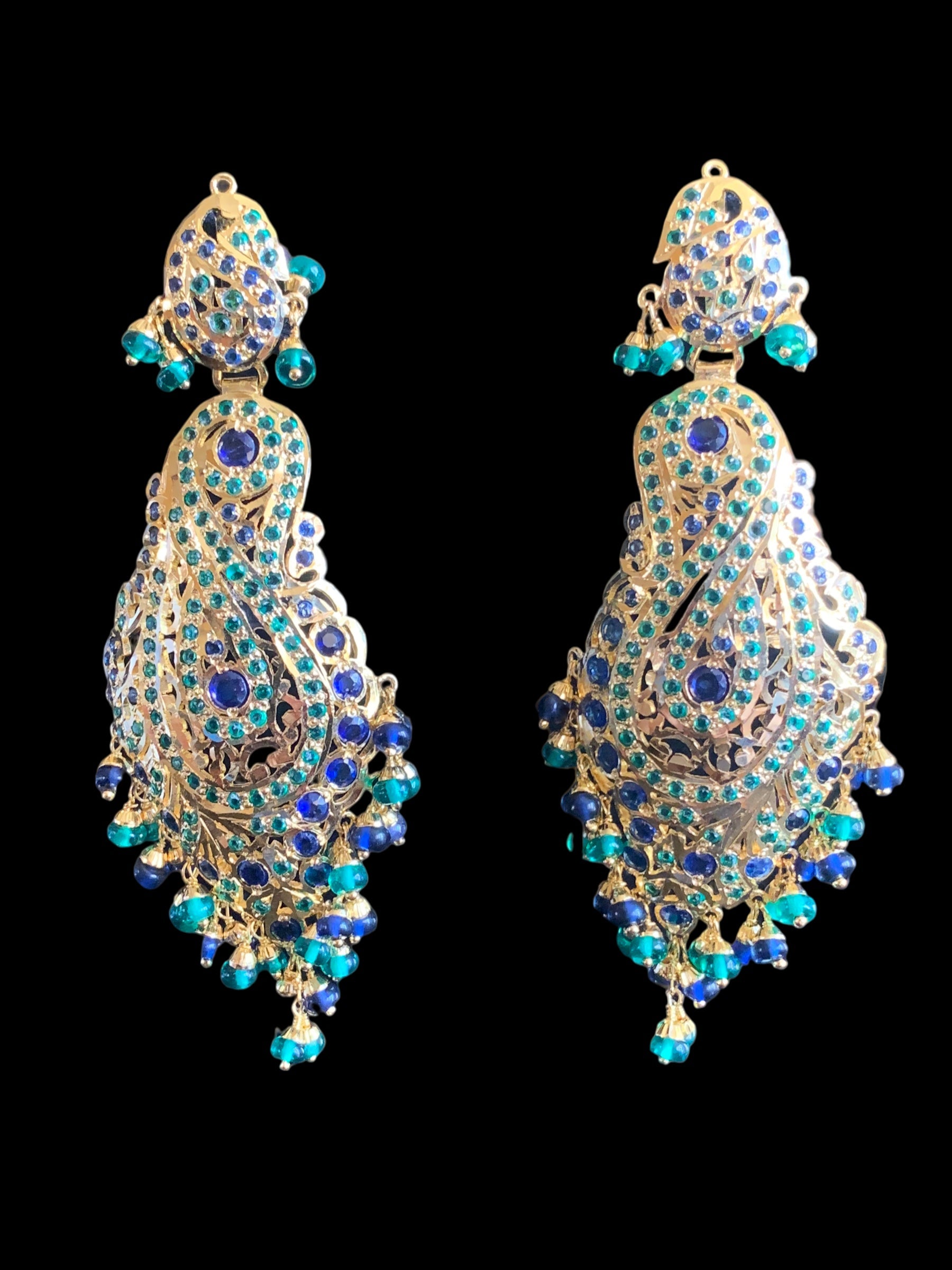 Emerald sapphire gold plated silver earrings ( READY TO SHIP)