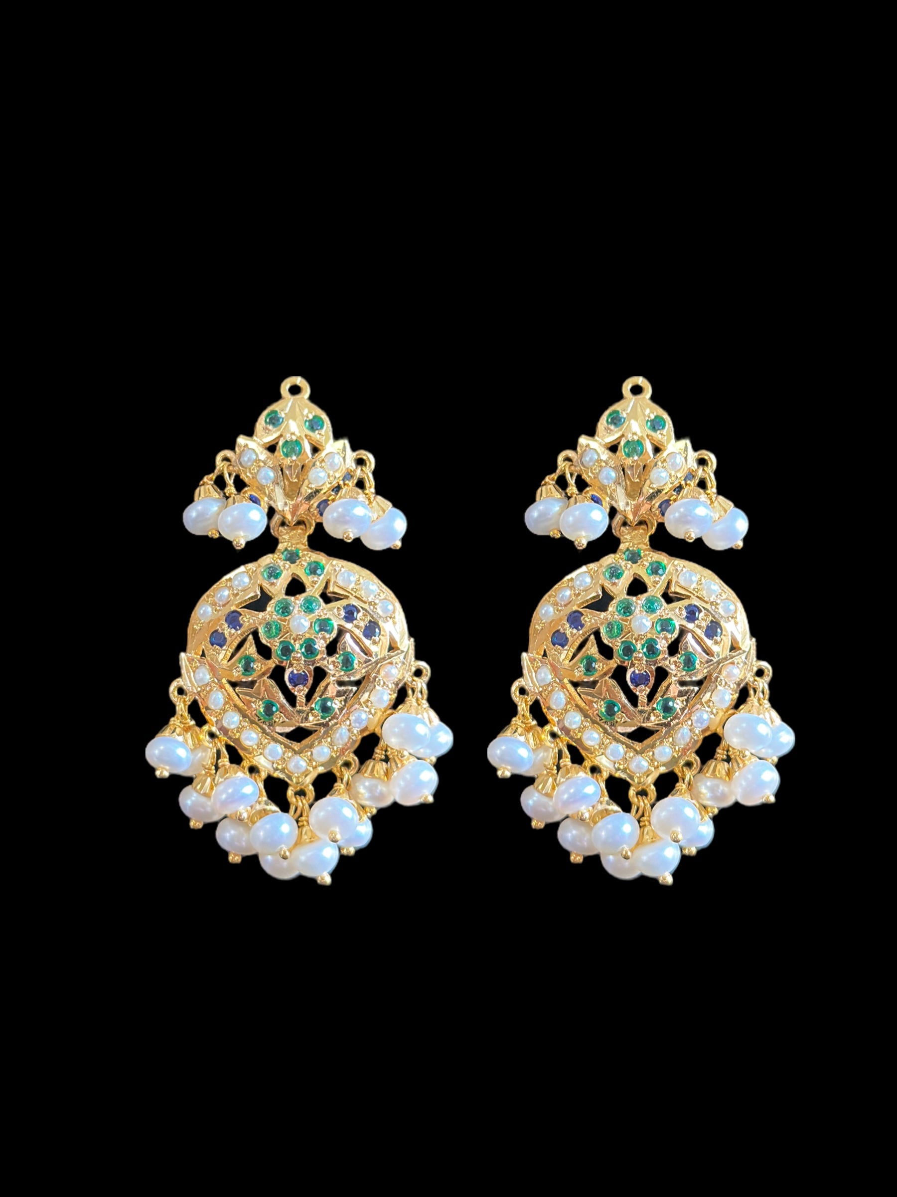 Emerald sapphire with fresh water pearl necklace with earrings in gold plated silver ( READY TO SHIP)