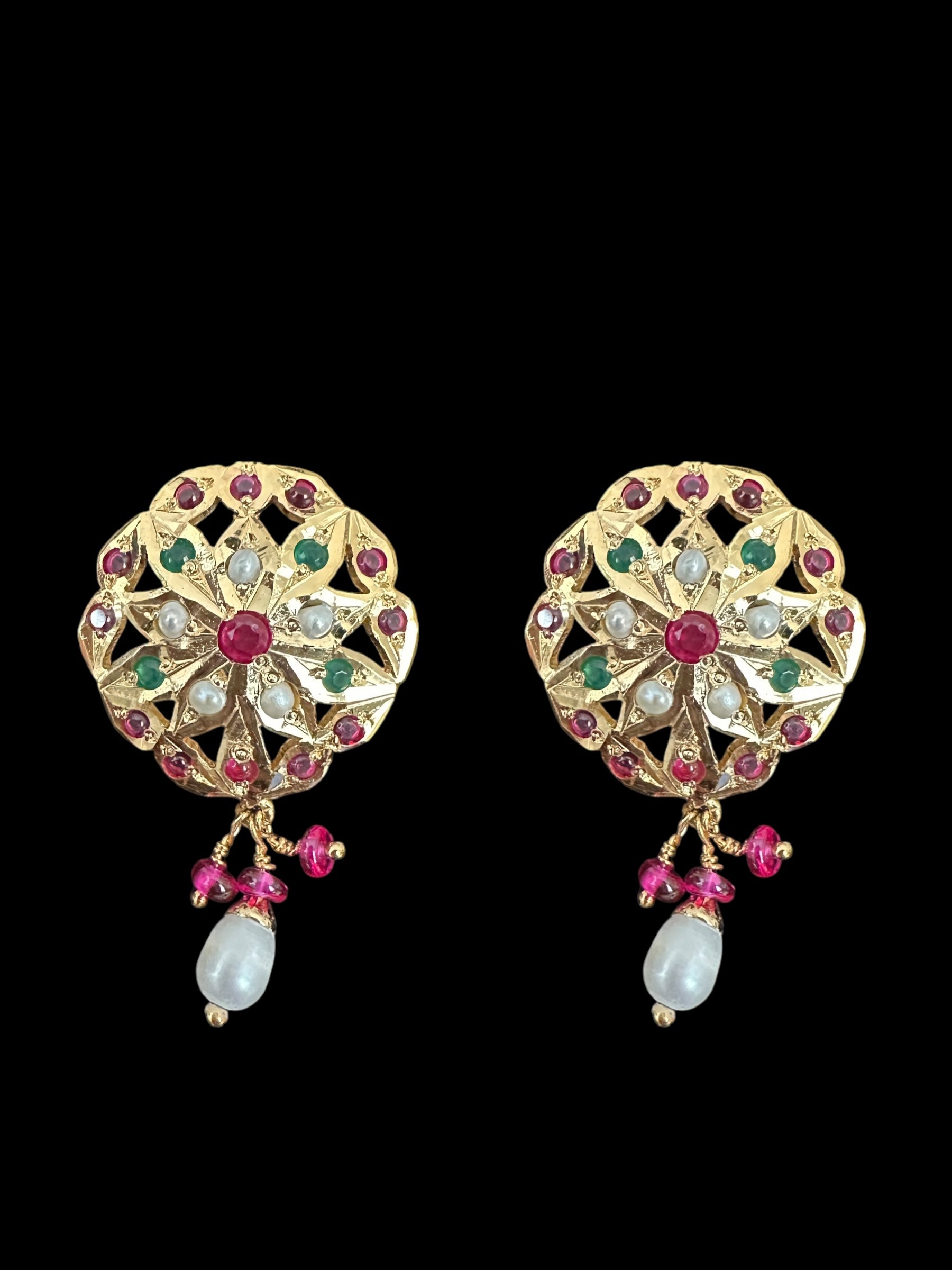 ESHAL pendant set in silver - Ruby emerald pearl ( READY TO SHIP )