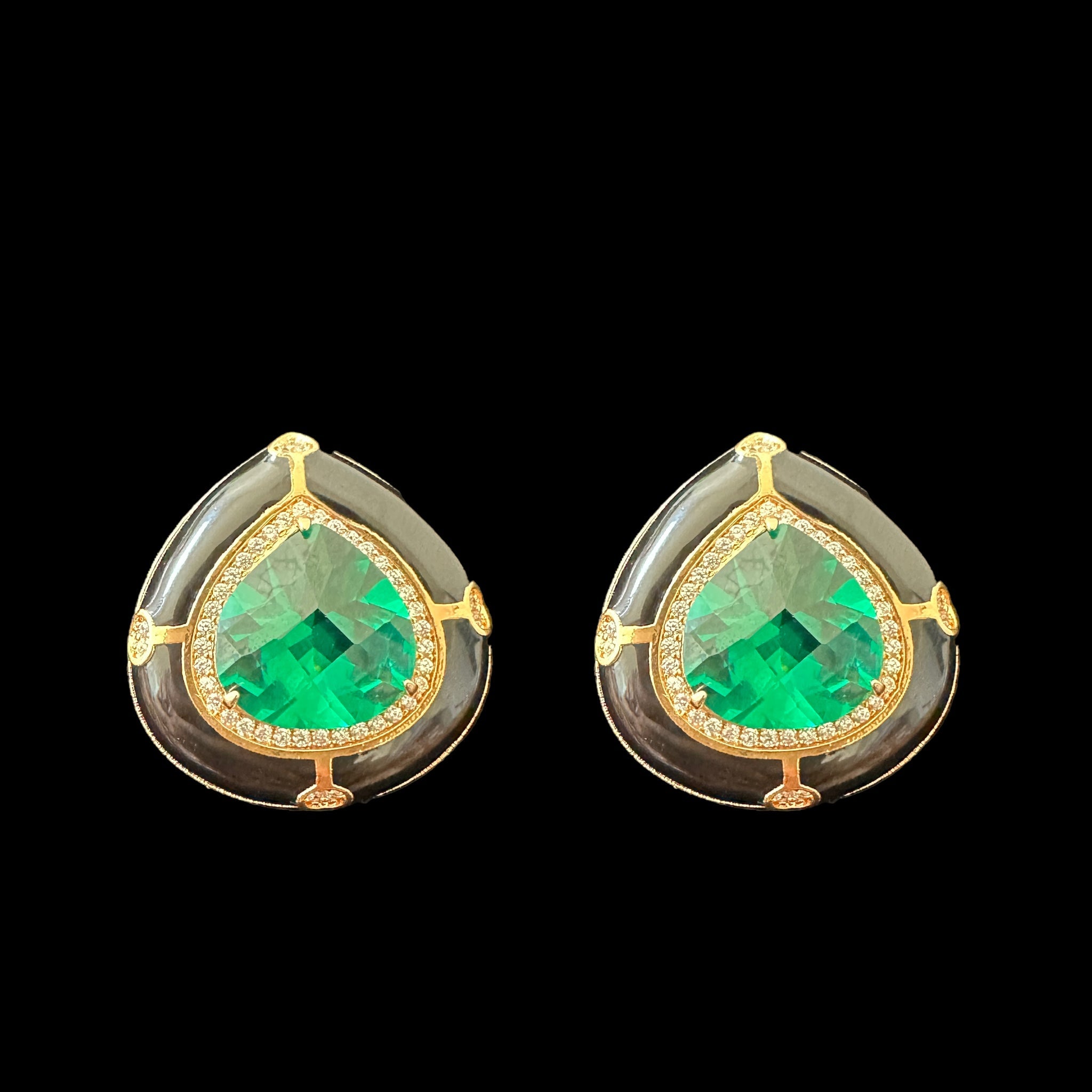 ET201 enamel tops ( READY TO SHIP ) ‐ Black with green stone ( gold plated )