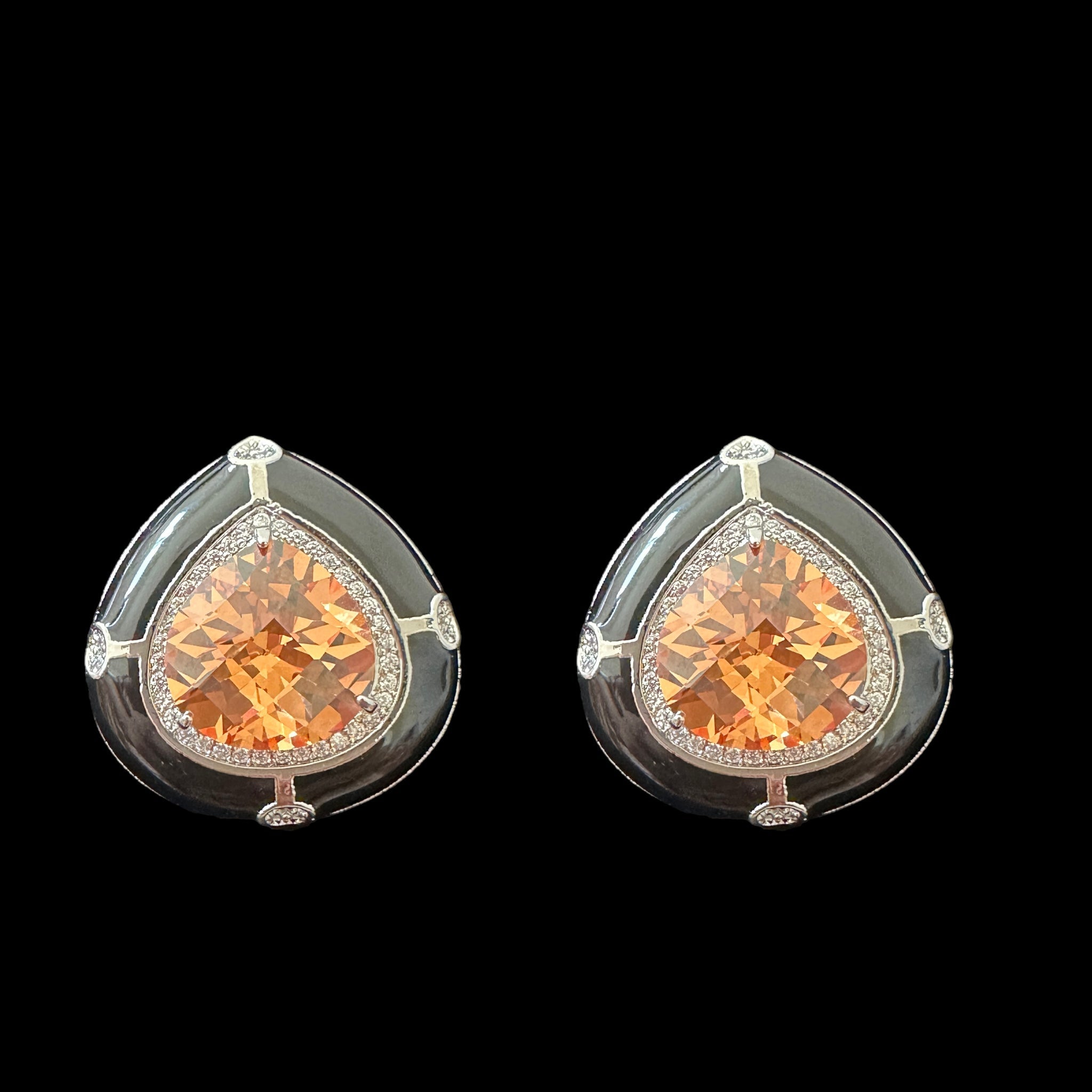 ET201 enamel tops ( READY TO SHIP ) ‐ Black with golden stone ( silver plated )