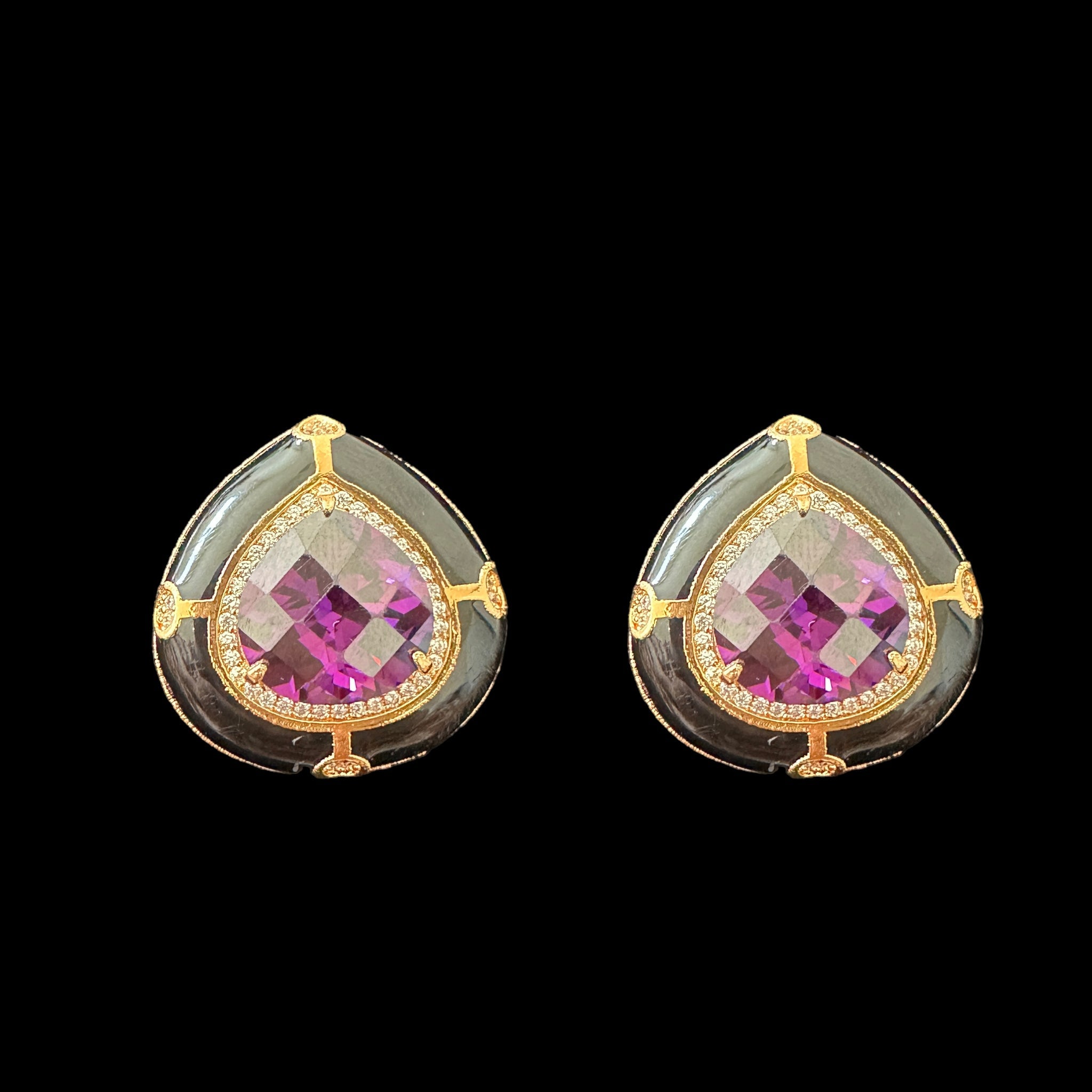 ET201 enamel tops ( READY TO SHIP ) ‐ Black with purple stone ( gold plated )