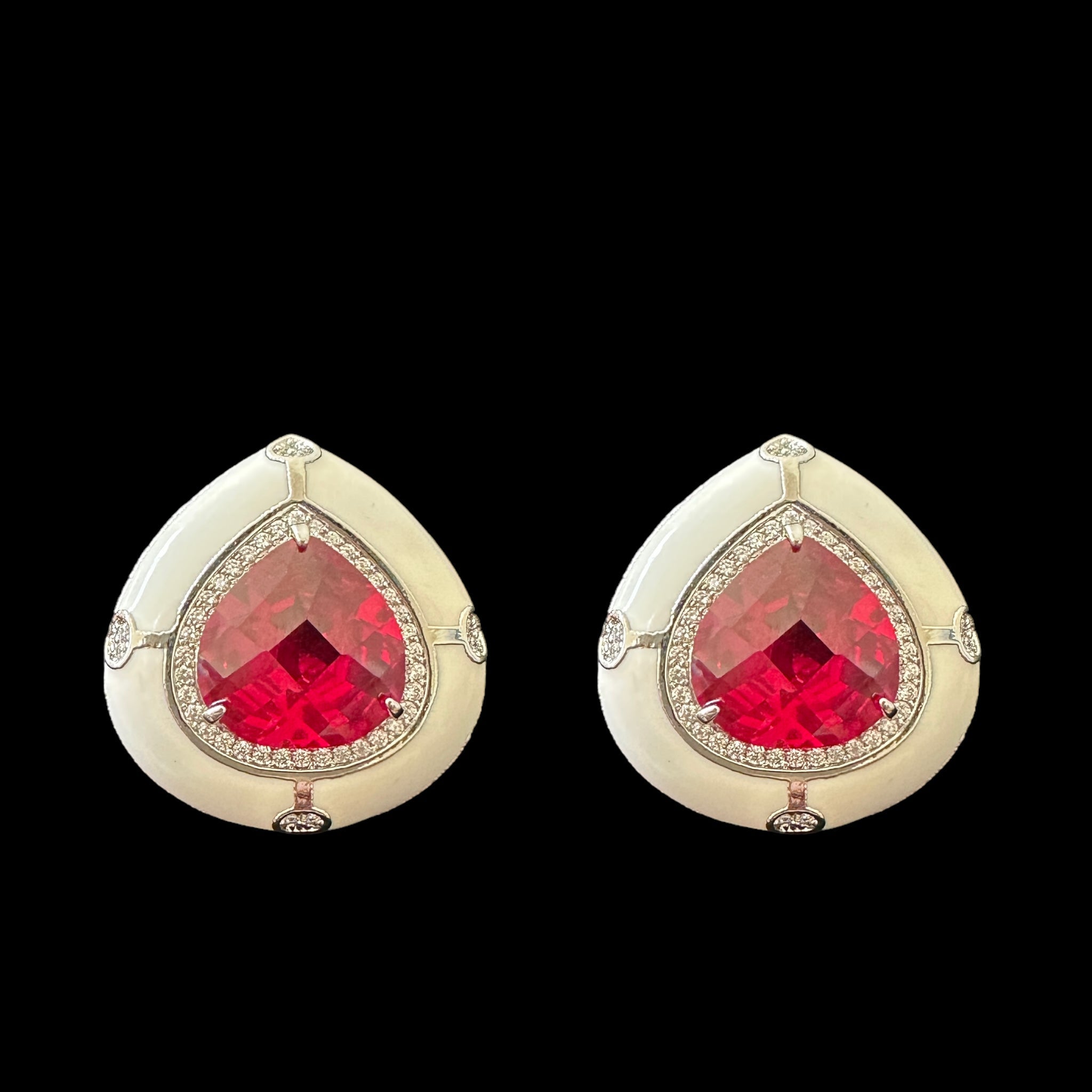 ET201 enamel tops ( READY TO SHIP ) ‐ White with red stone ( silver plated )