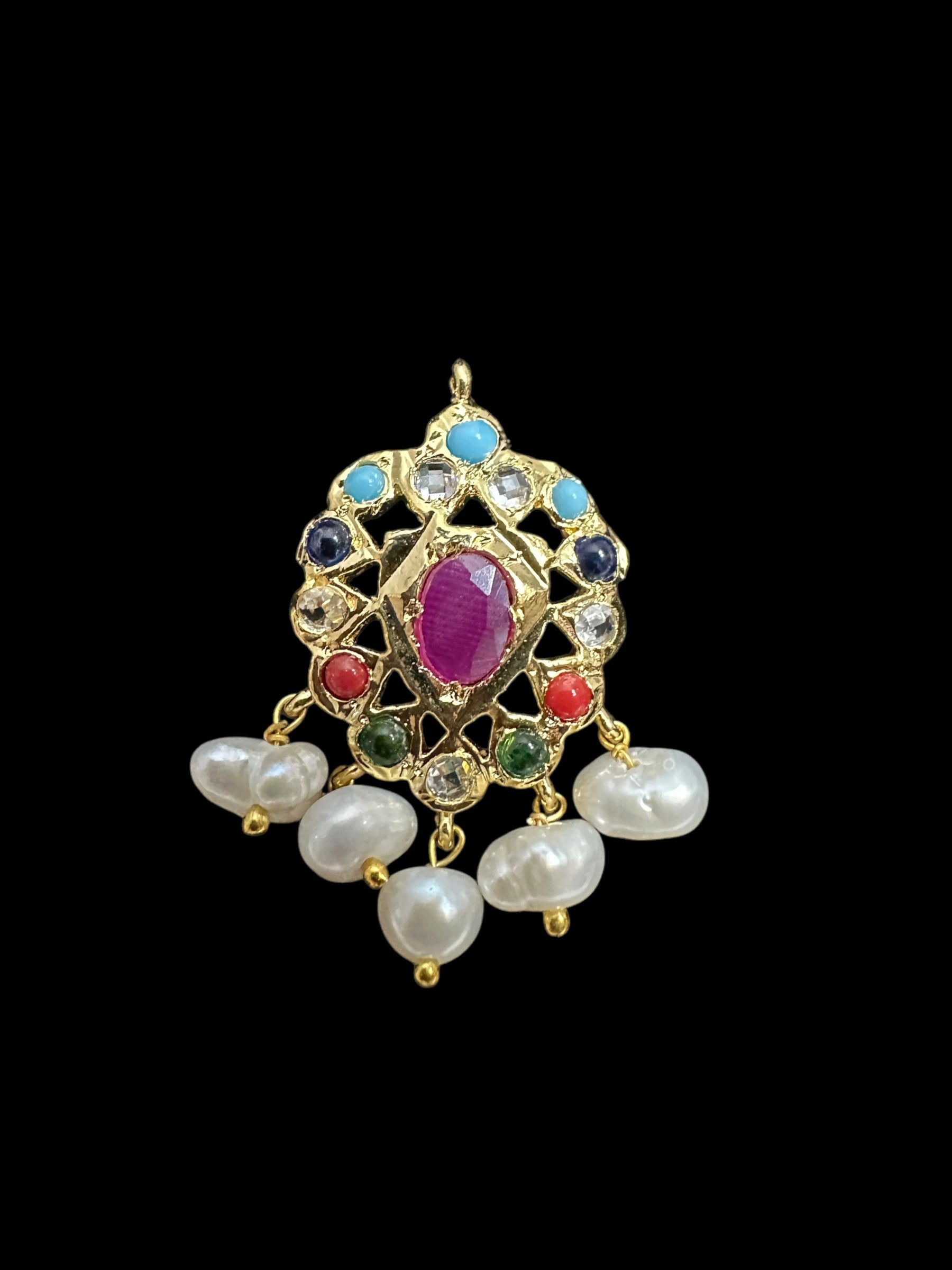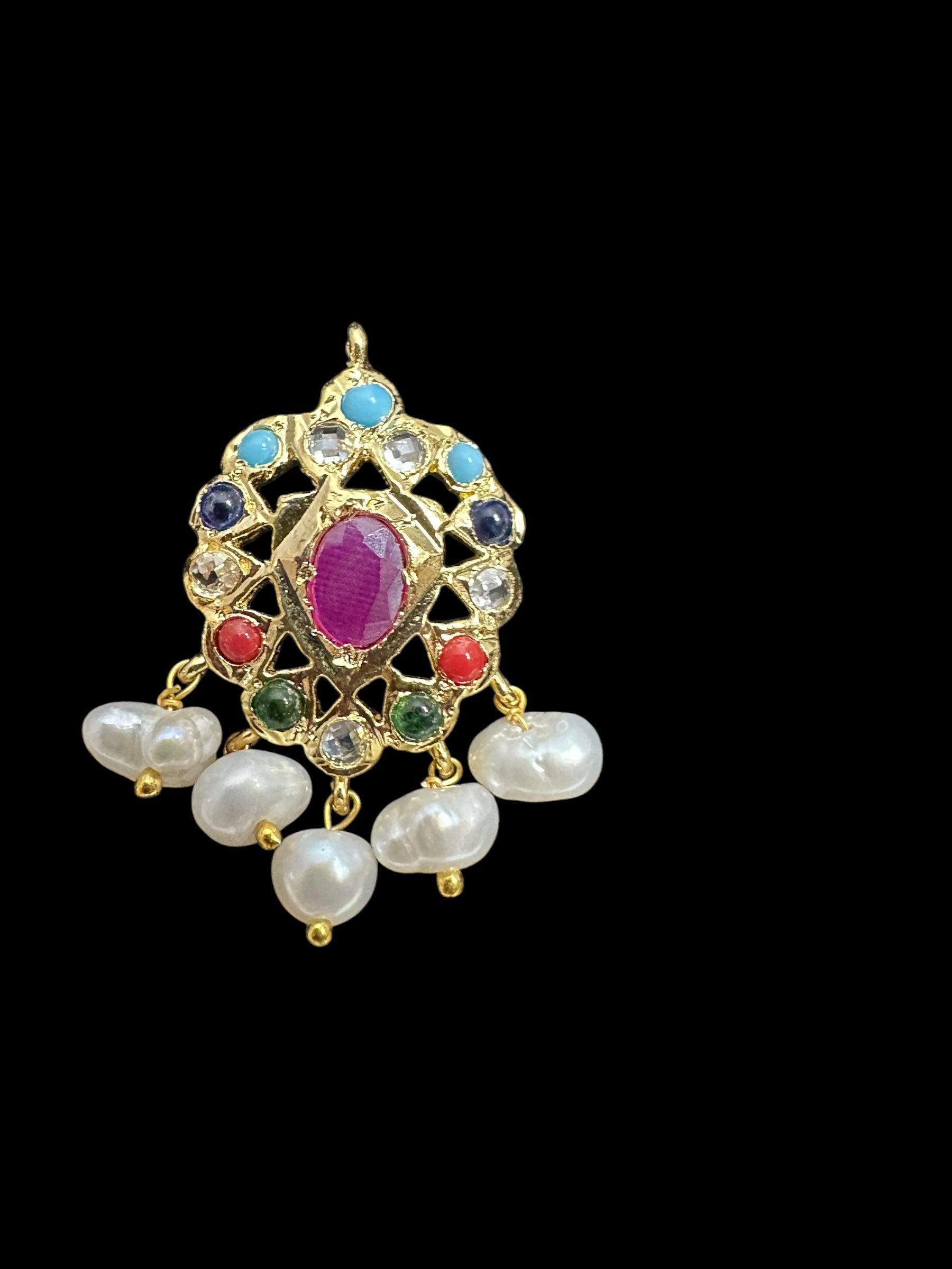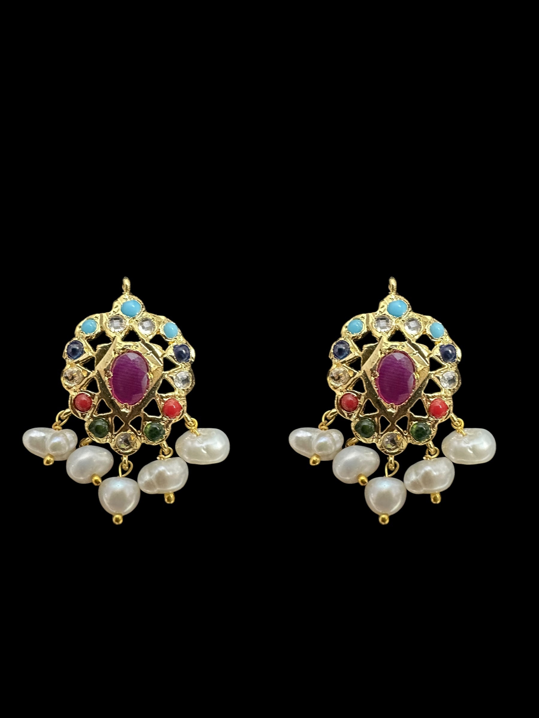 ET536 Faryal fresh water Pearl earrings - Navratan ( READY TO SHIP )