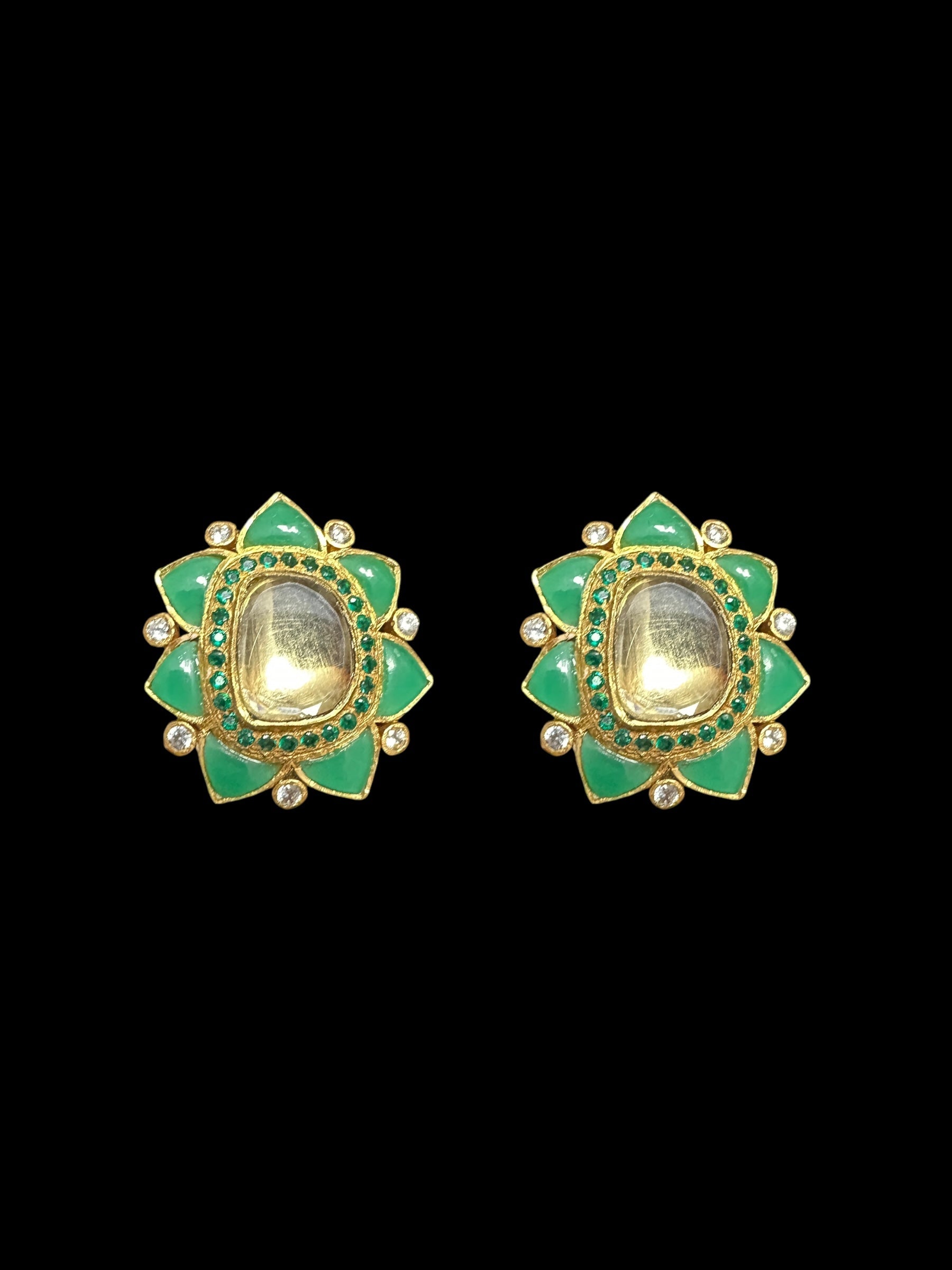 ET565 Rati earrings , gold plated studs ( READY TO SHIP ) ‐ Green