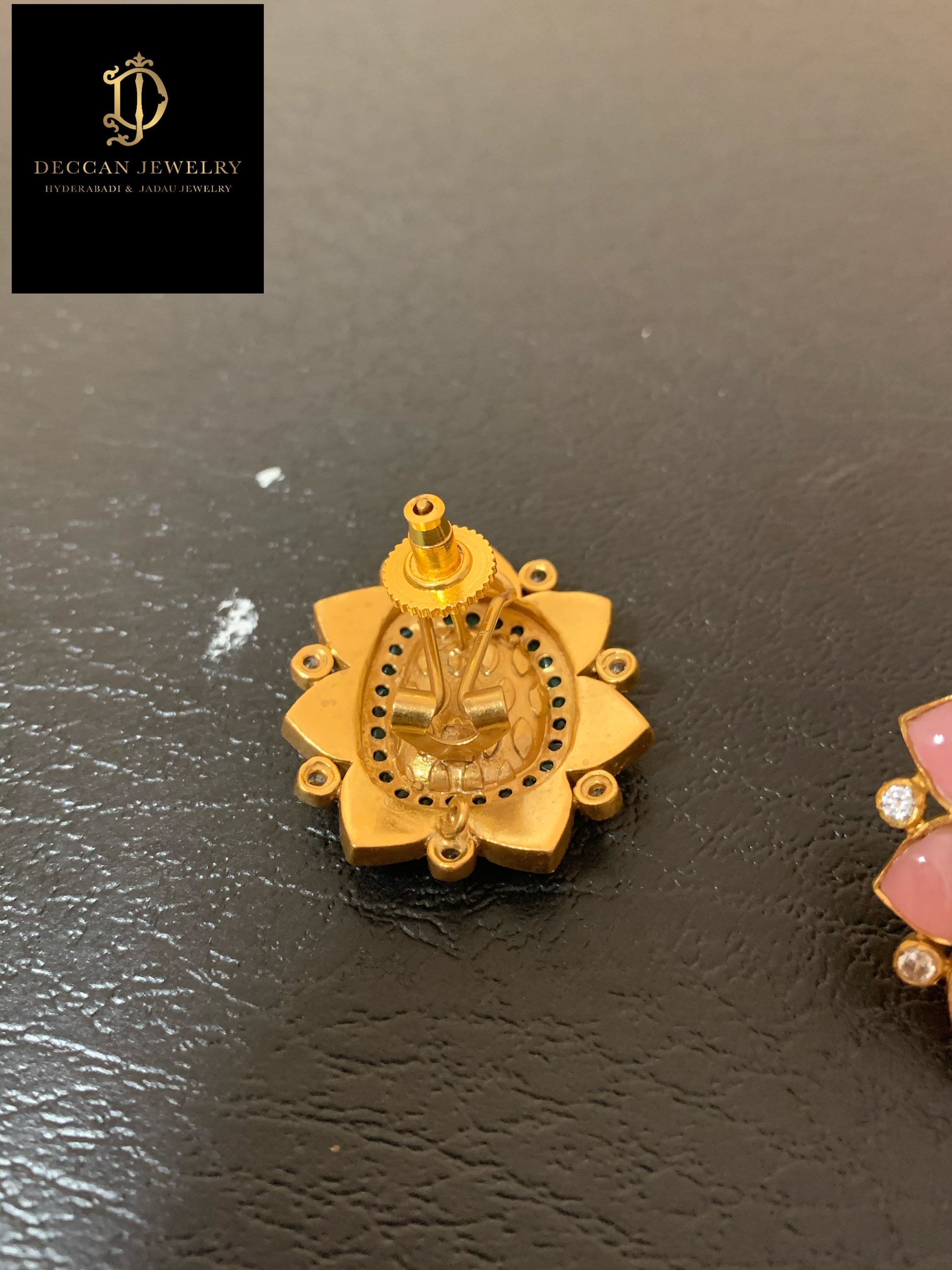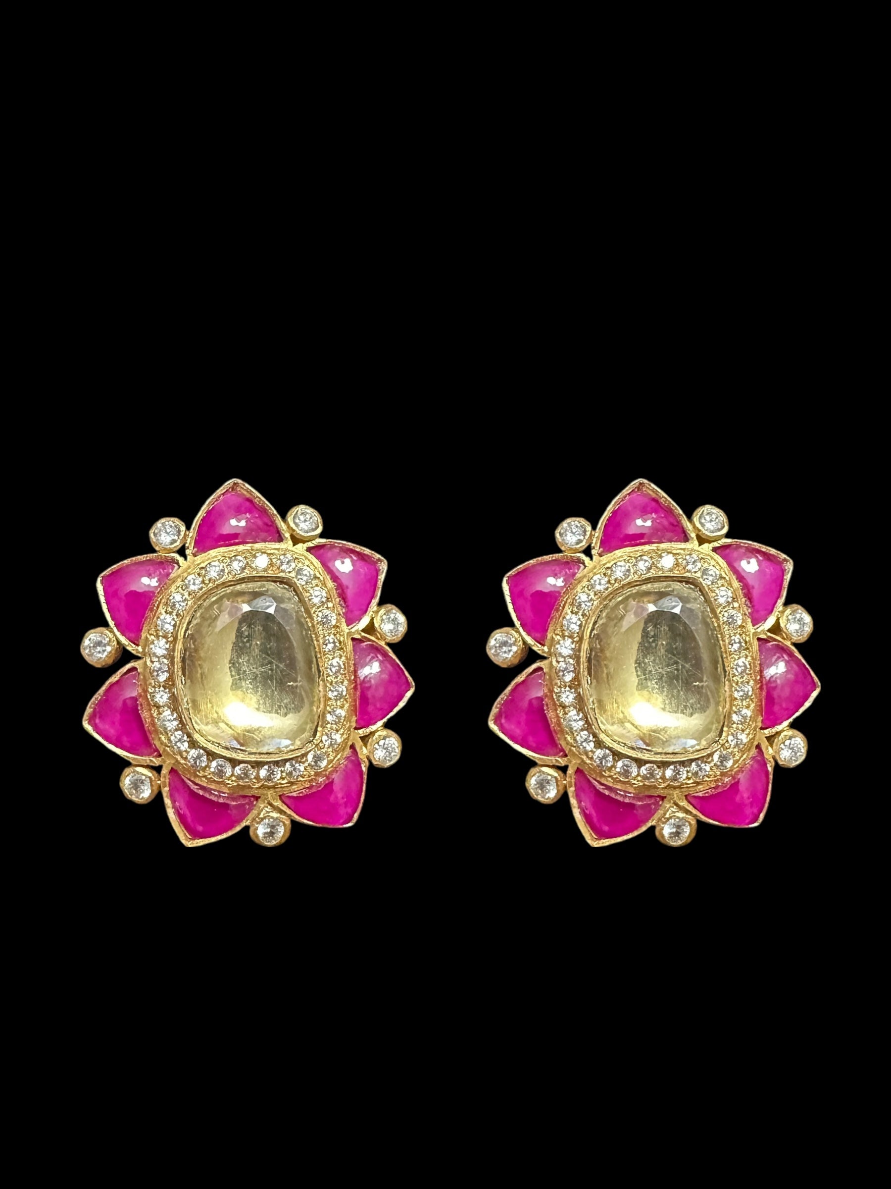 ET565 Rati earrings , gold plated studs ( READY TO SHIP ) ‐ Pink