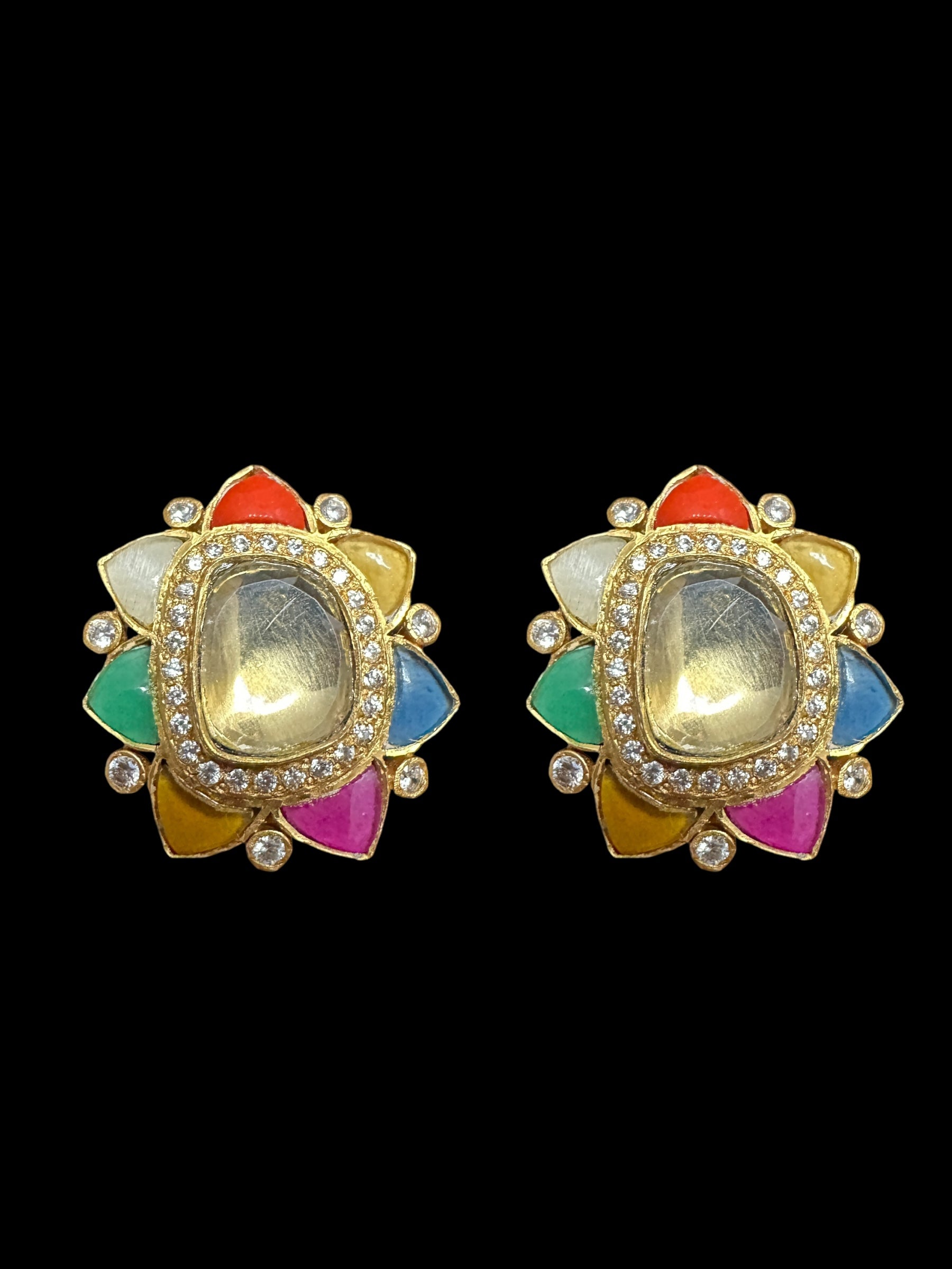 ET565 Rati earrings , gold plated studs ( READY TO SHIP ) ‐ Navratan