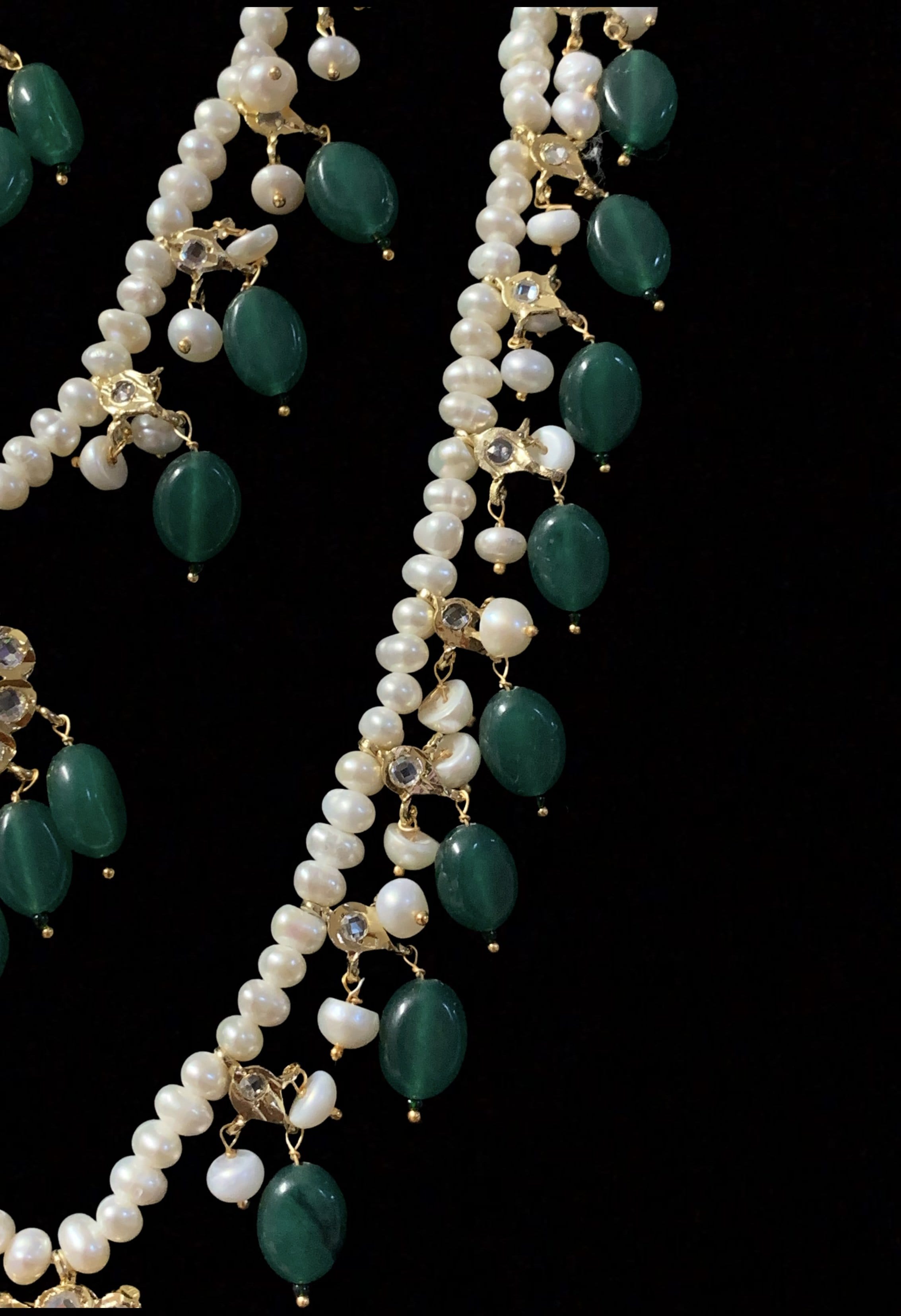 made using fresh water pearls with cz stones and semi precious quartz beads